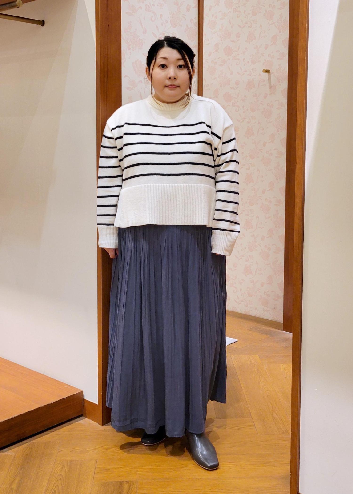 ROPÉ PICNIC着丈が選べるエアリープリーツスカートネイビー / 38T¥3,842レビューウエストがゴム仕様になってるので締め付け感がなく着れます。低身長でも38Tサイズでも足首あたりの丈感なので引きずることはありません。裏地も付いてるので安心して着用できますよ。