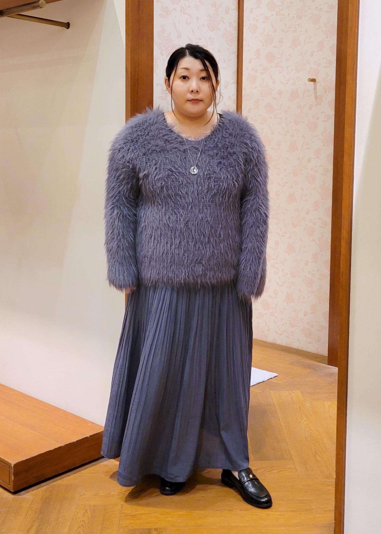 ROPÉ PICNIC着丈が選べるエアリープリーツスカートネイビー / 38T¥3,842レビューウエストがゴム仕様になってるので締め付け感がなく着れます。低身長でも38Tサイズでも足首あたりの丈感なので引きずることはありません。裏地も付いてるので安心して着用できますよ。