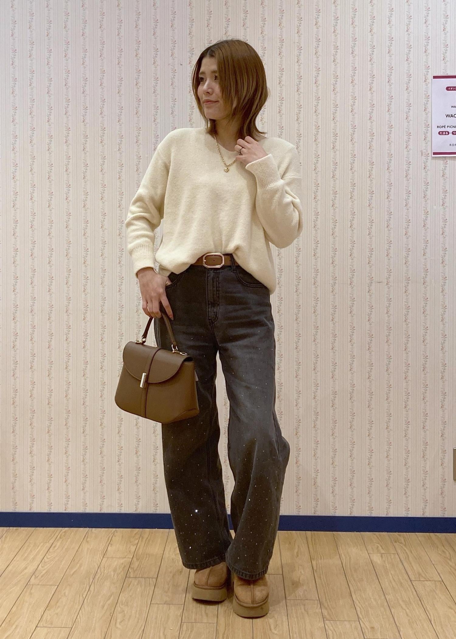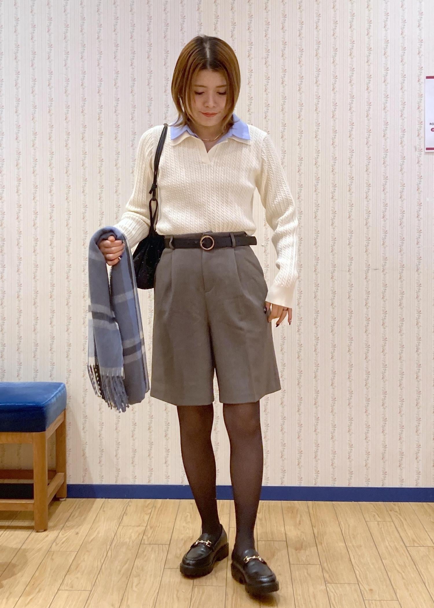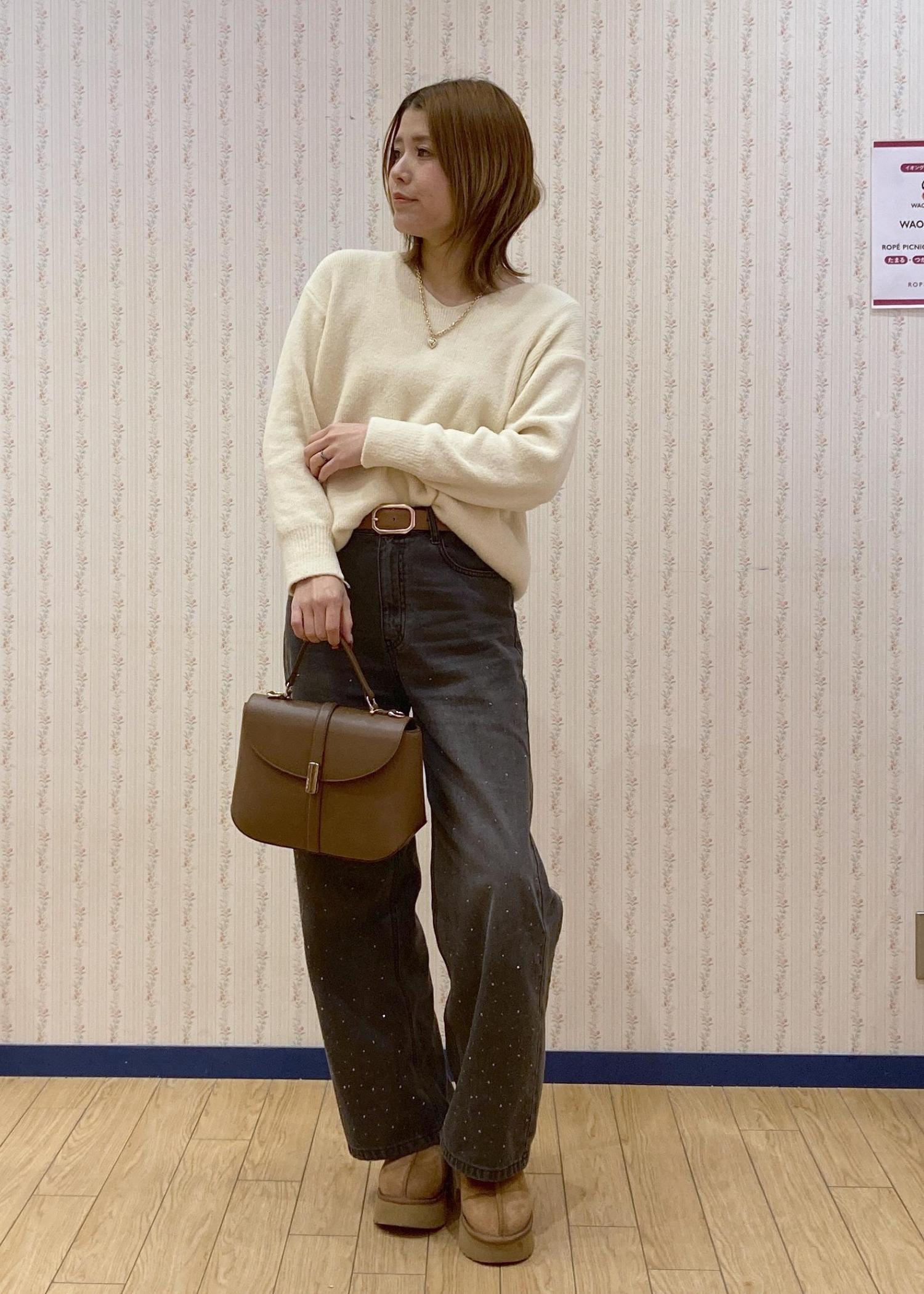 小物はブラウン系でまとめて抜け感をプラスしてます。