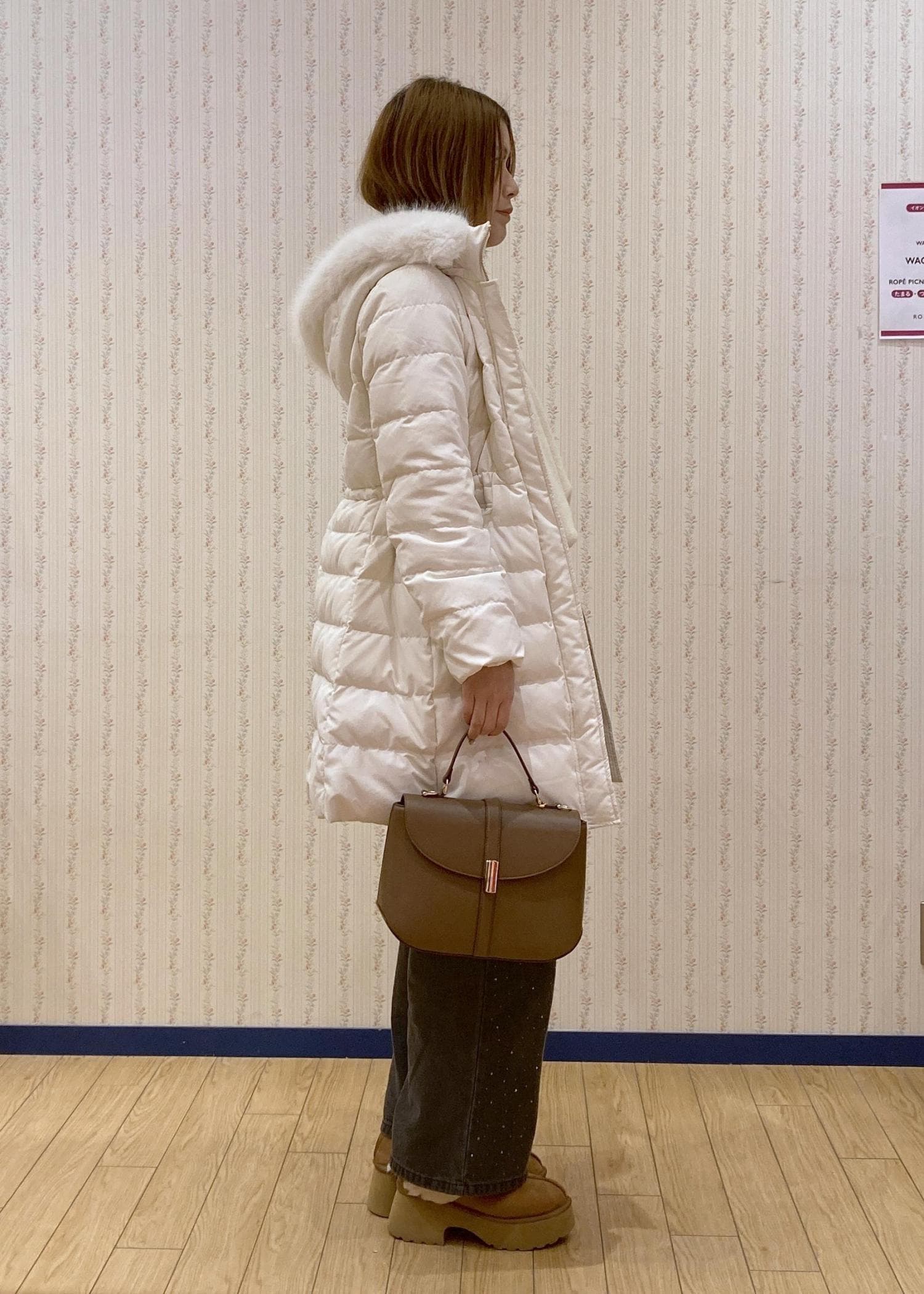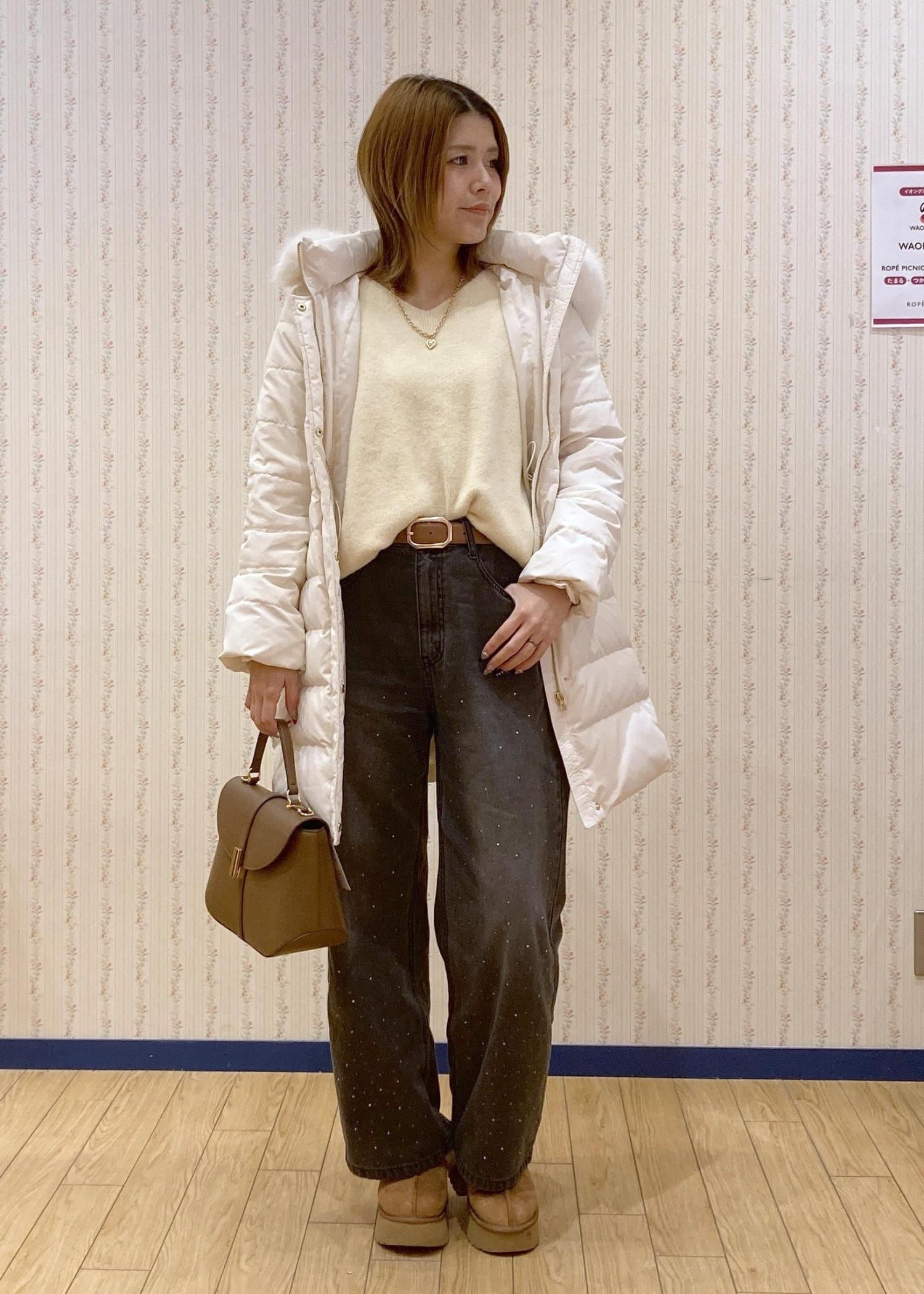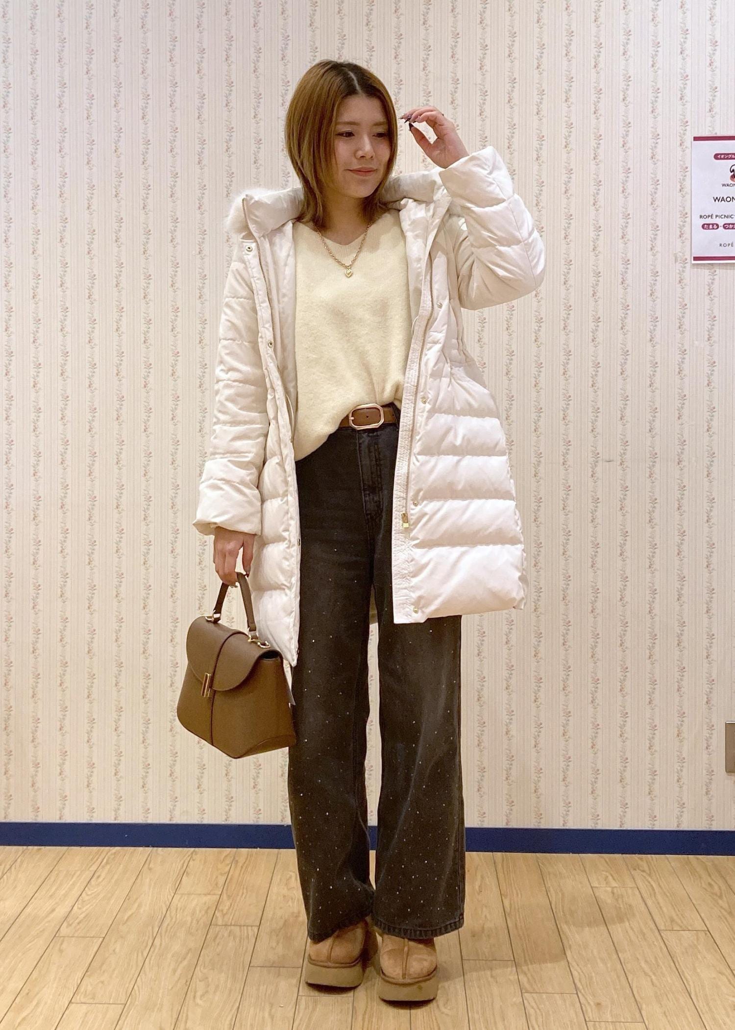 ROPÉ PICNIC【GREEN DOWN/グリーンダウン】ファー付きダウンロングコート/一部WEB限定カラーオフホワイト / M¥15,840レビュー軽くて暖かいロングダウンコートです。