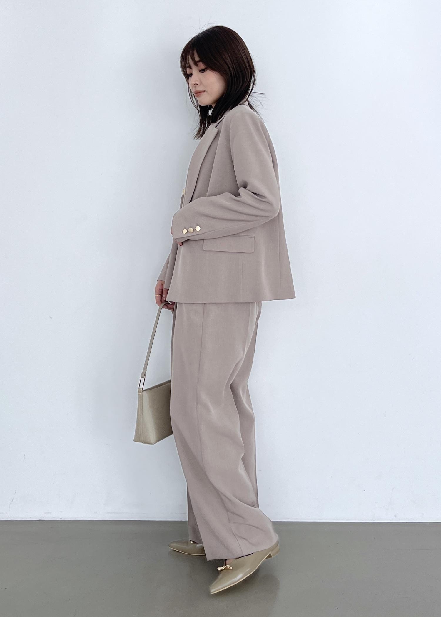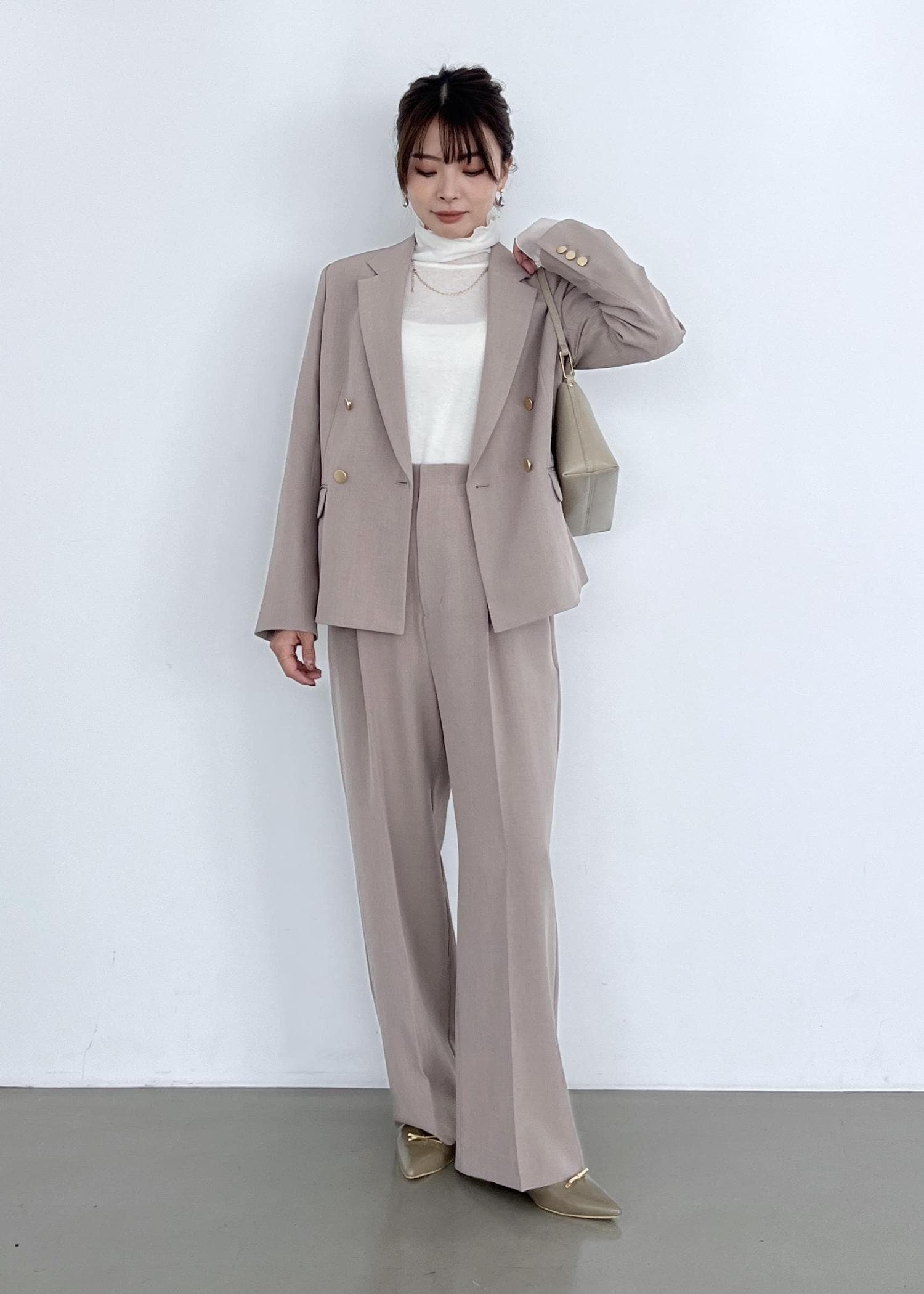 ベージュセットアップできれいめコーデ