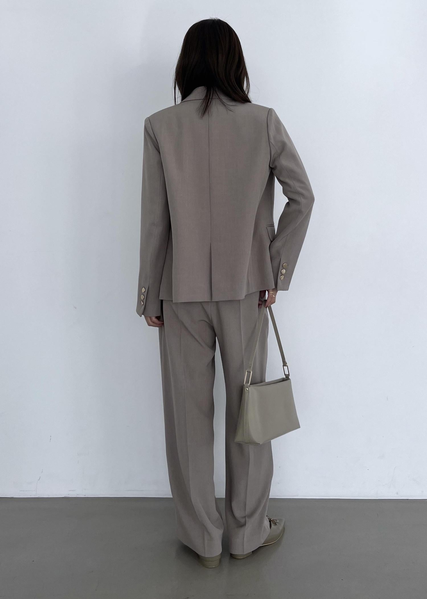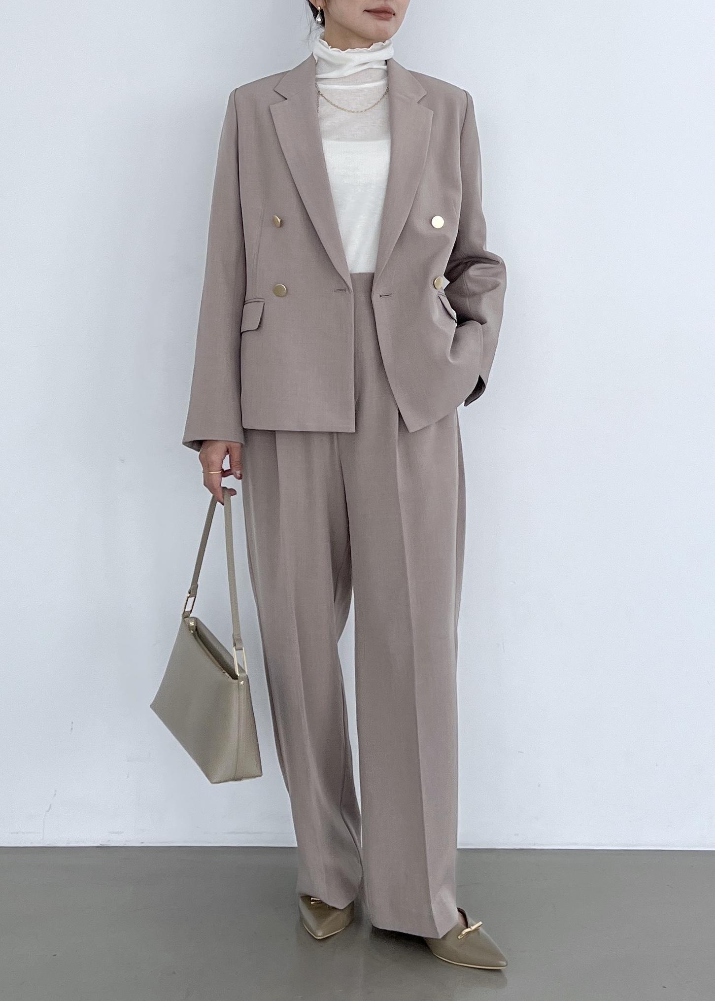 トレンド感のあるダブルジャケットとワイドパンツのセットアップは、お仕事からセレモニーにも合わせて着やすいアイテム。