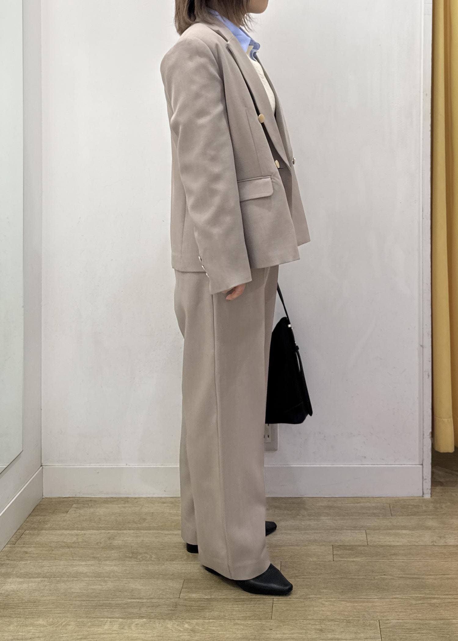 サラッとした素材感ですが脚やヒップラインを気にせずに穿ける程よいゆとりのあるシルエットです。