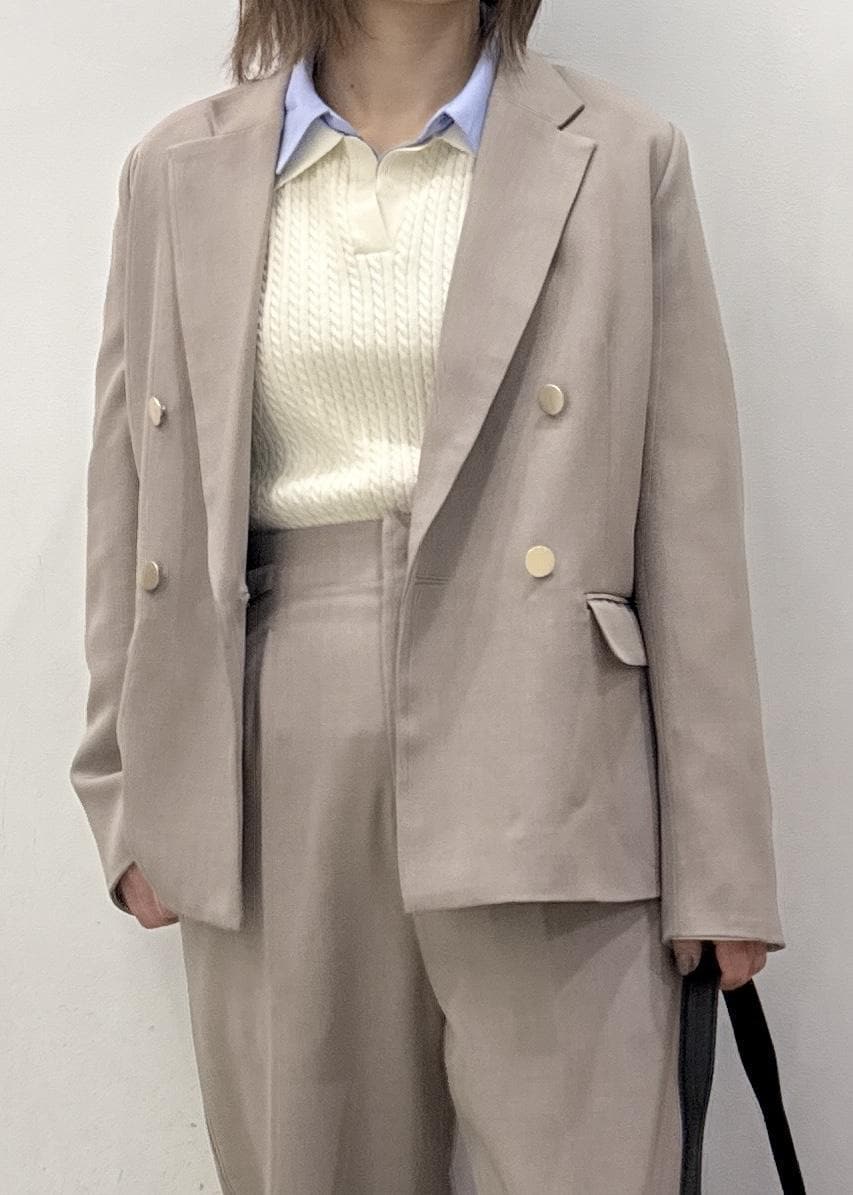 ヒップにかかるぐらいの着丈でスカート、パンツどちらにも合わせやすい長さです。