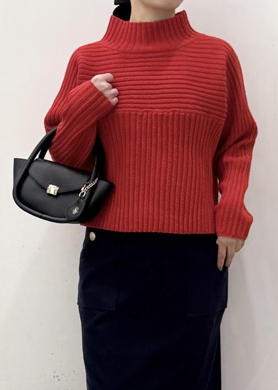 ROPÉ PICNICもちもちリブ切り替えニットプルオーバー/イージーケア・リンクコーデレッド / M¥2,699レビューもちっと柔らかい素材感で着心地◎