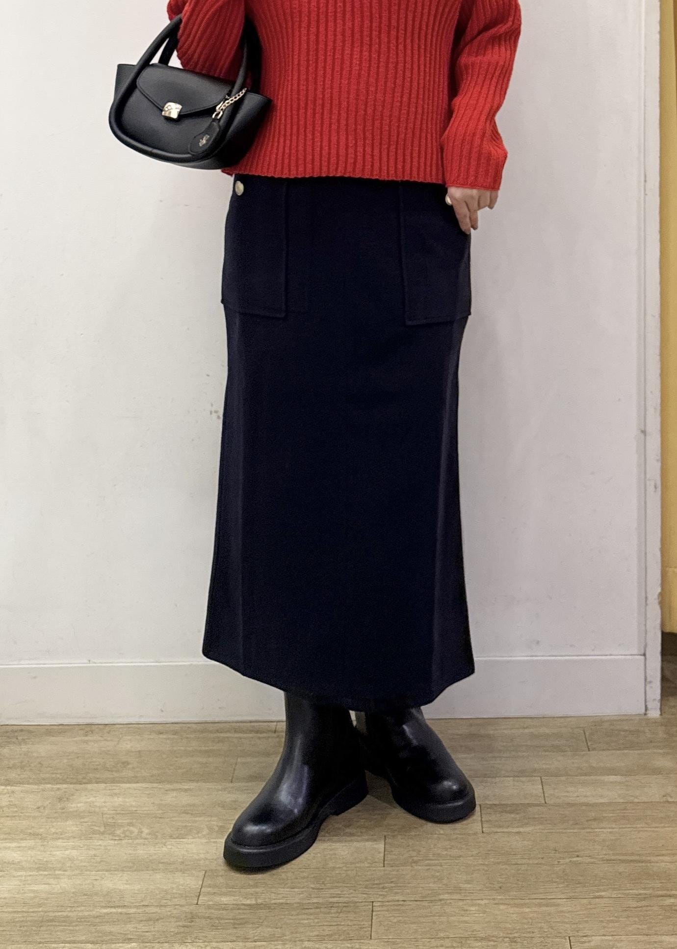足首が見えるぐらいの着丈で、ショートブーツやパンプスどちらにも合わせやすい長さです。 -