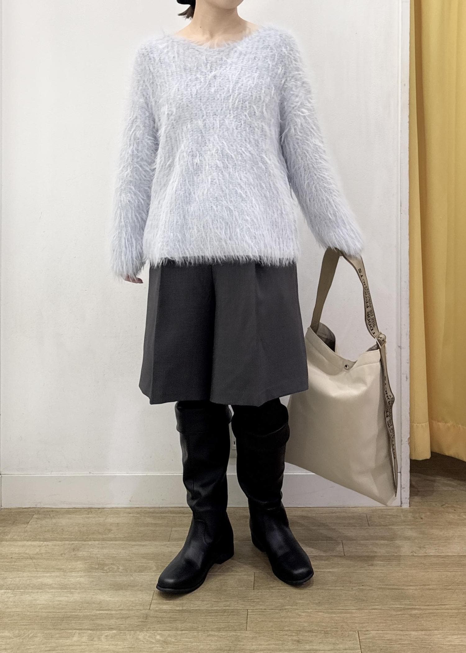毛足長めのシャギーニットで、肌触りが柔らかく着心地◎ -