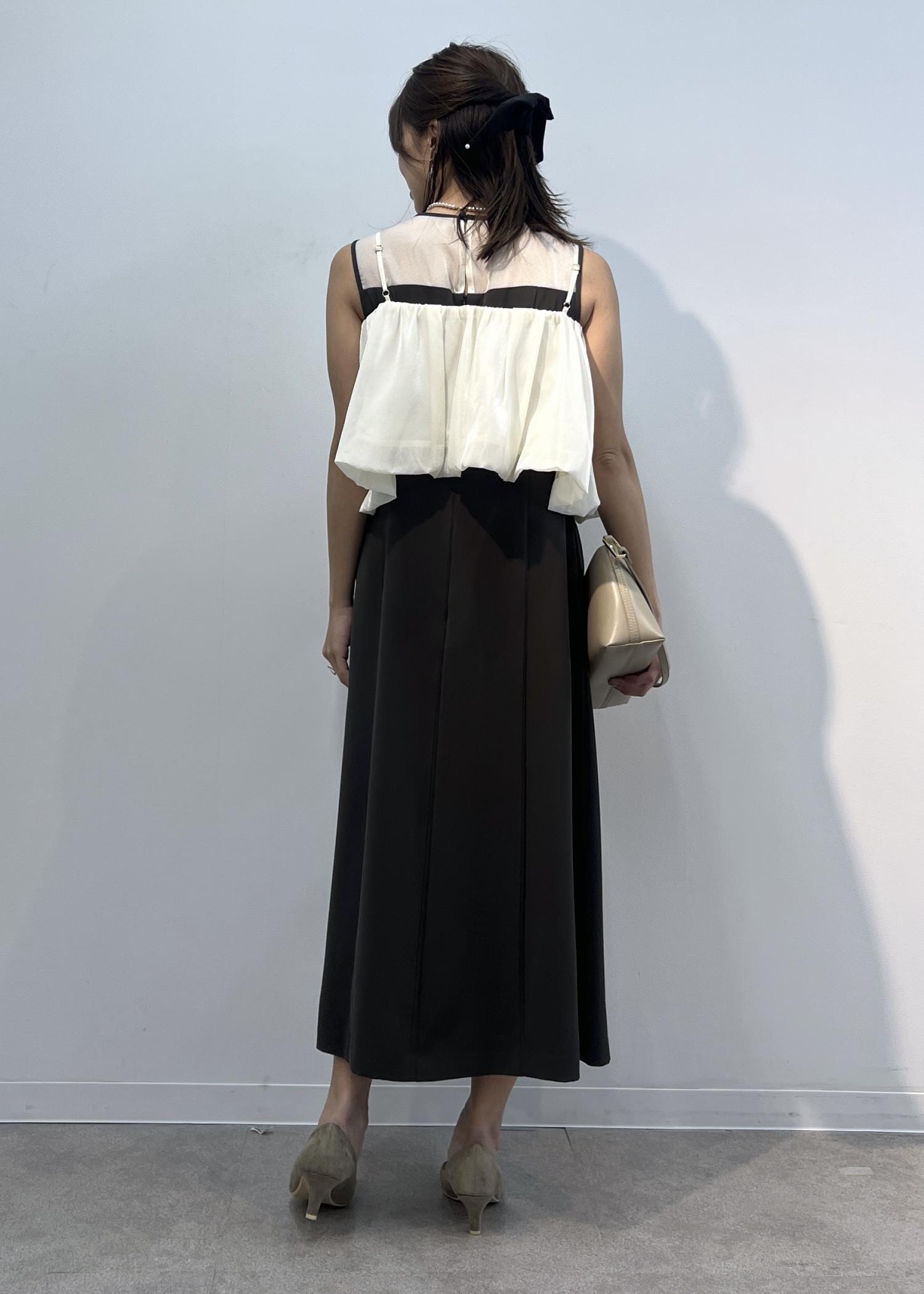 ROPÉ PICNIC【Mon E’toile/モンエトワール】バルーンビスチェセットワンピース/マルチWAYチャコール / M¥13,200レビューワンピース本体の身頃は光沢感のあるサラッとした肌触り。