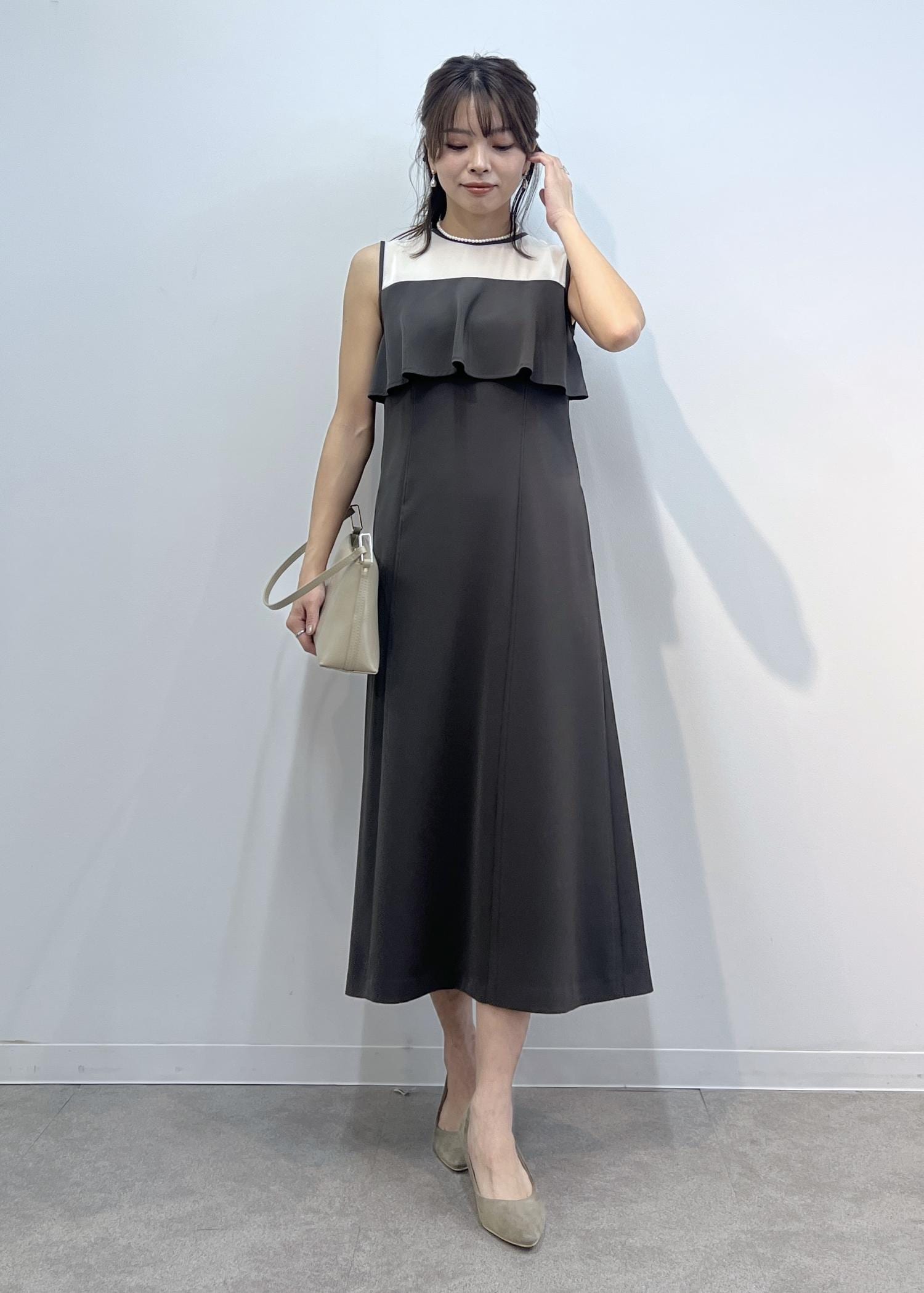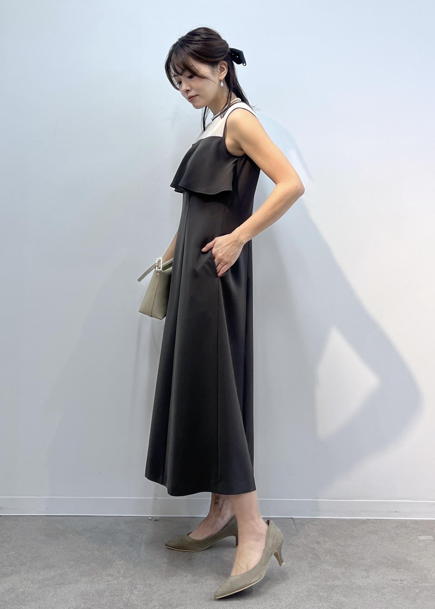 大人なチャコールグレーのワンピースなら、セレモニースタイルにもおすすめです。