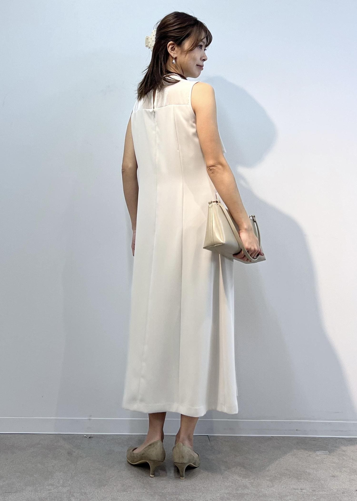 デコルテ部分はシアー感のある生地ですが透けすぎないので、露出感はなく着やすい素材感。