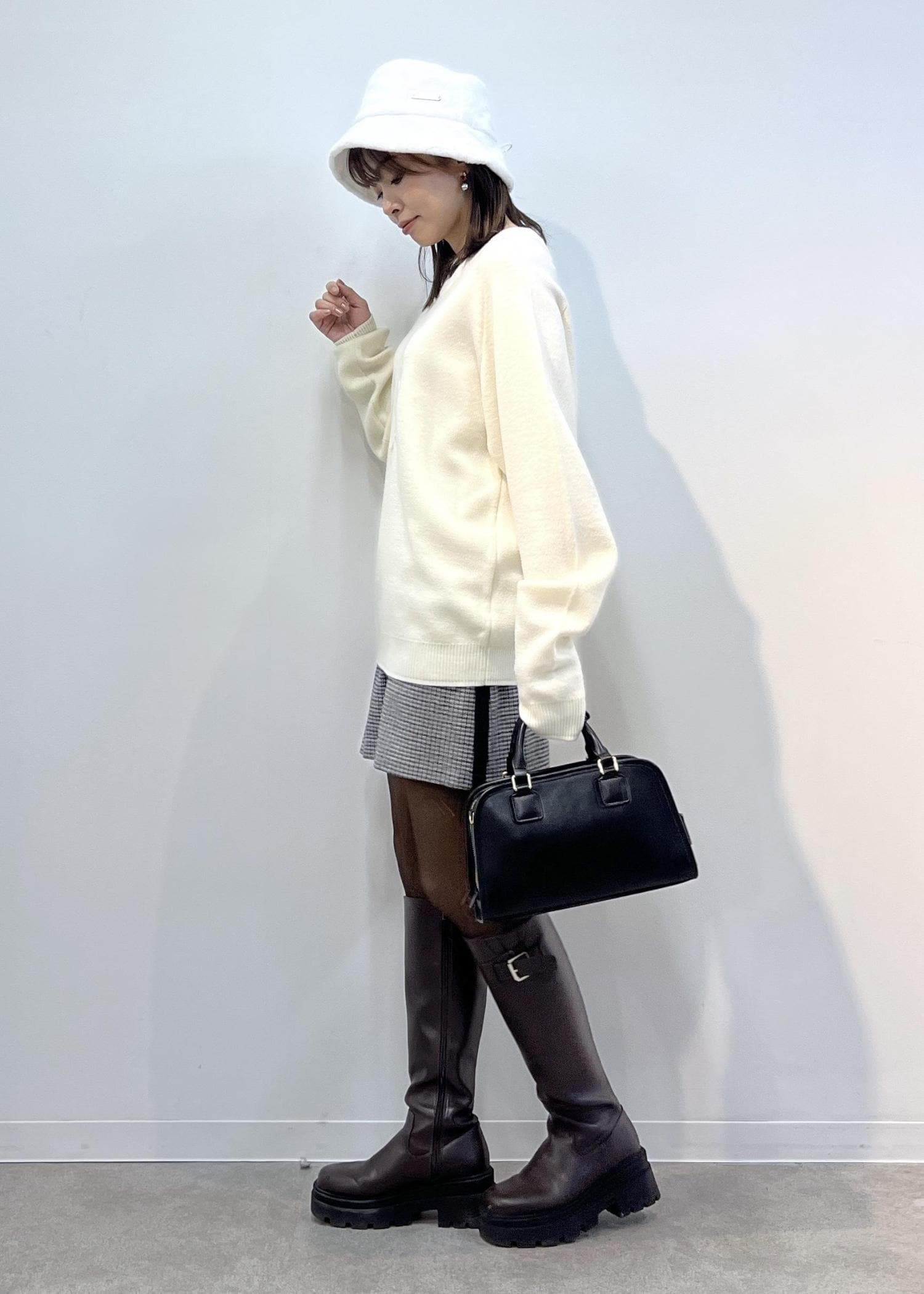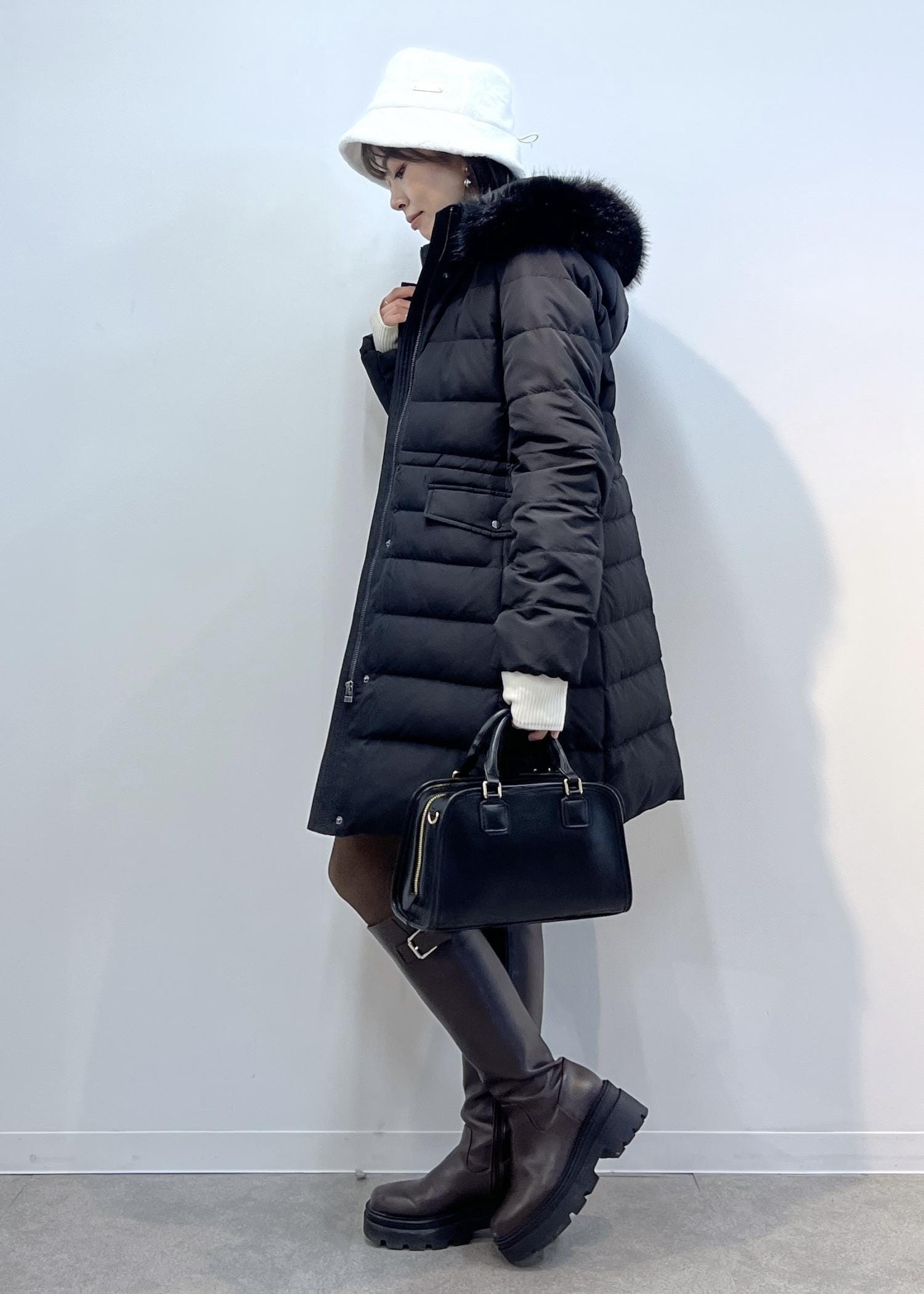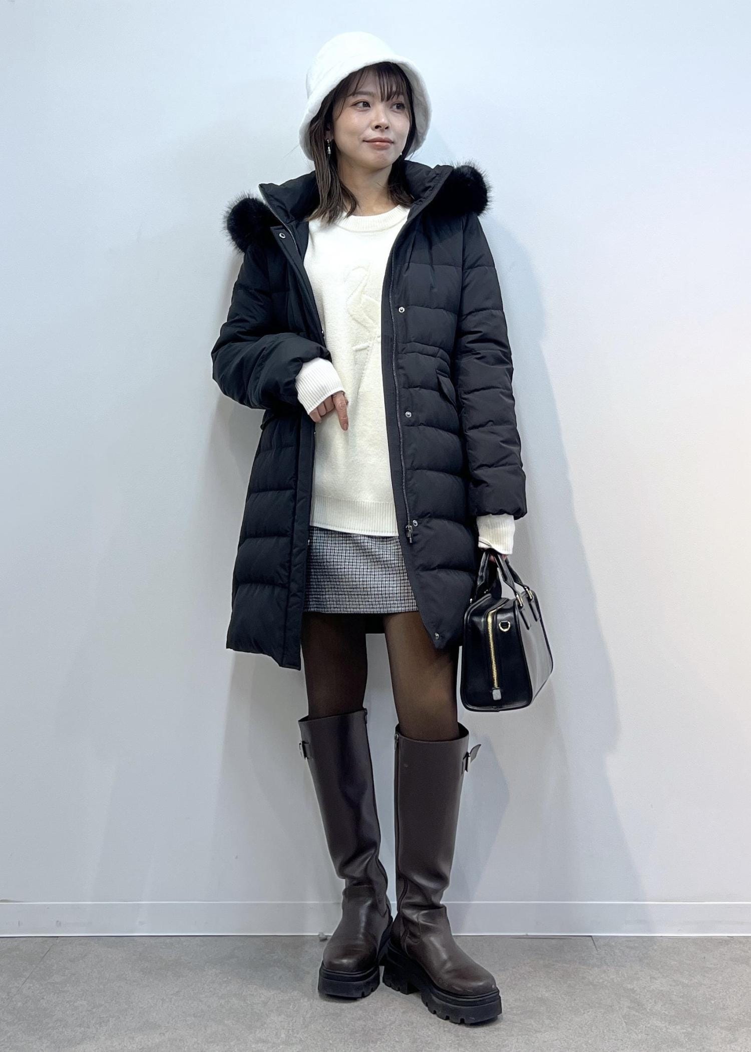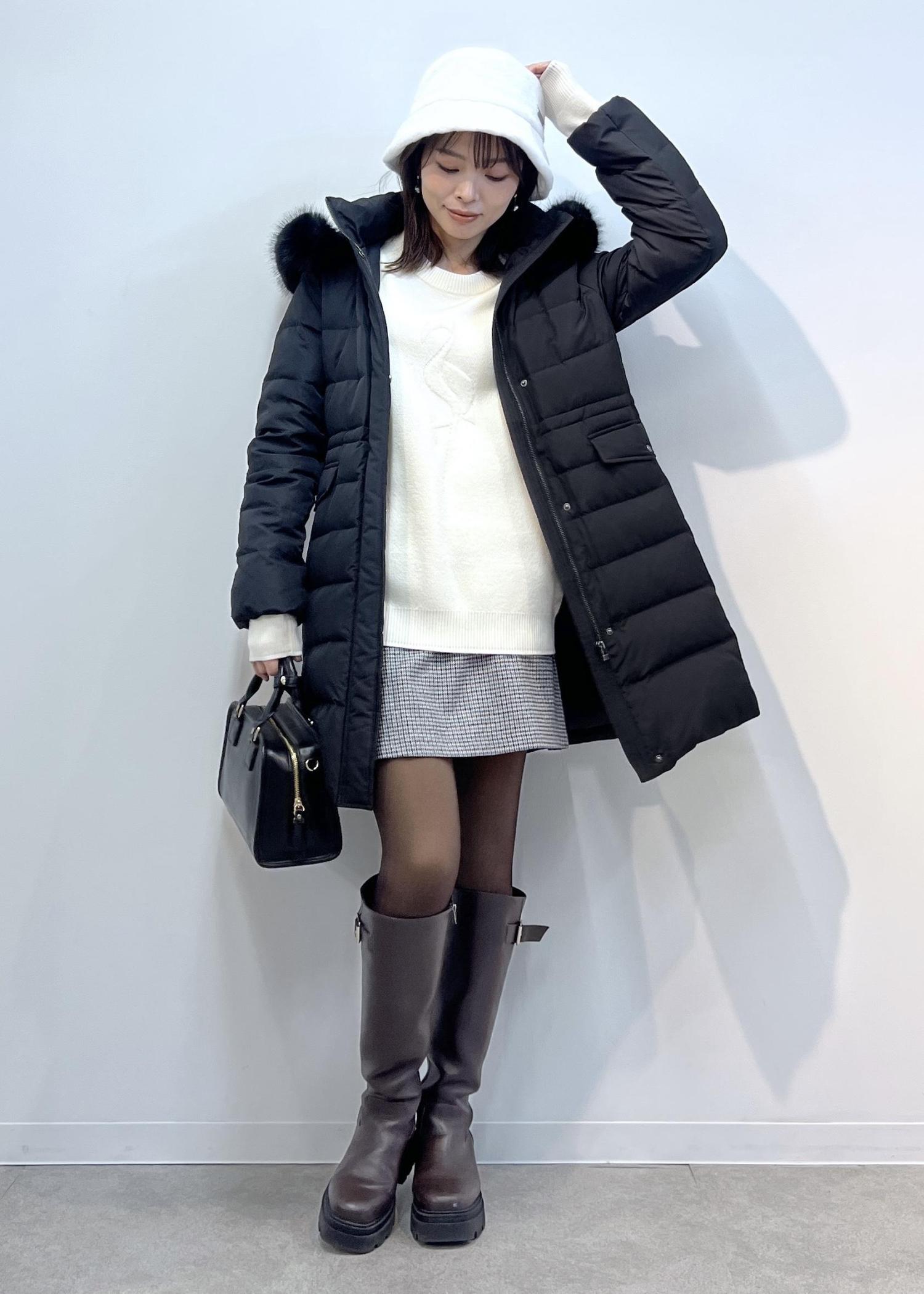 タウンユースにはロングブーツを合わせて、寒い日にも暖かい冬のお出かけコーデにしました。