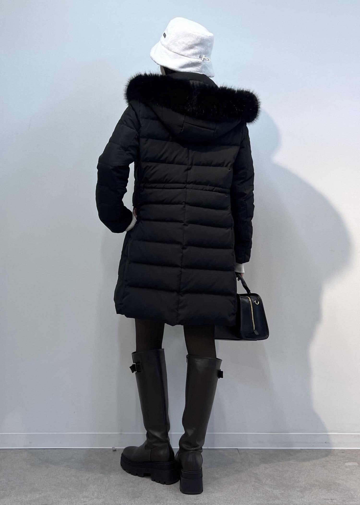 軽く羽織りやすいダウンコートは、スッキリ感のある細めの畝が大人コーデにマッチします。
