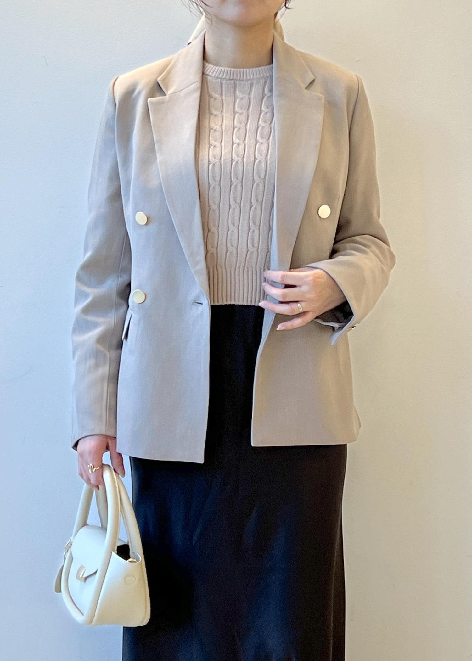 ROPÉ PICNICクリアツイル金ボタンジャケット/セレモニー・セットアップ対応ベージュ系 / L¥8,998レビュー身長162cmでLサイズを着用しています。着丈はヒップが隠れる丈感で、程よいゆとりもあるのでミドルゲージのニットをインナーに合わせられます。薄手のブラウス合わせでしたらMサイズでも大丈夫ですが、ゆったり目が良かったので、Lサイズにしました。
