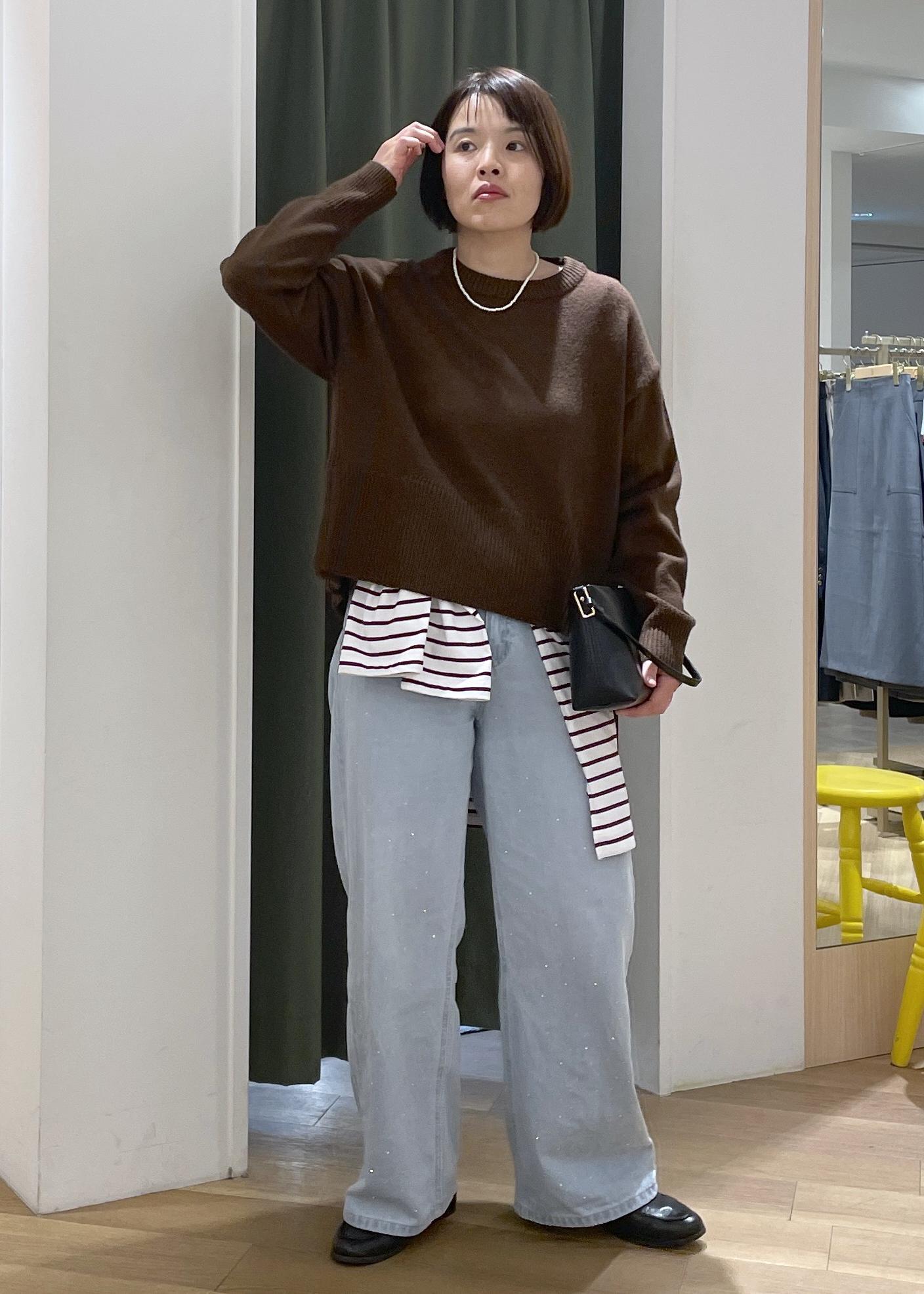 春のブラウンニットコーデ