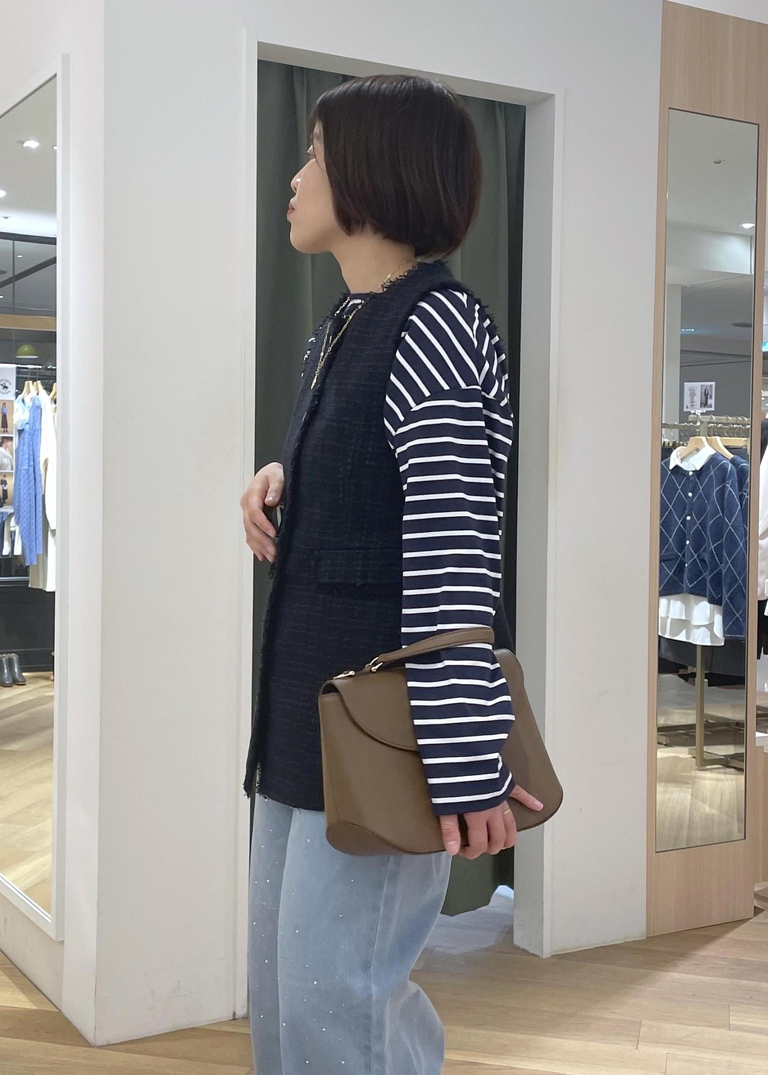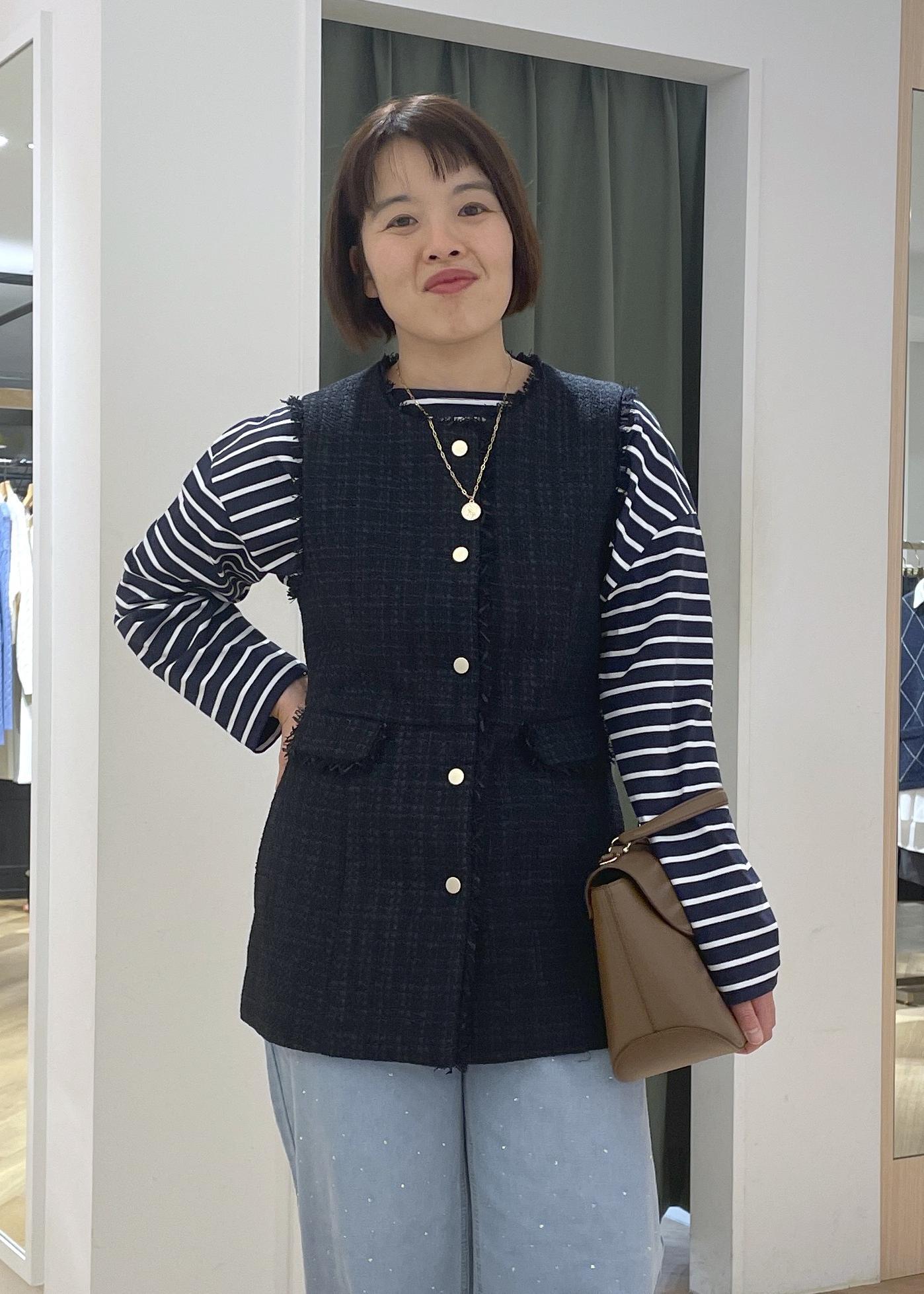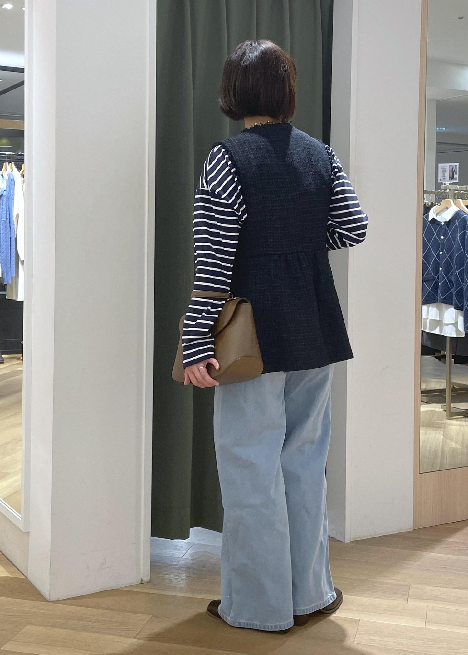 ツイードジレのボーダーレイヤードコーデ