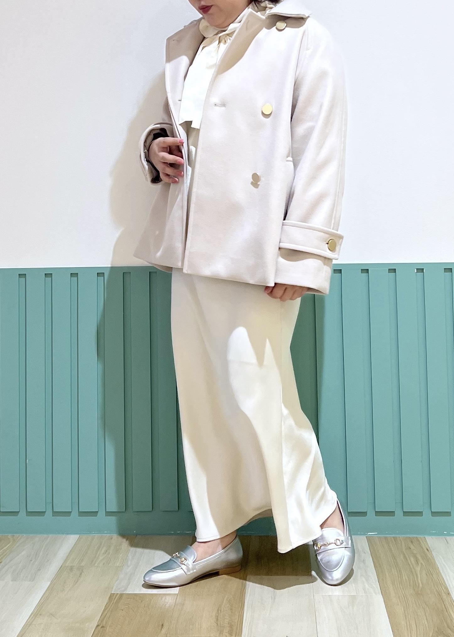 セレモニーも意識した、ホワイトワントーンコーデ。