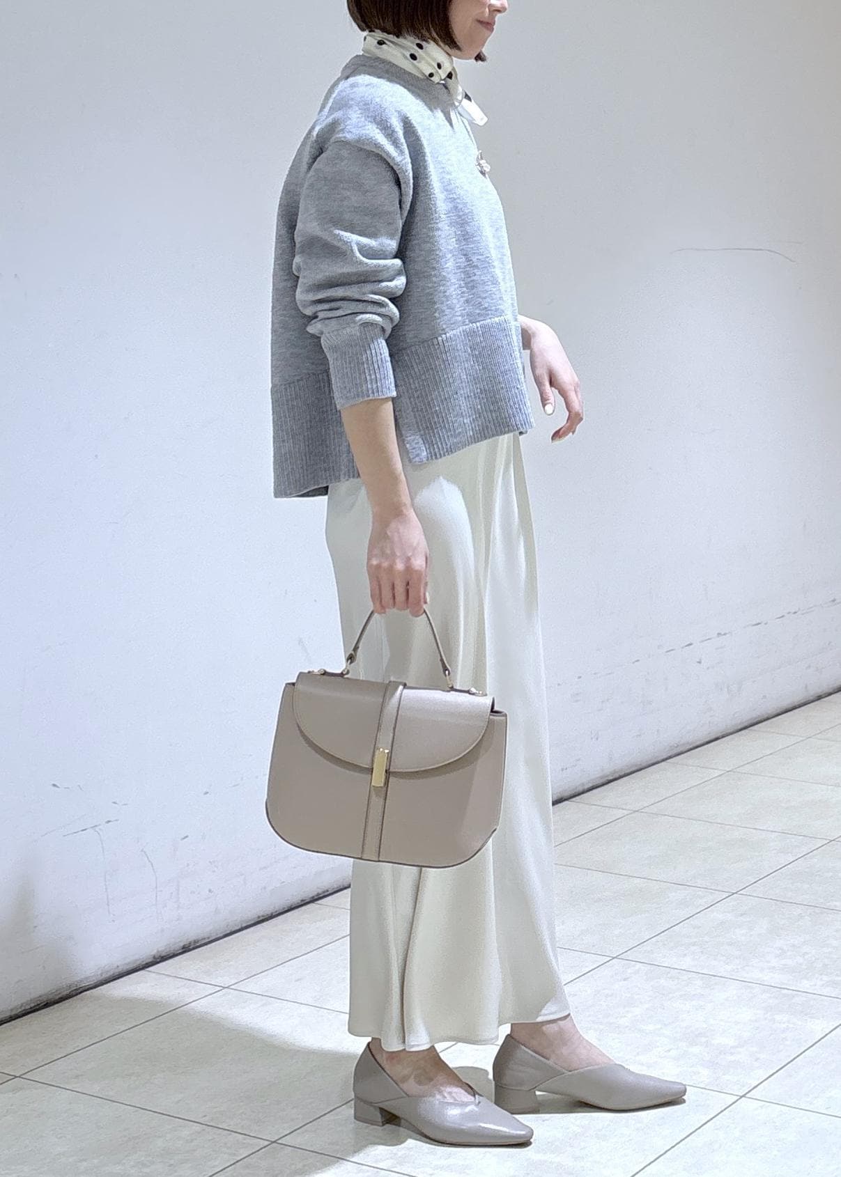 グレーニットのきちんとコーデ
