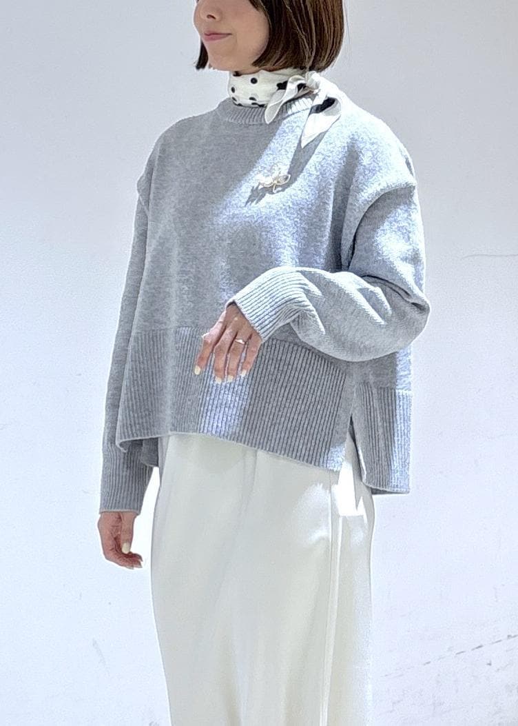 ゆるっと着られるグレーニットに