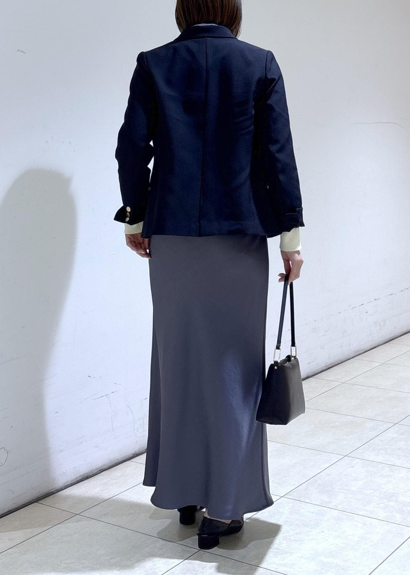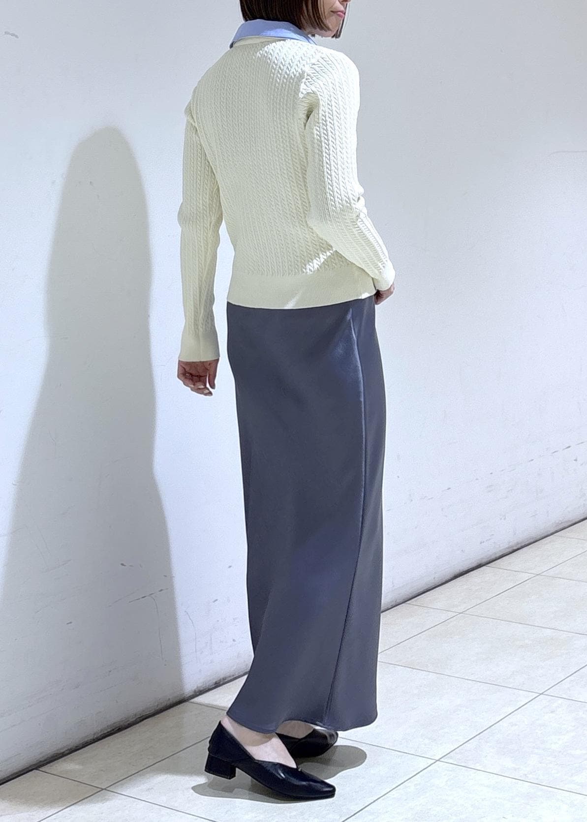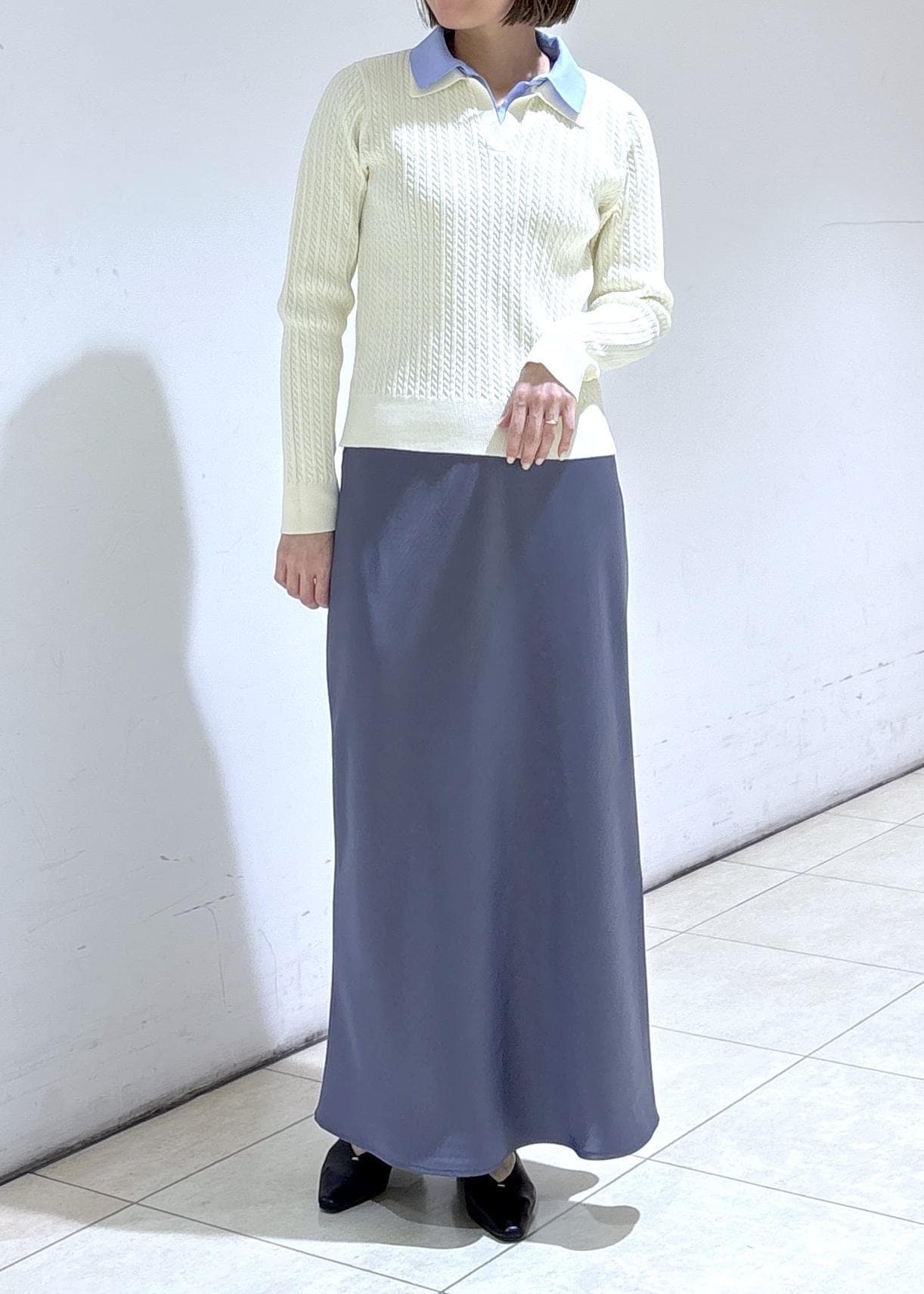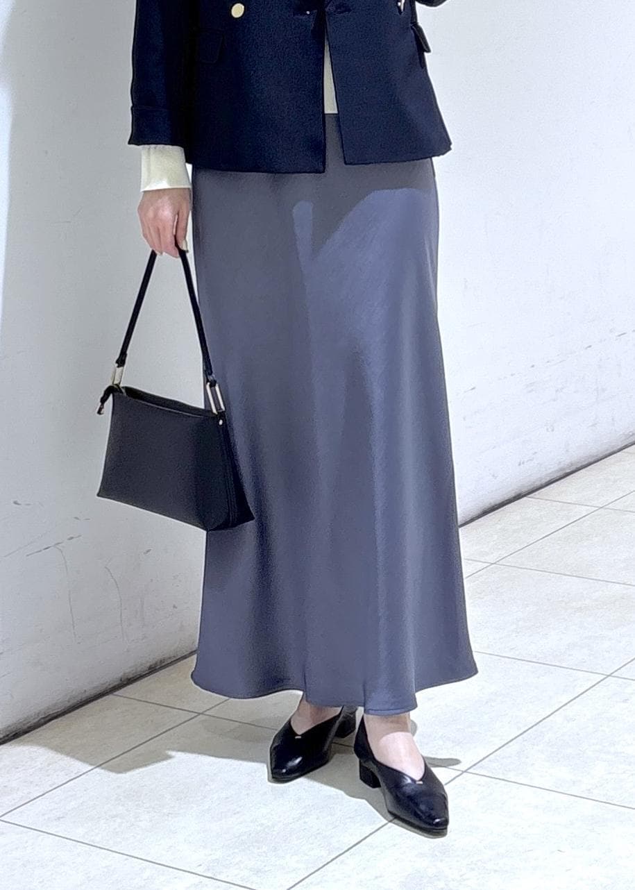 サラッと軽やかなサテンスカートを合わせた