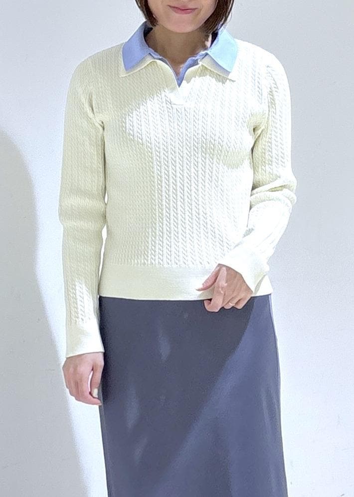 ROPÉ PICNICダブルカラーミニケーブルニットキナリ / F¥5,995レビュー身幅に程よくゆとりがありとても柔らかな着心地でした。一枚できちんと感を出してくれるニットです♪