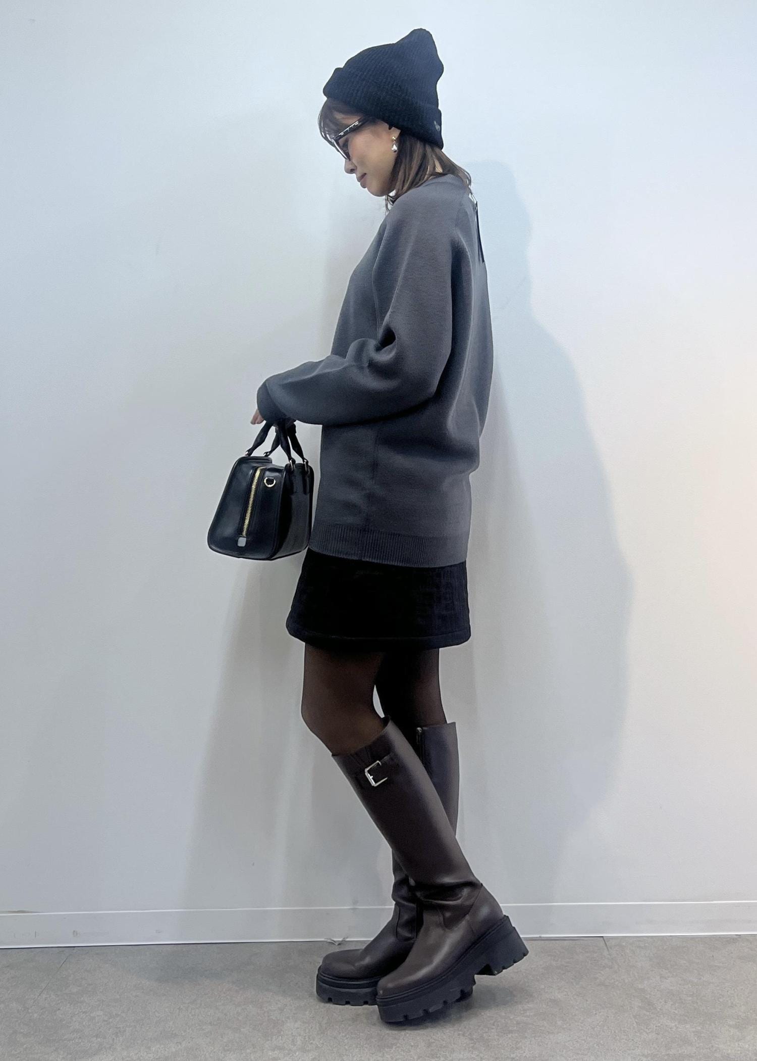 ニット×スカートのモノトーンカジュアルコーデ