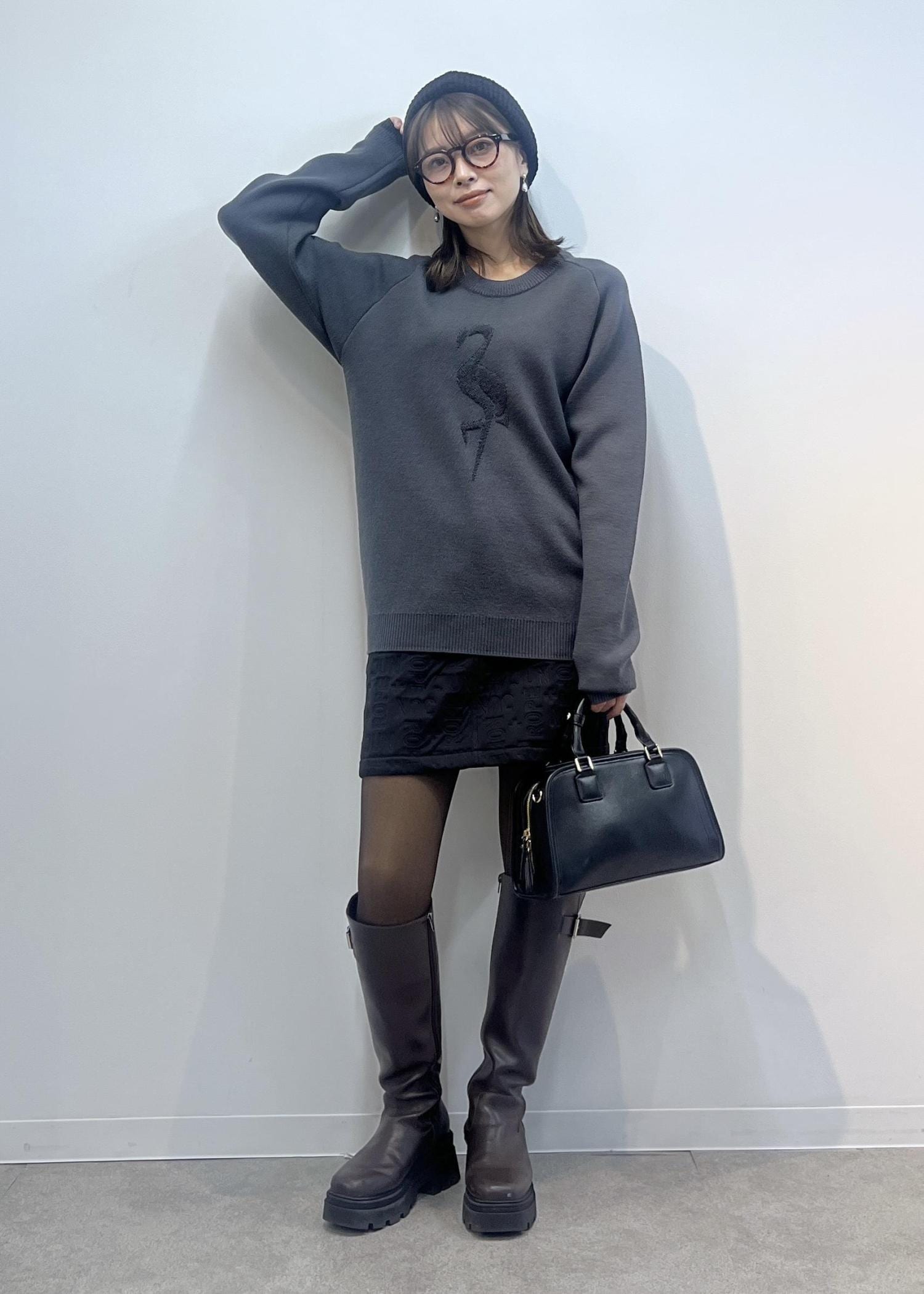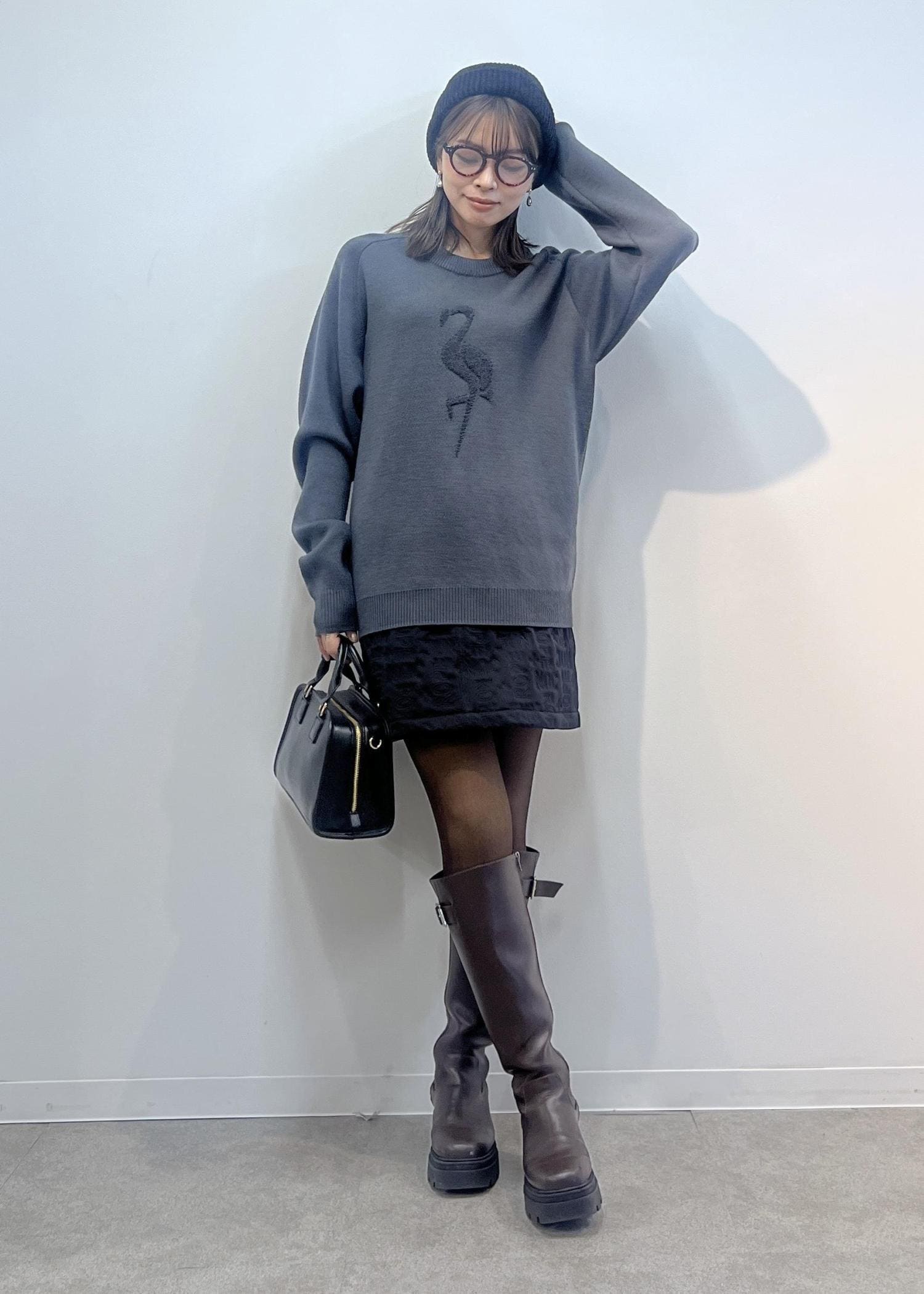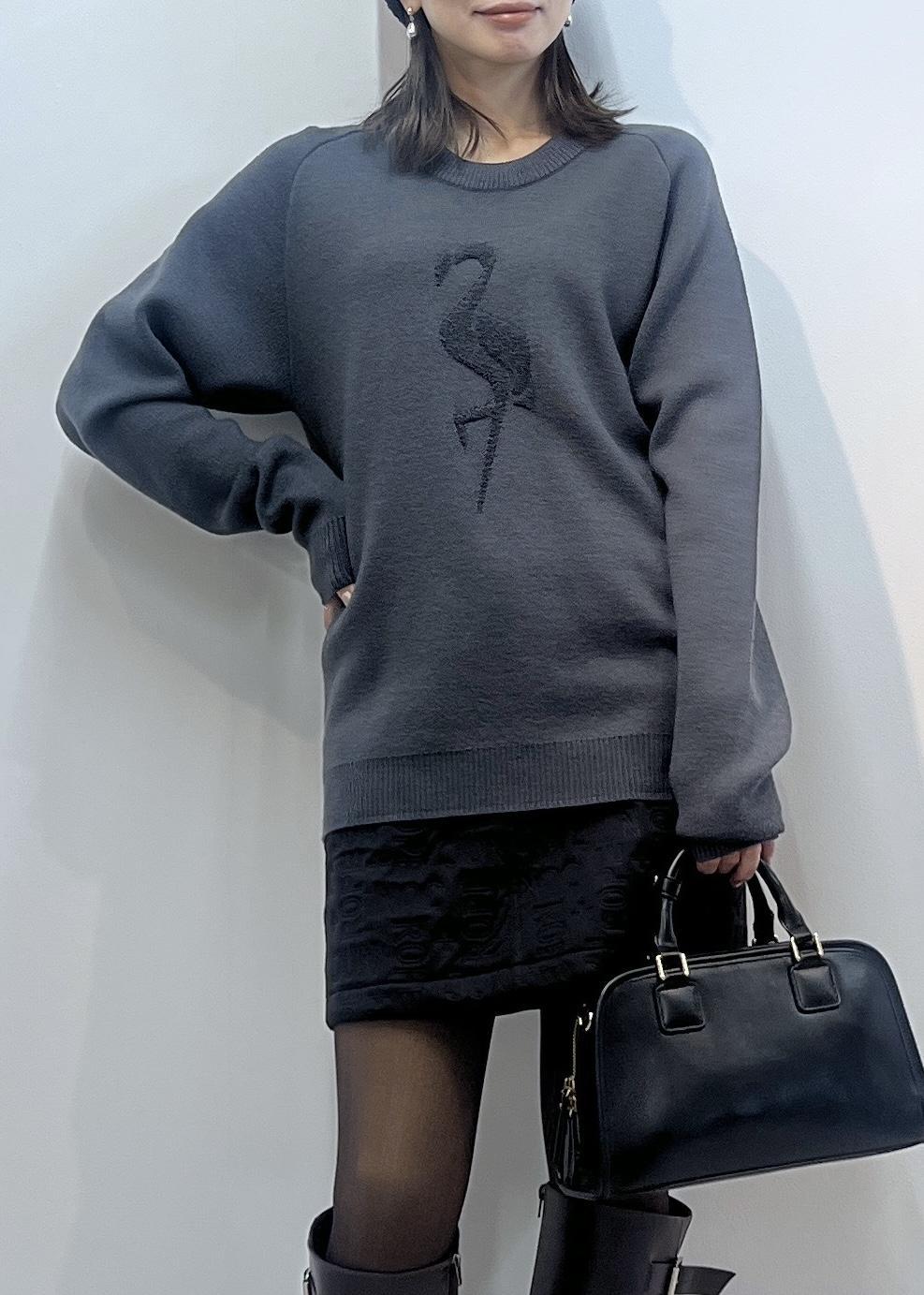 フラミンゴモチーフがポイントのニットは、柔らかくしっかり暖かみのあるウール素材。