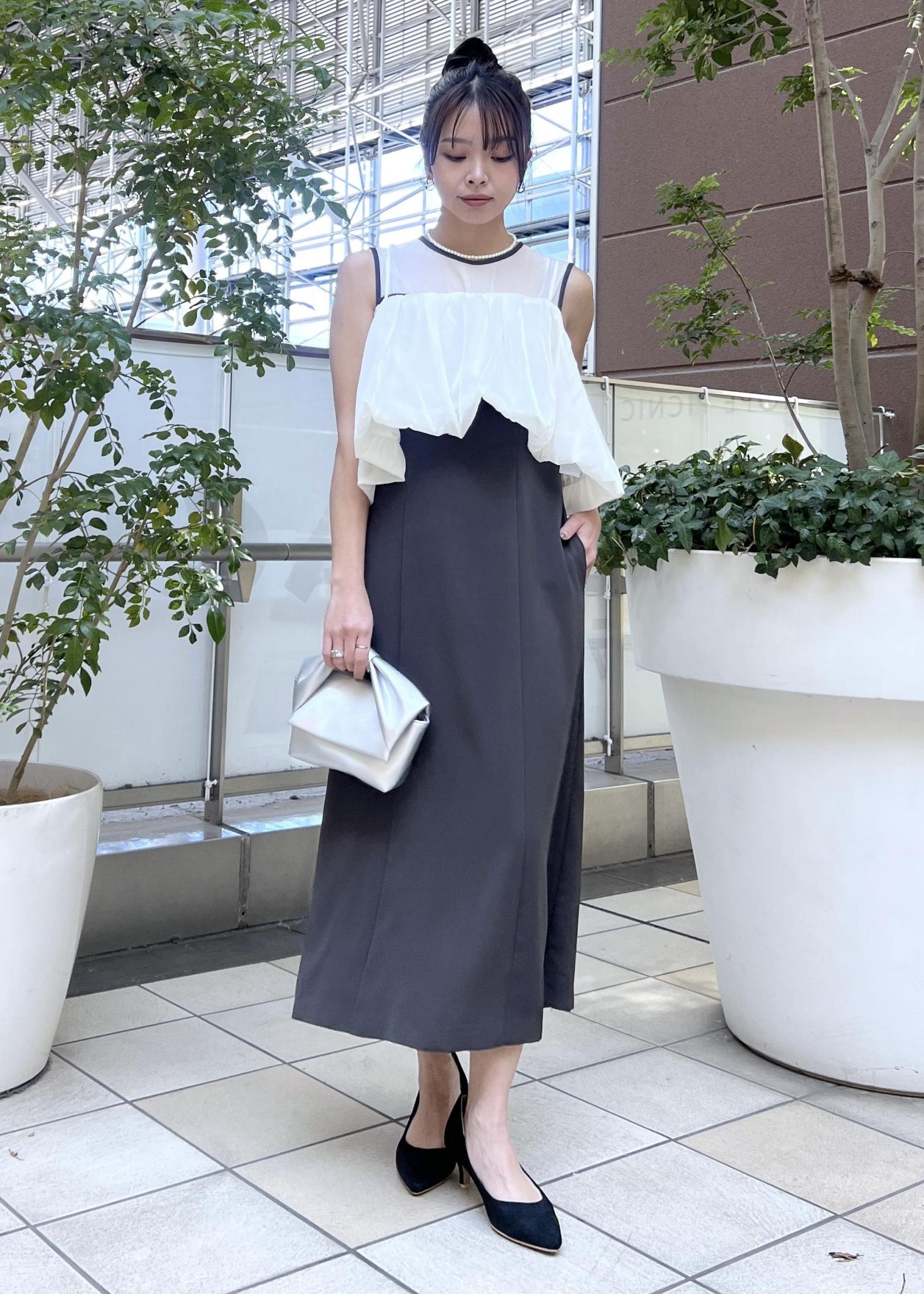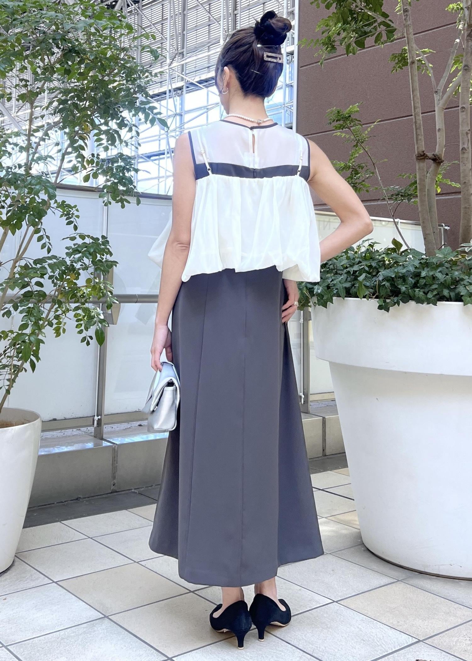 取り外せるビスチェ付きのワンピースは、ビスチェがあると華やかな雰囲気に。