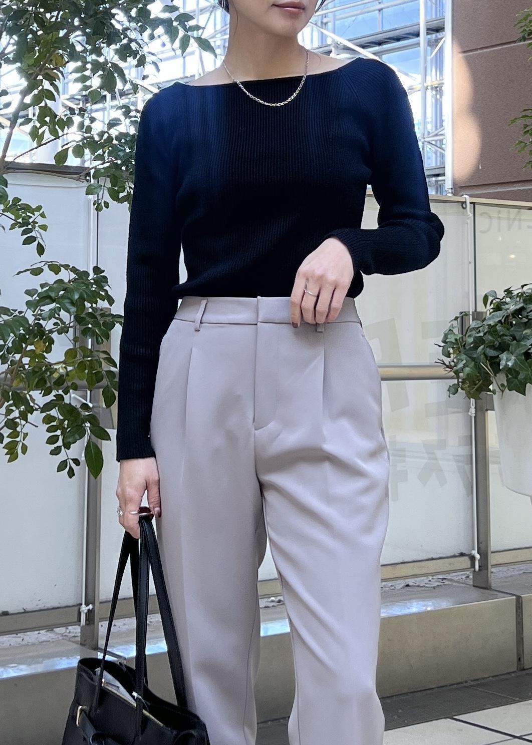 首周りもスッキリ見えるリブニットなら、甘くならないので大人きれいめ派さんにおすすめです。