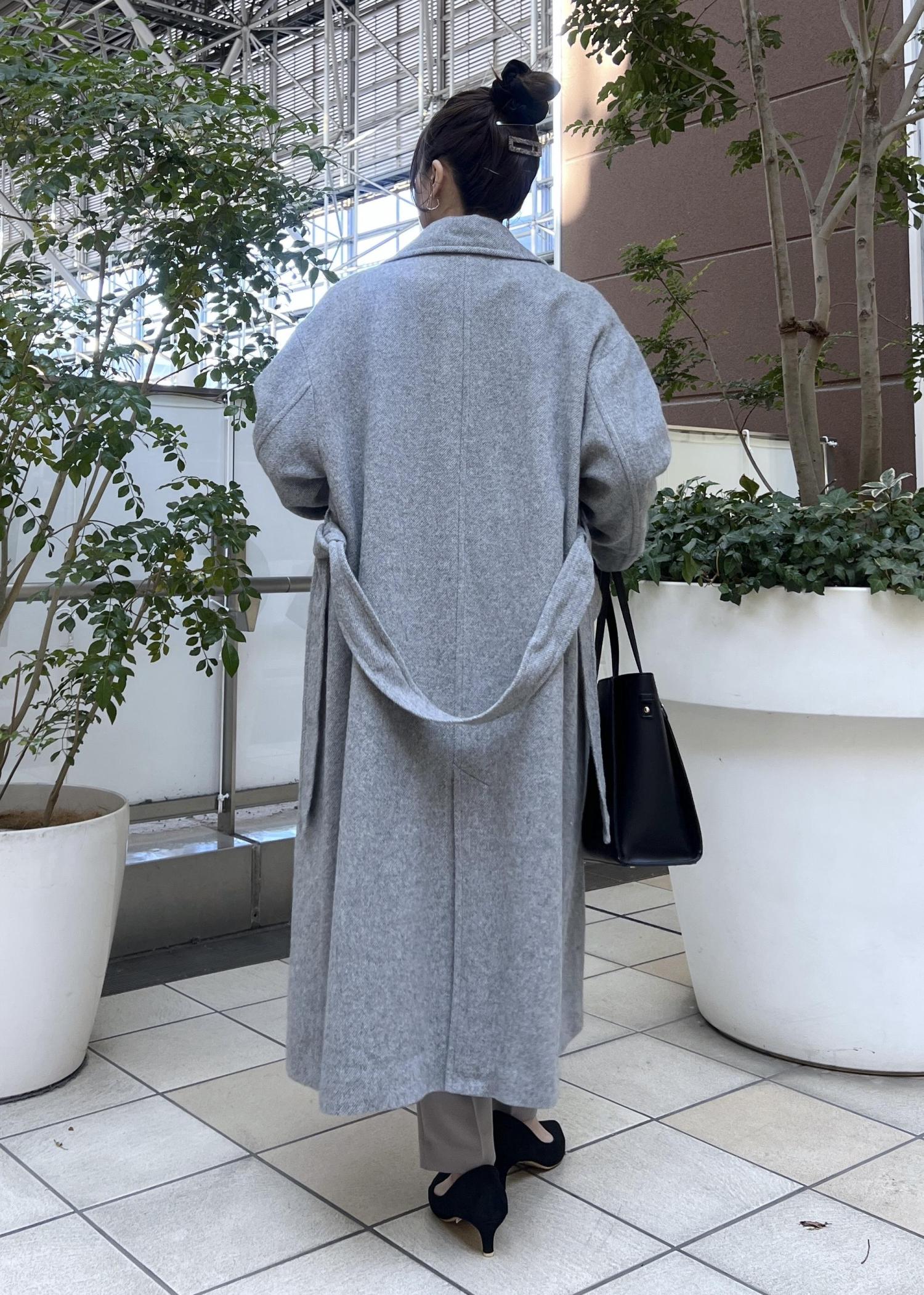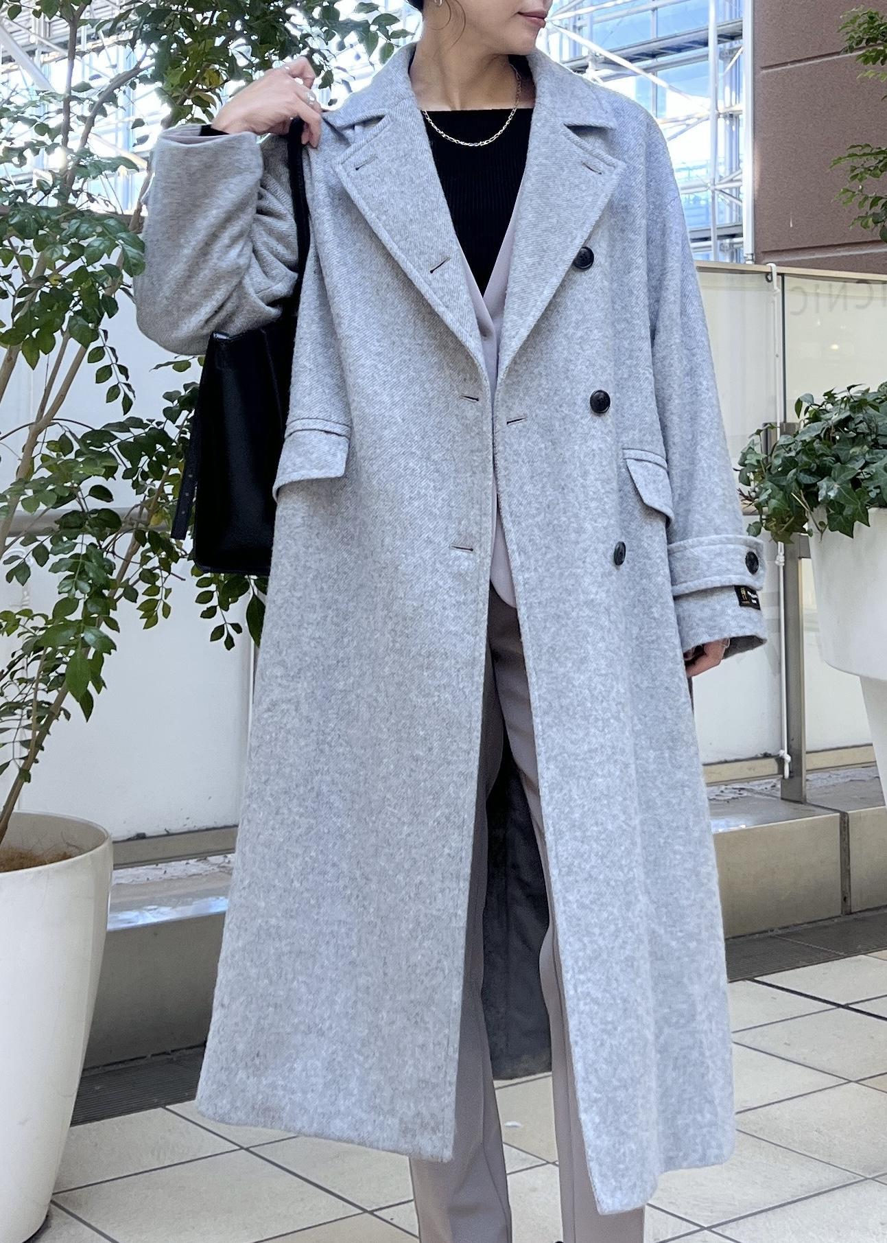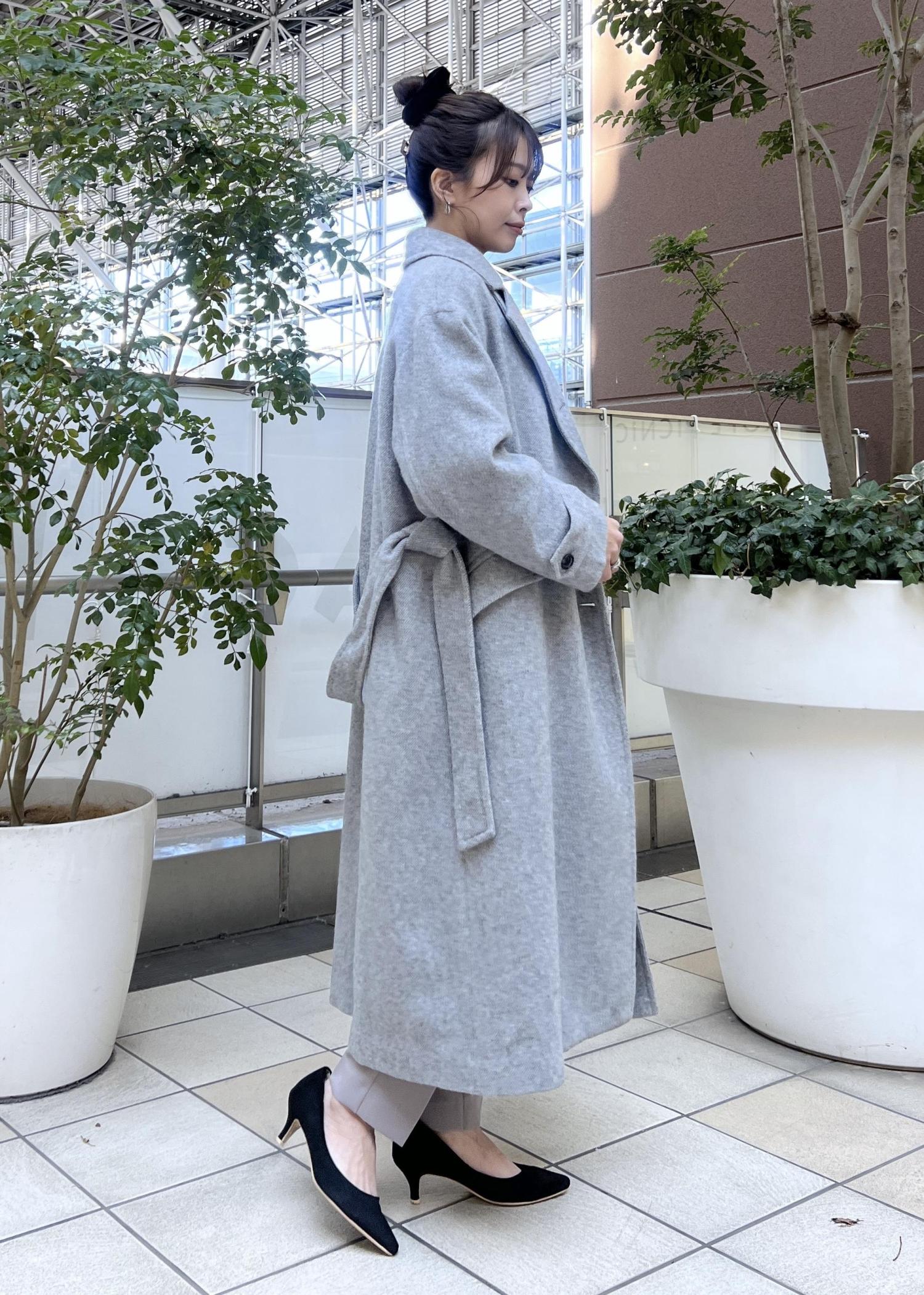 ロング丈のウールコートは、ゆったり羽織りやすいのでジャケットの上からでも羽織りやすいです。
