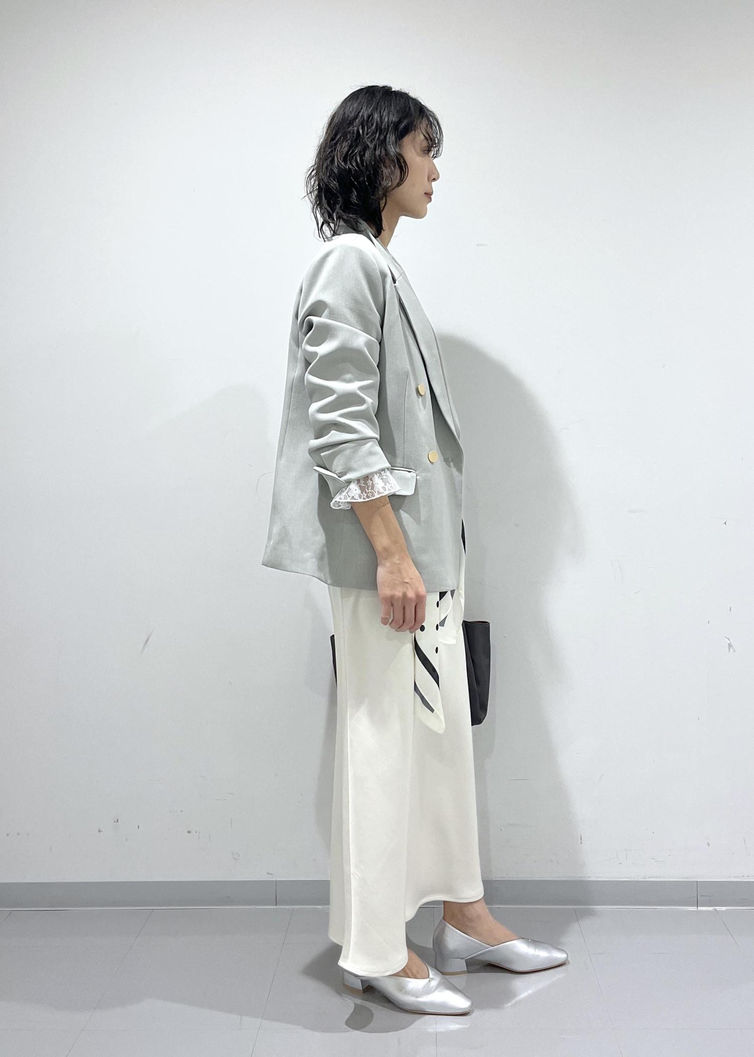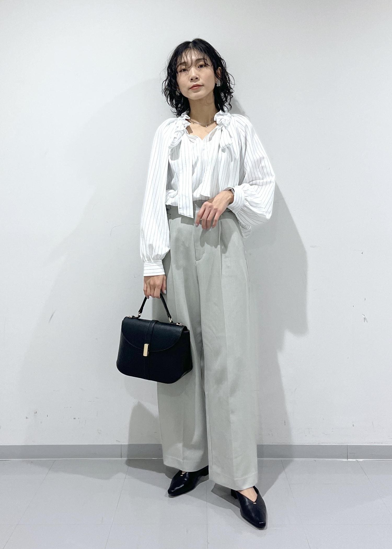 細身のシルエットなのでトップスにボリュームを持ってきてもバランスがとりやすいです。