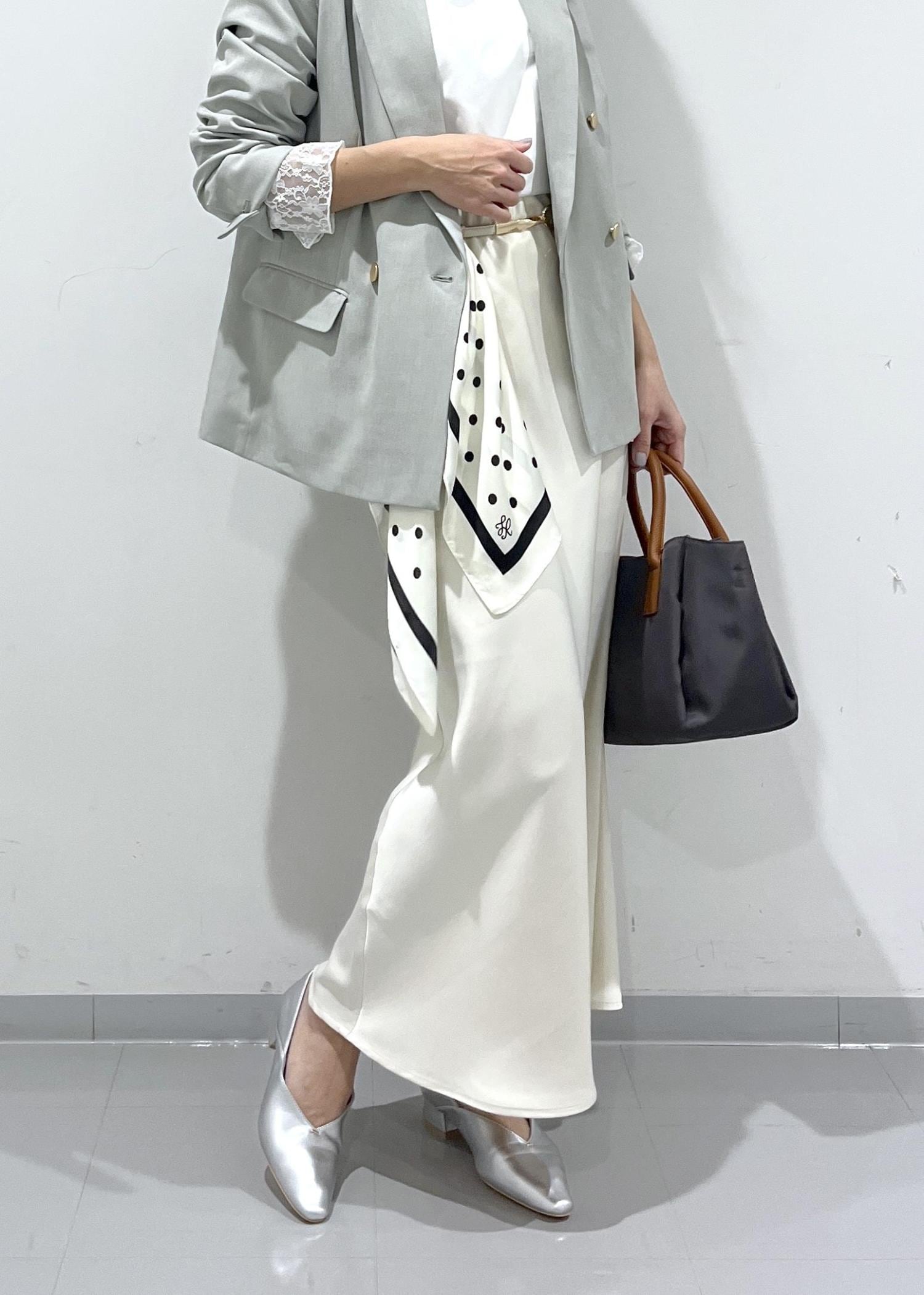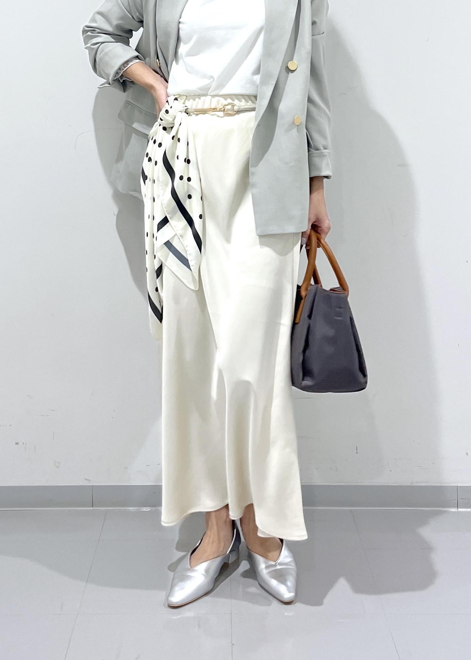 ROPÉ PICNIC細見えバイアスサテンスカート/イージーケアオフホワイト / F¥6,490レビュー光沢のある生地が上品な印象のスカートです。