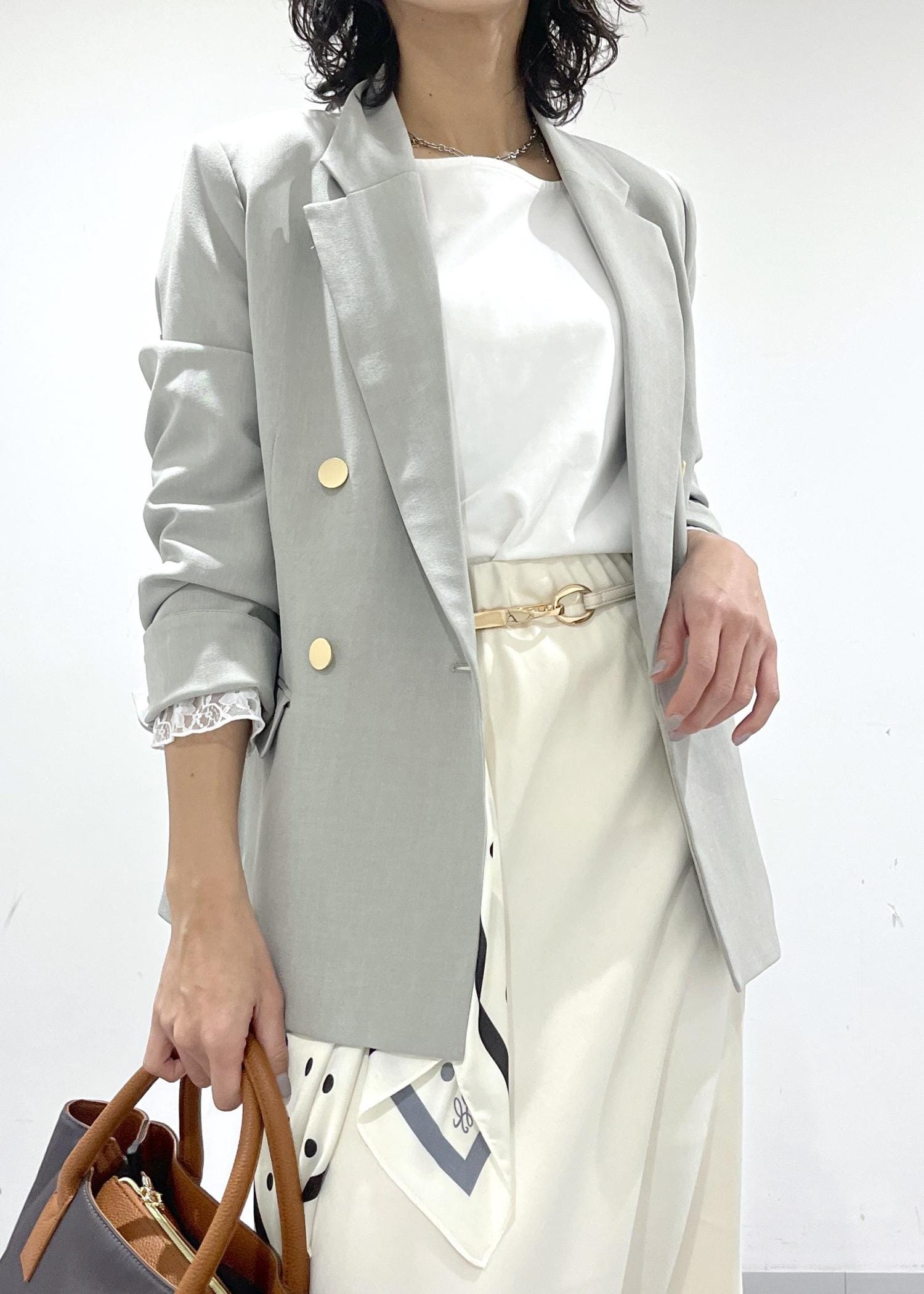 ダブルジャケットですが、すっきりシルエットのためLサイズの方が少しゆとりがあり着心地も良かったので、普段よりワンサイズ上を選びました。 -