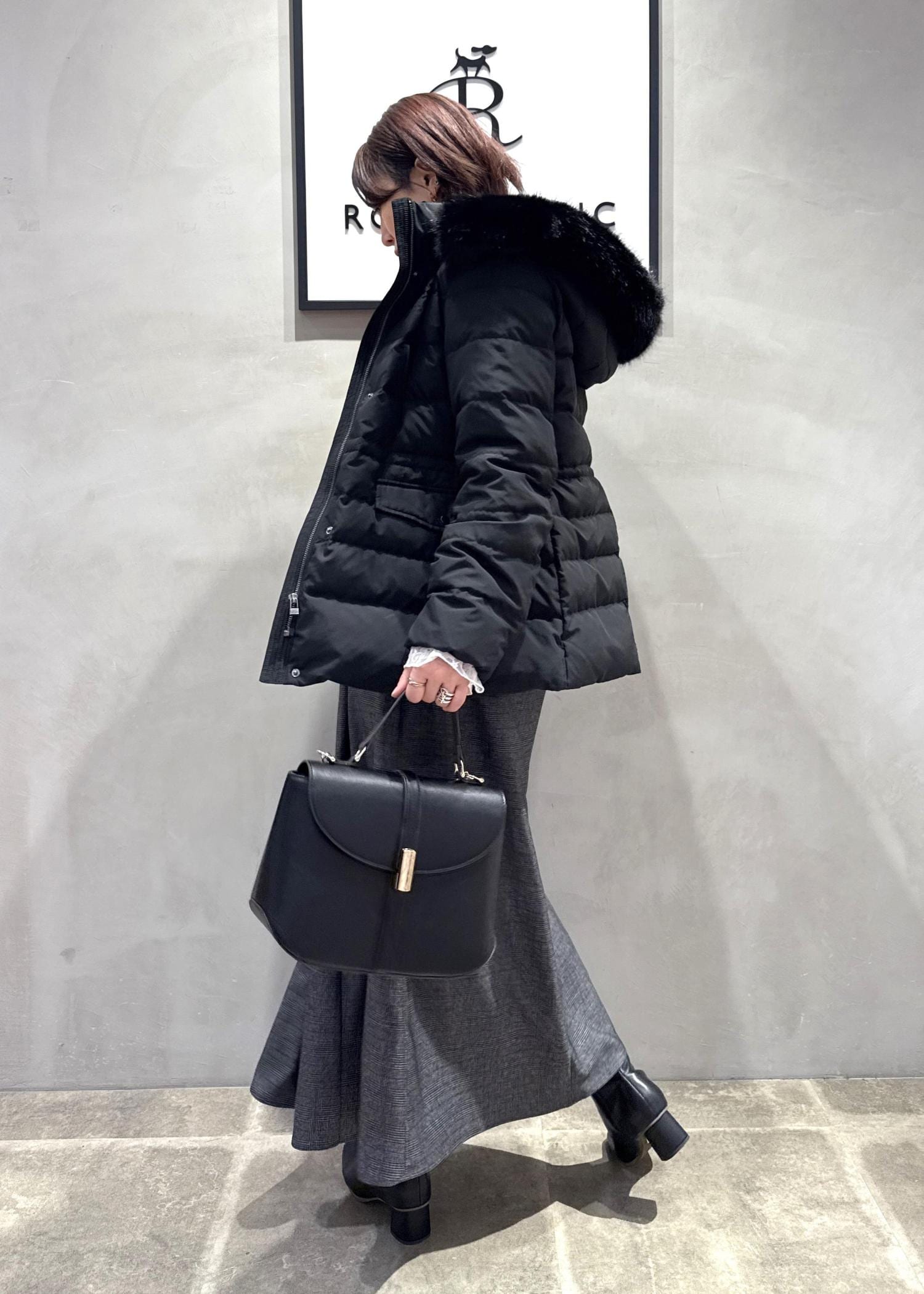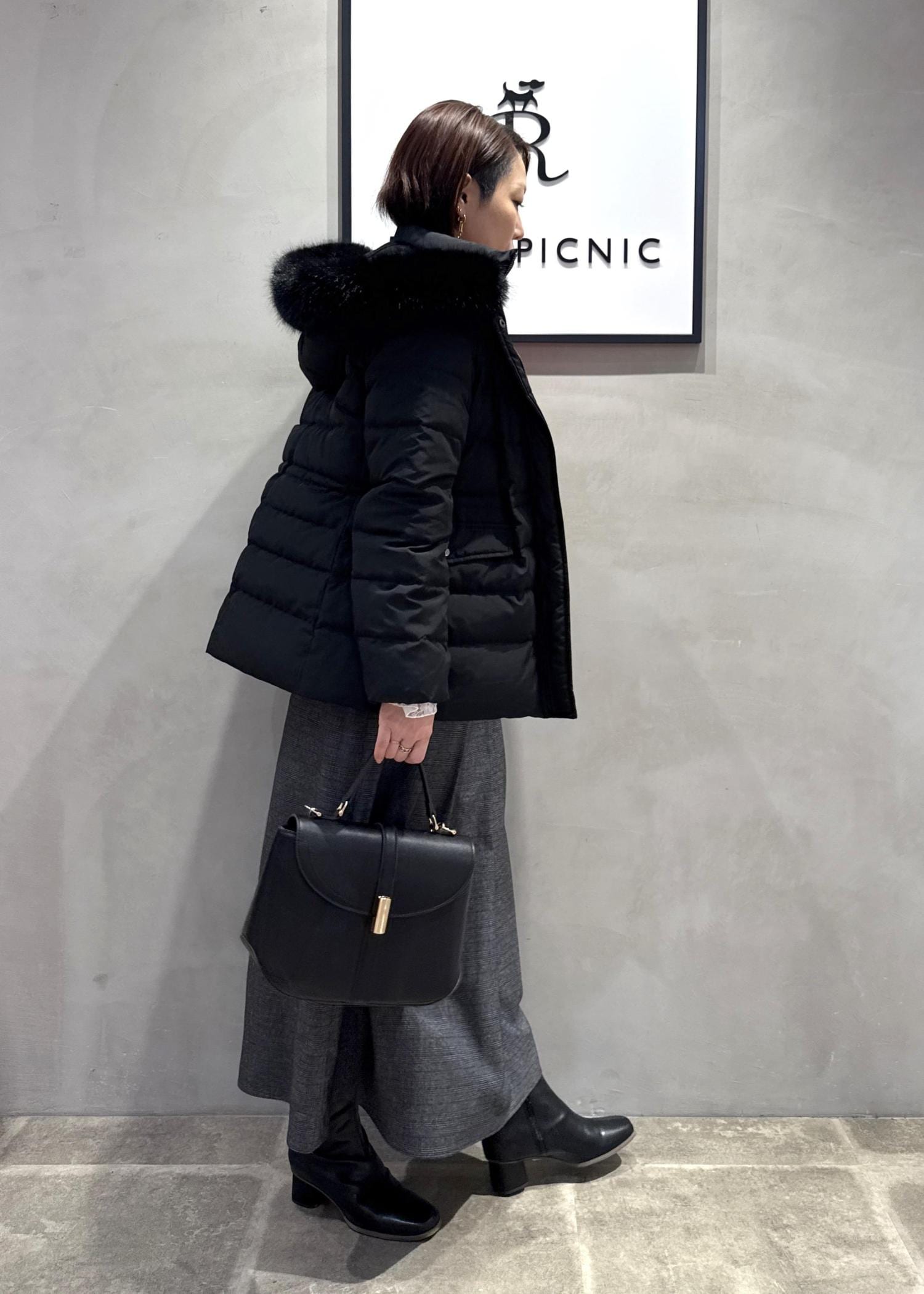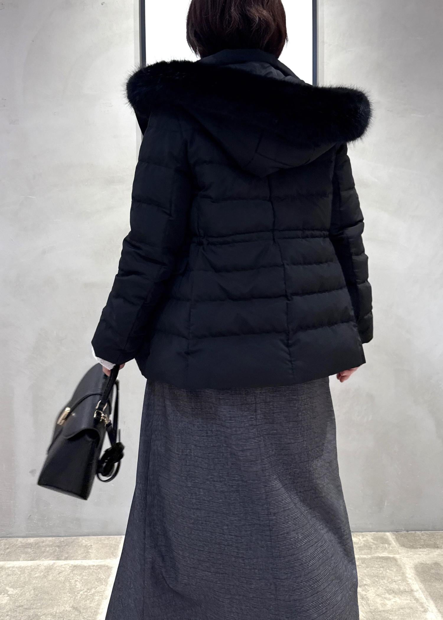 ROPÉ PICNIC【GREEN DOWN/グリーンダウン】ファー付きダウンミドル丈コート/リンクコーデブラック / S¥14,960レビューダウンの分量を考慮し、着膨れのないきれいめなダウンジャケットが完成。