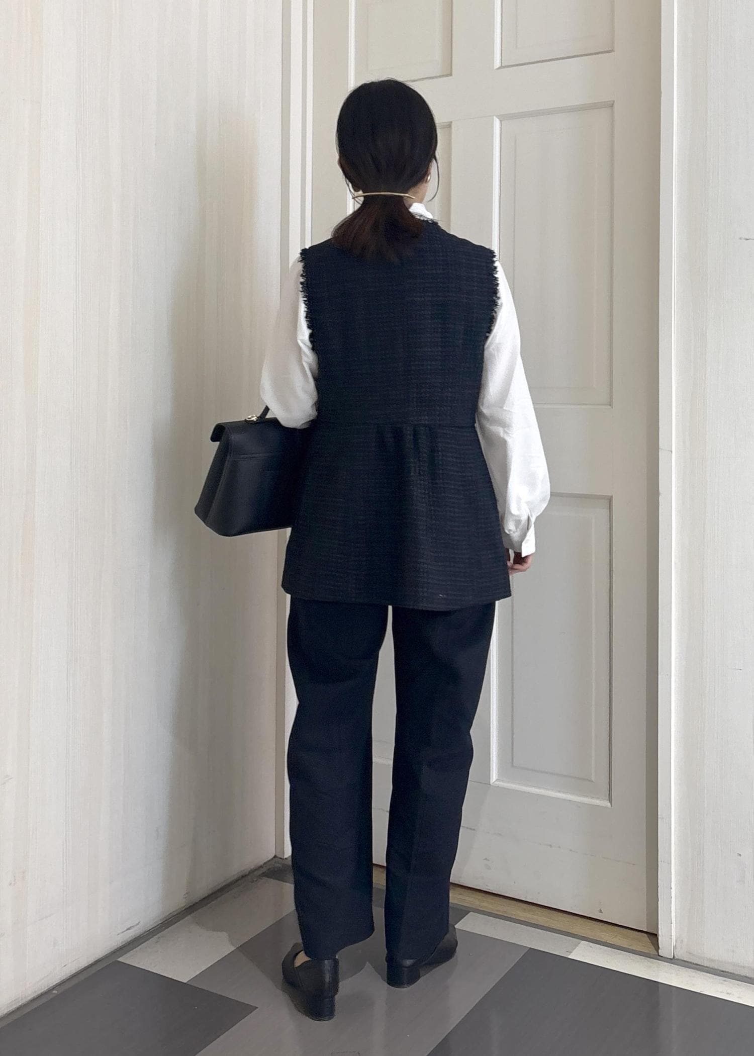 予約ROPÉ PICNIC【WEB限定カラー】ツイード金ボタンジレベスト/セレモニー対応・リンクコーデネイビー / F¥8,998レビューウエストのくびれが綺麗に見える形です。