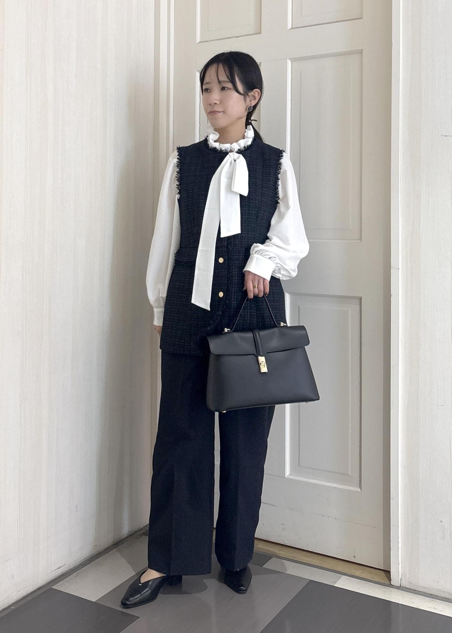 甘めなブラウスが苦手な方でもリボンの結び方で印象をガラっと変えられます☺︎ -