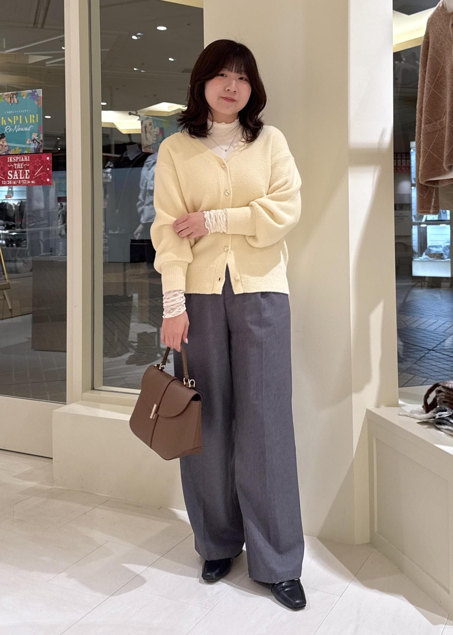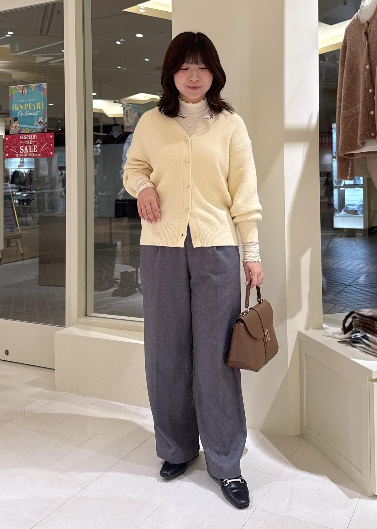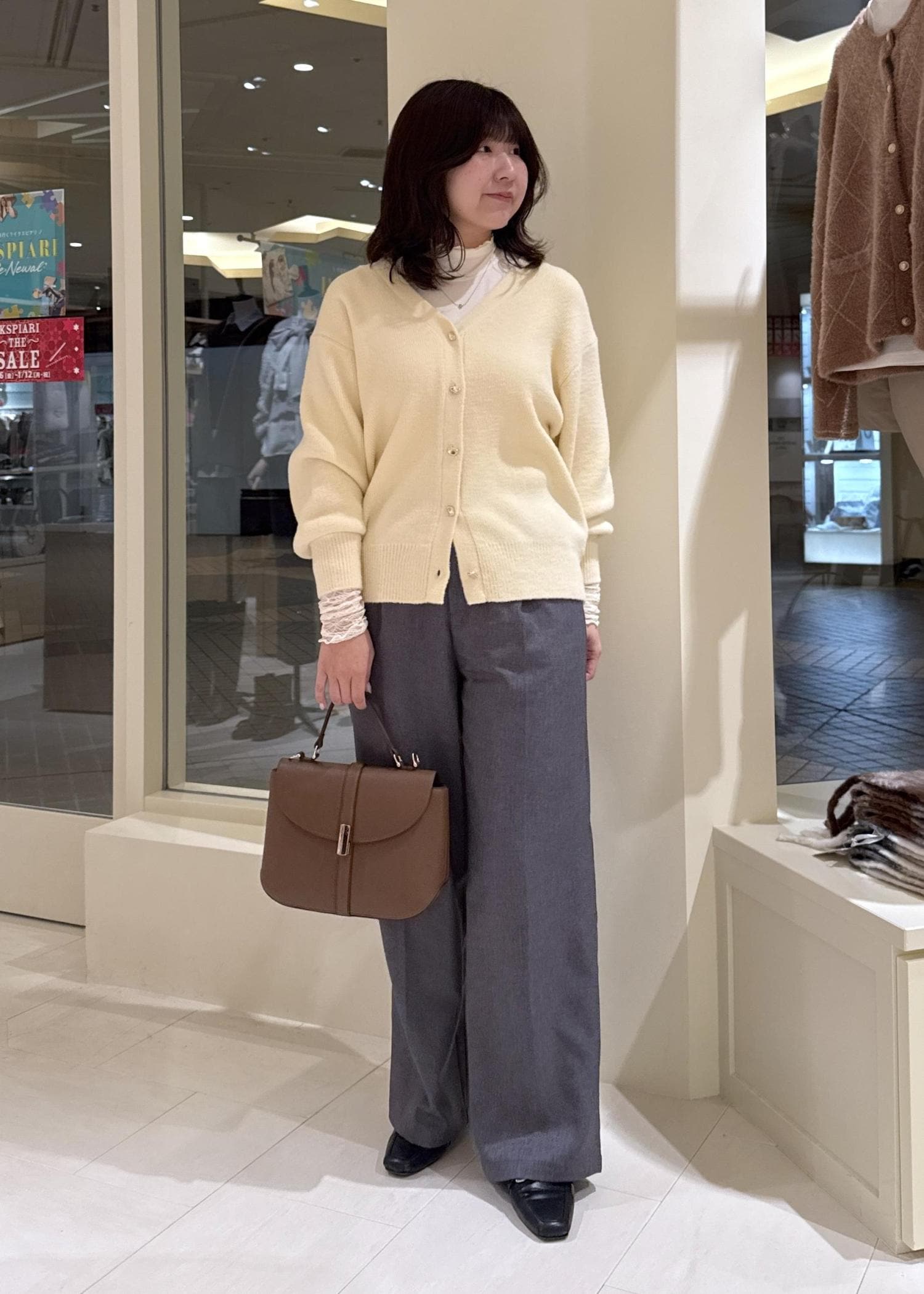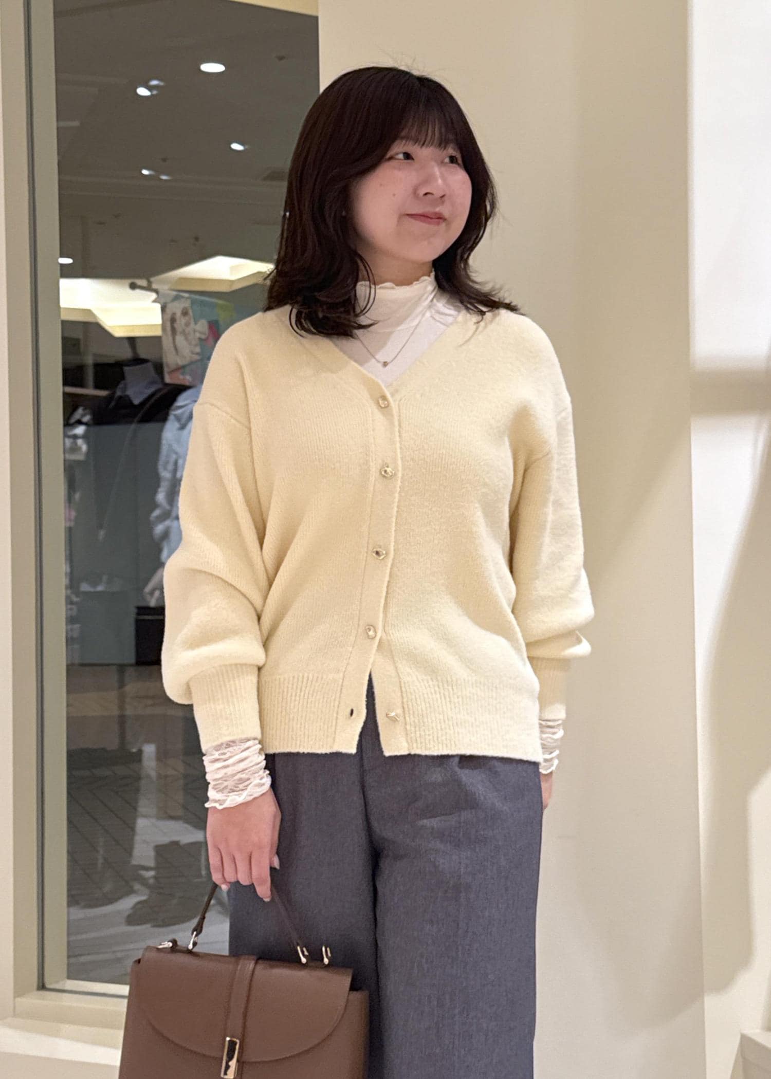 ボタンの明け具合で抜け感を出すと骨格ウェーブさんにもバランスよく着ていただけます! -
