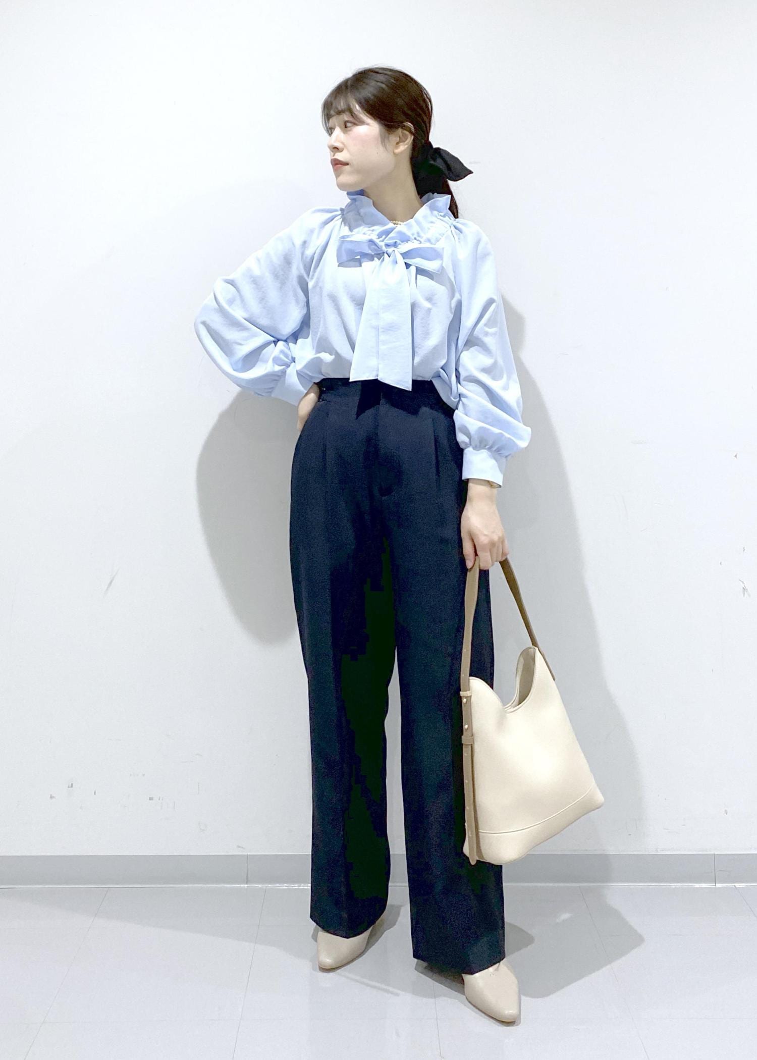 フリルボウタイブラウスです。