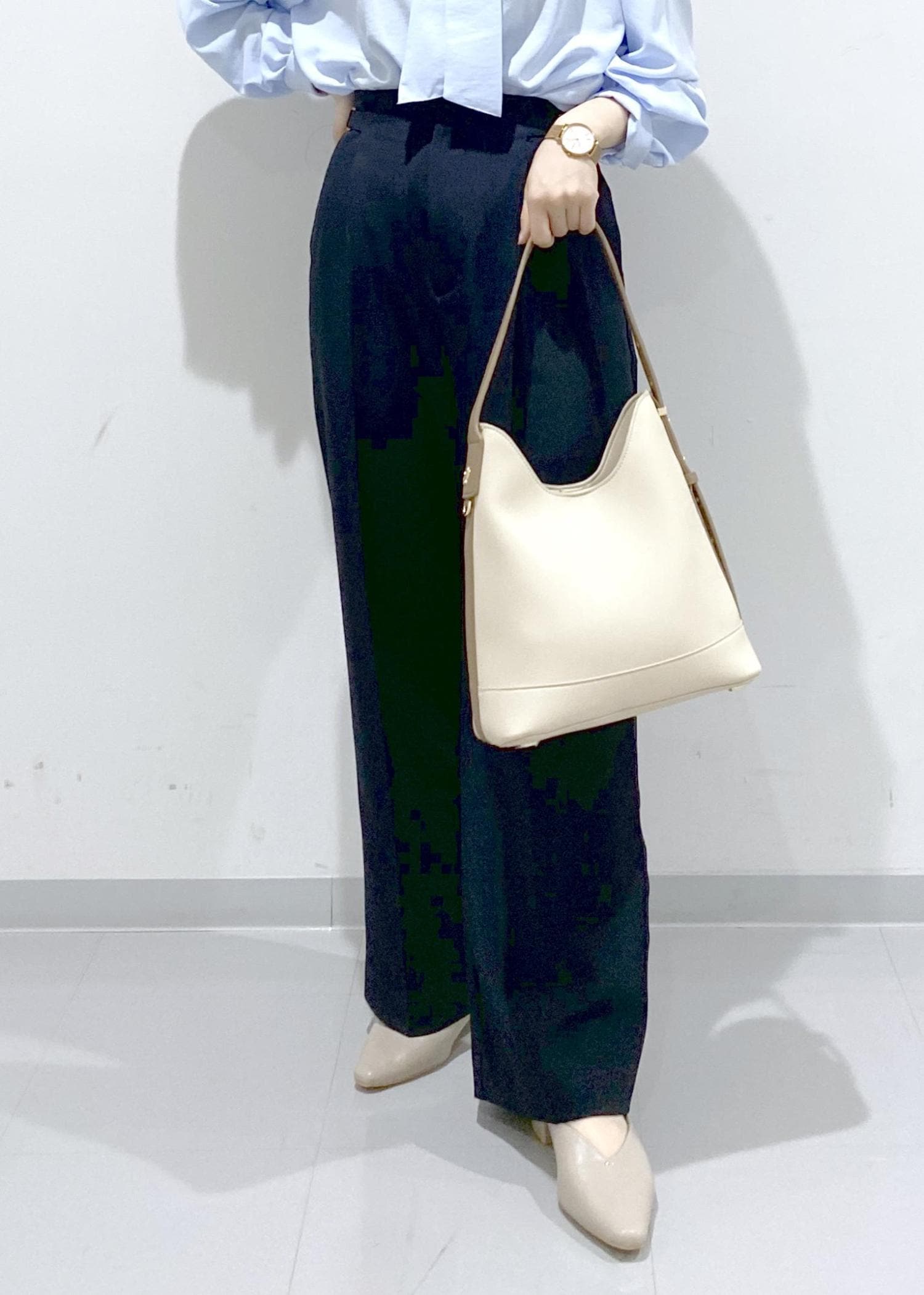 ハンドルの長さが調整できるので、アウターを着ていても肩にかけやすいです。 -