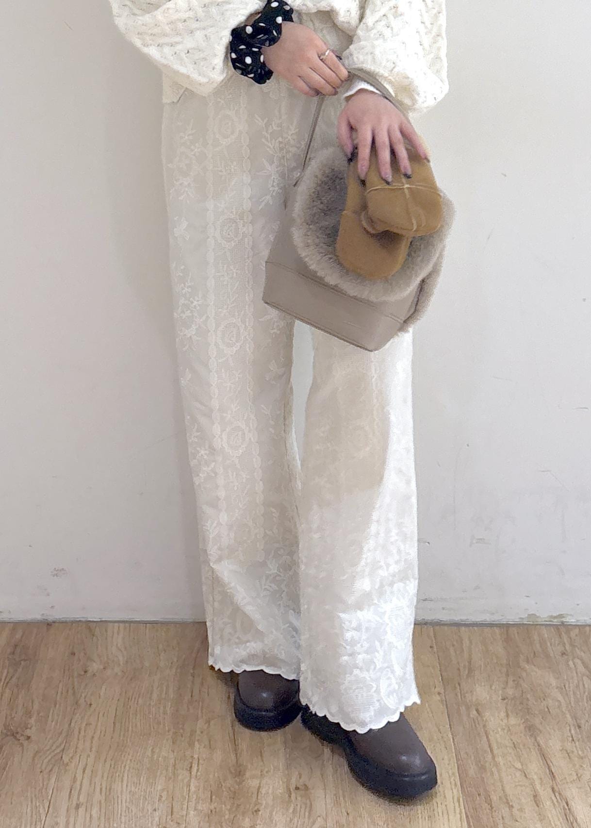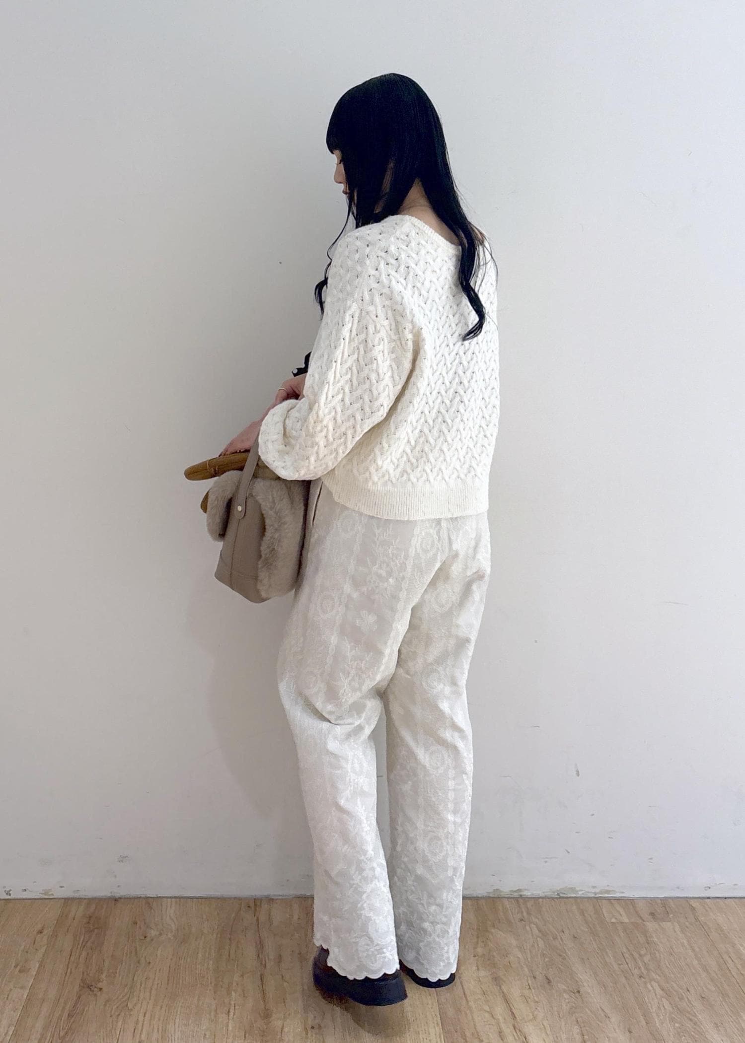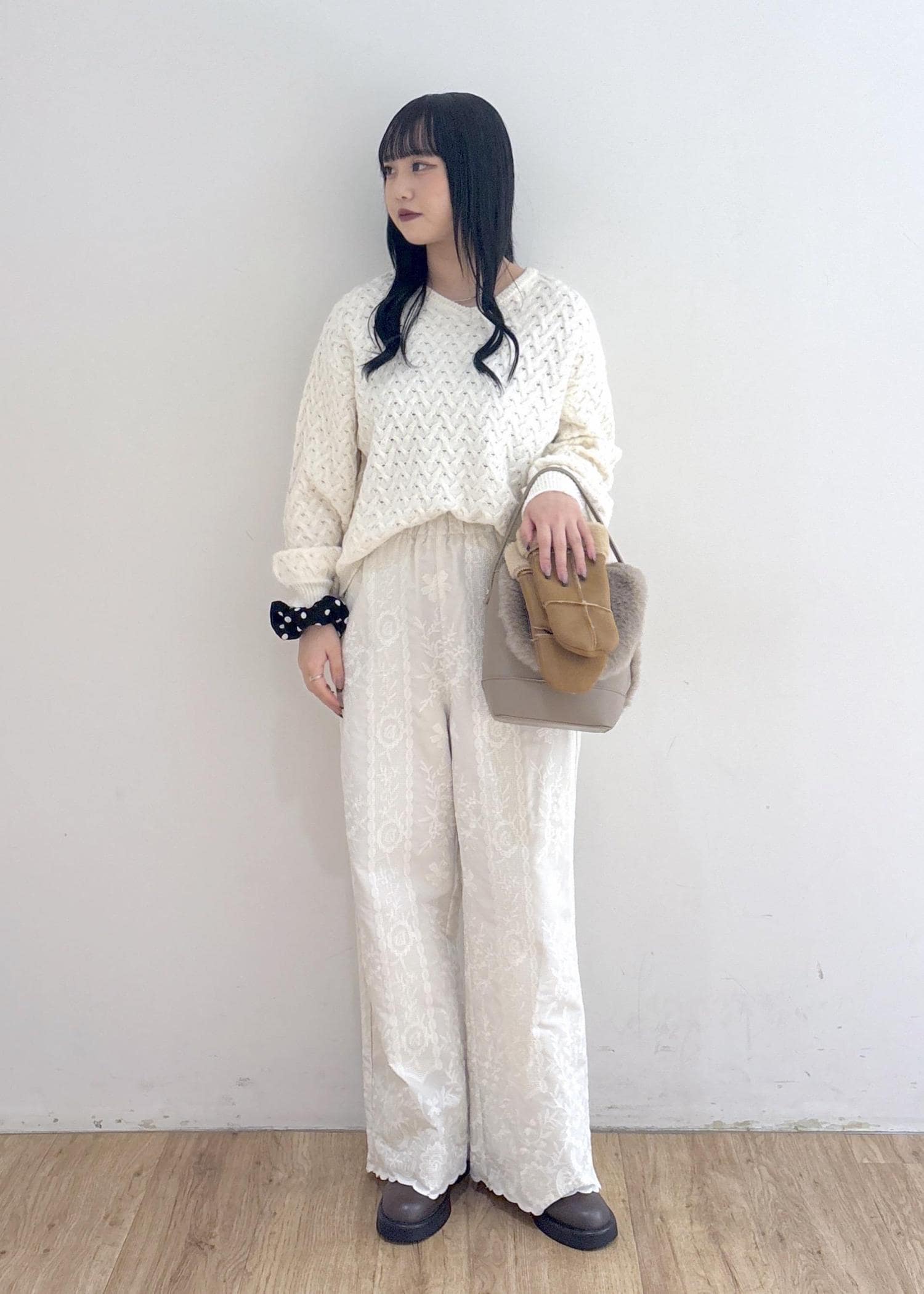 ROPÉ PICNICウィンターイージー刺繍パンツキナリ / M¥7,997レビュー161cm骨格ストレートで足元に少したまる感じの丈でした。ウエスト周りはゴムで楽に着用できました!着るだけでこなれ感出るアイテムです◎