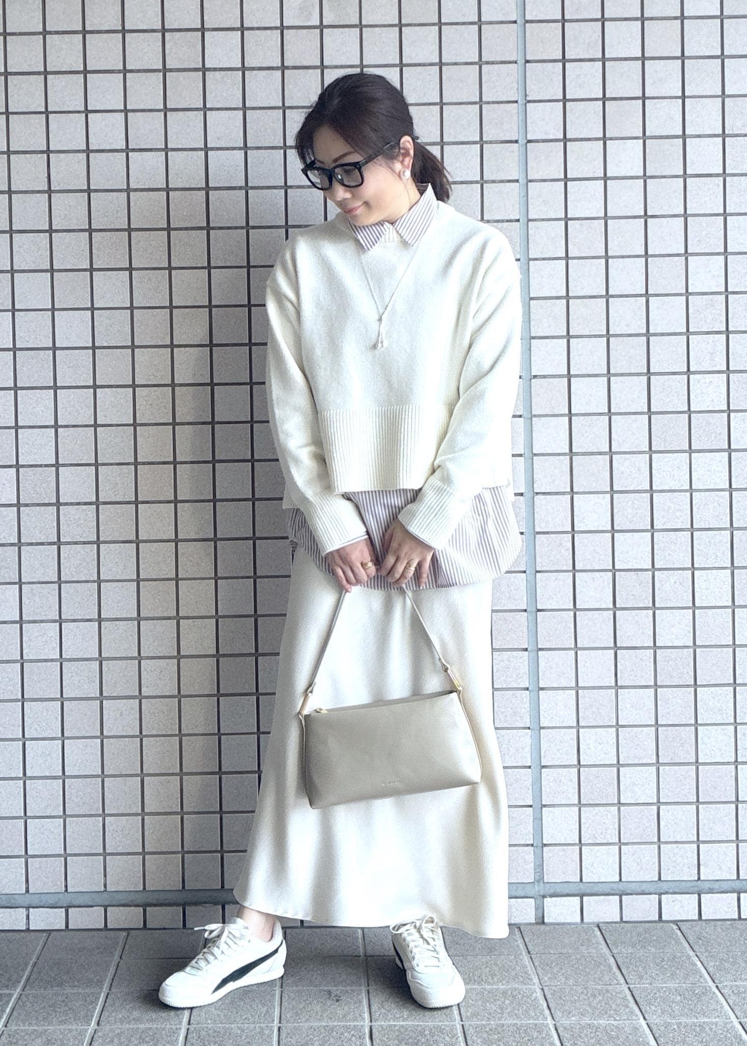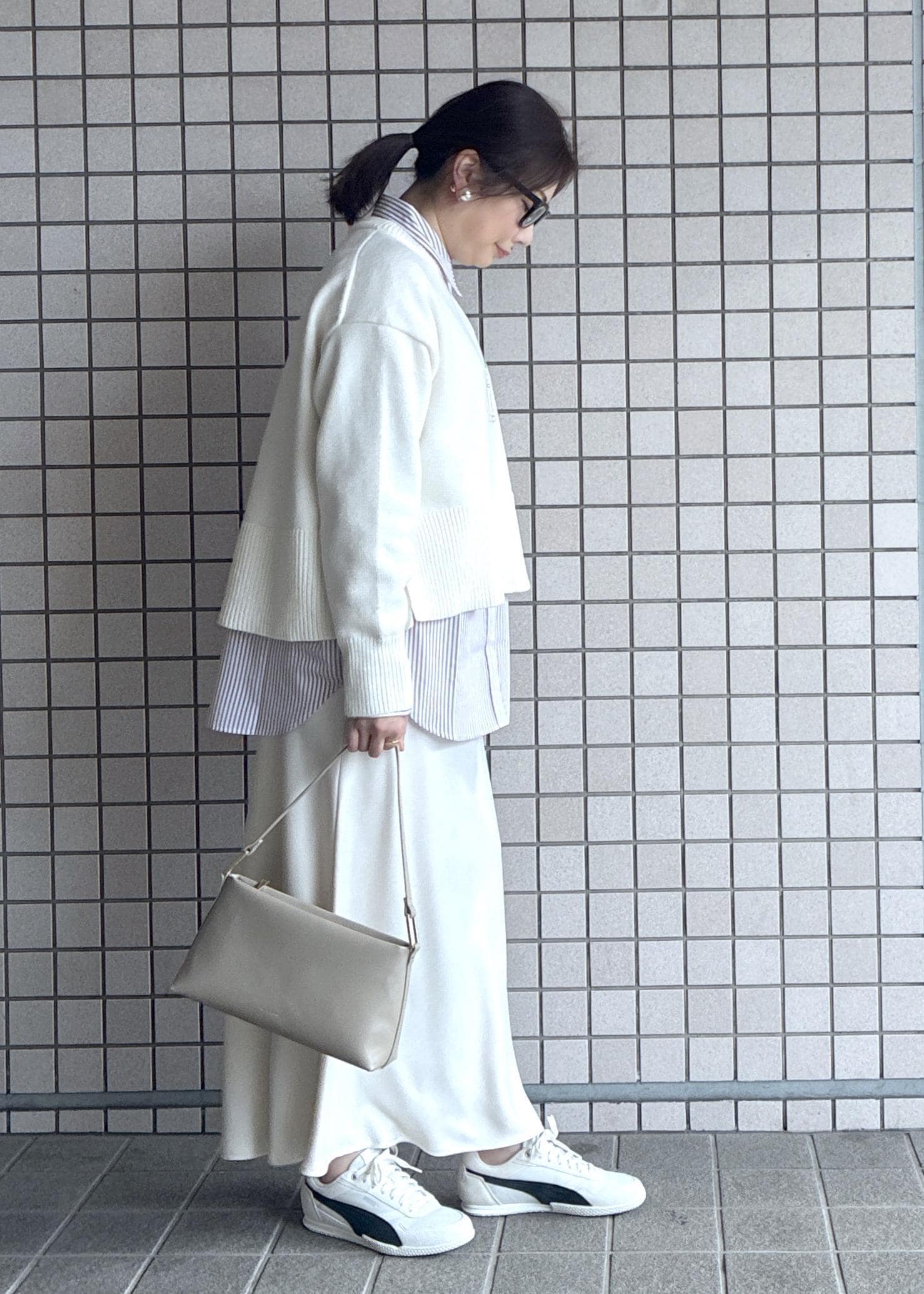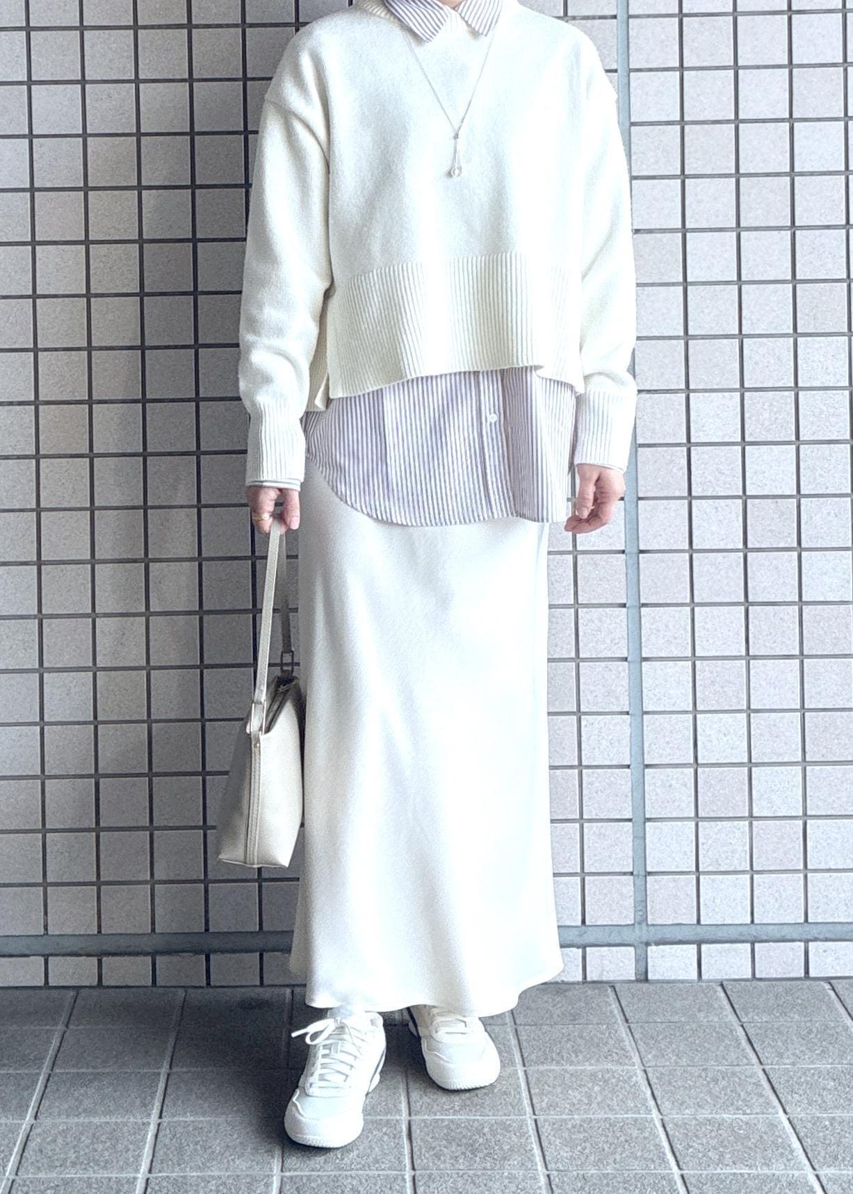 ROPÉ PICNIC細見えバイアスサテンスカート/イージーケアオフホワイト / F¥6,490レビュー薄い生地感で、マーメイドシルエットのスカート。