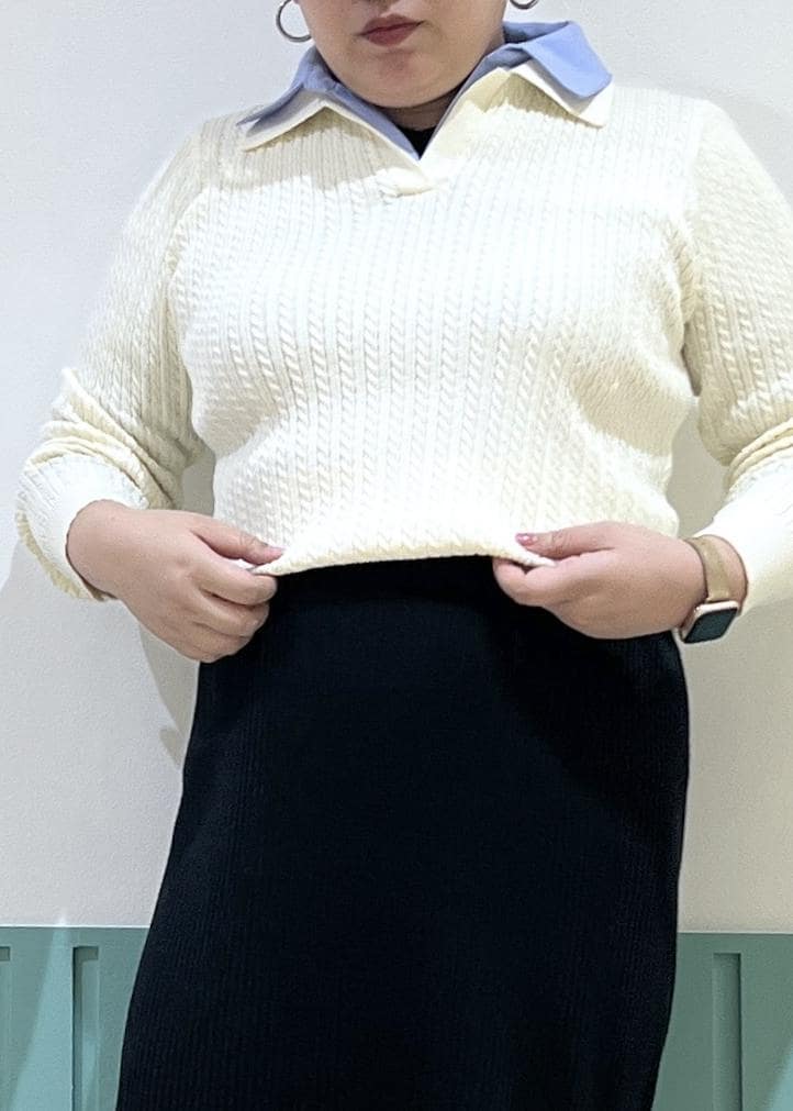 ROPÉ PICNICダブルカラーミニケーブルニットキナリ / F¥5,995レビュー一枚でも映えるレイヤード風ニットは、