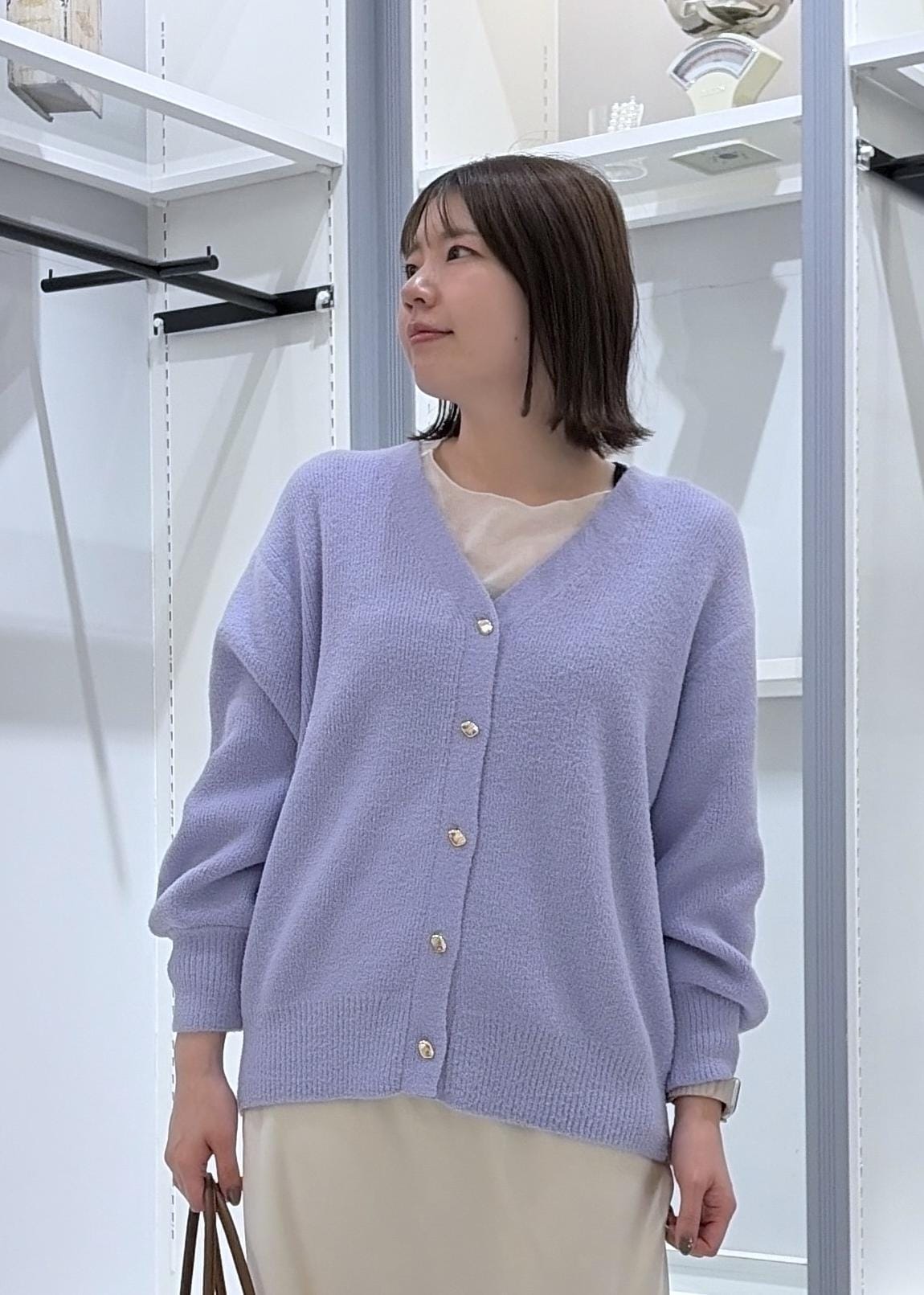 2BUY10%OFFROPÉ PICNIC【新色追加】スフレニットシリーズ 変形メタルボタンミドル丈カーディガン/イージーケア・リンクコーデラベンダー / F¥3,293レビューもちっと柔らかいカーディガンです♩