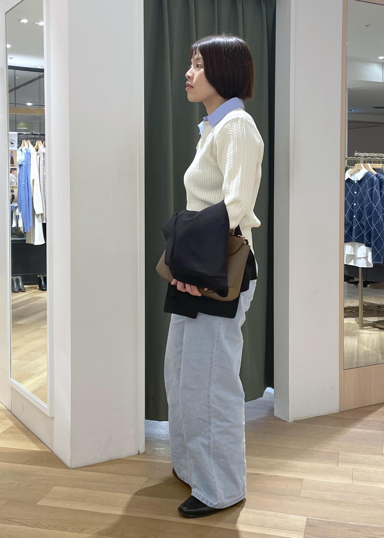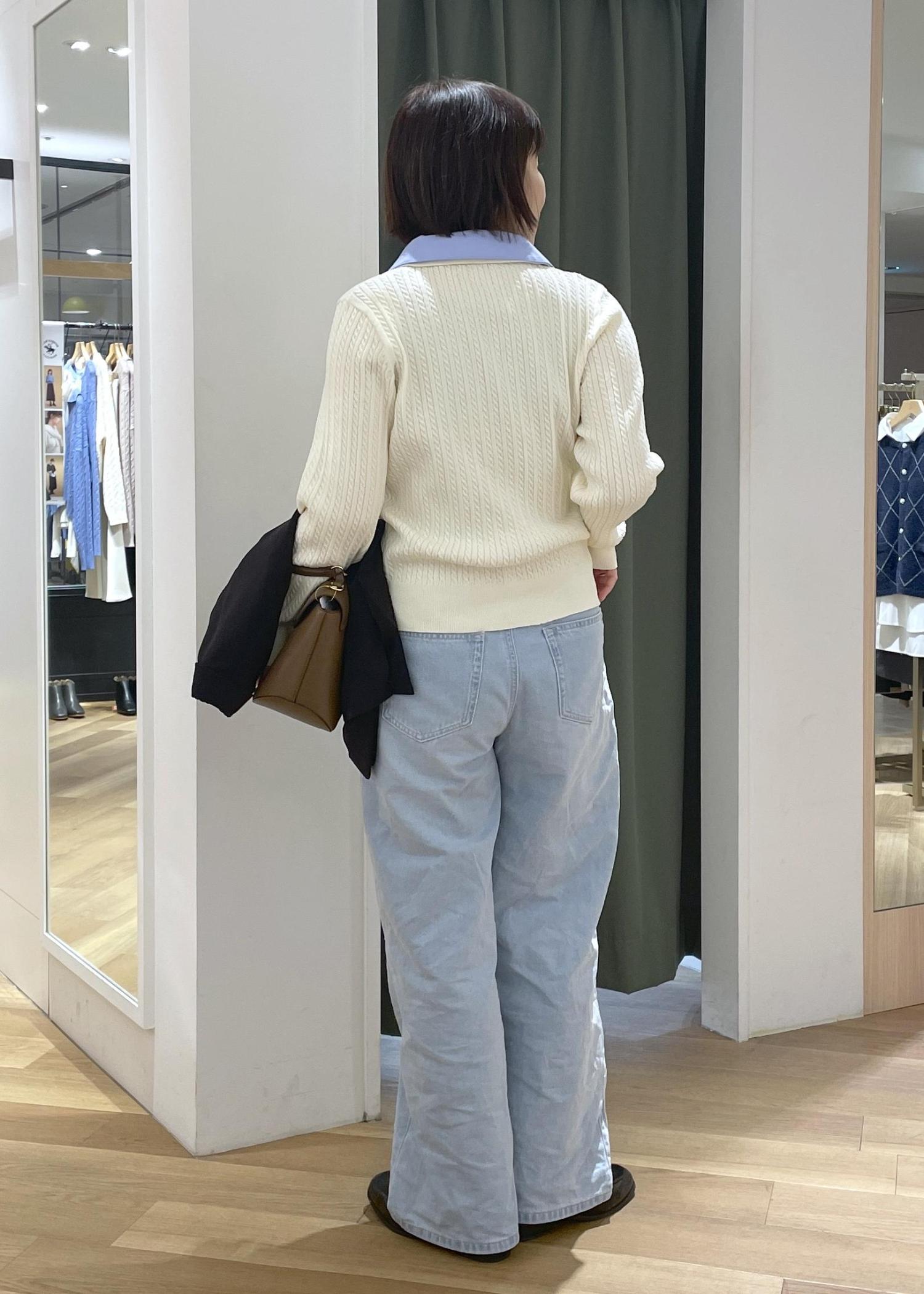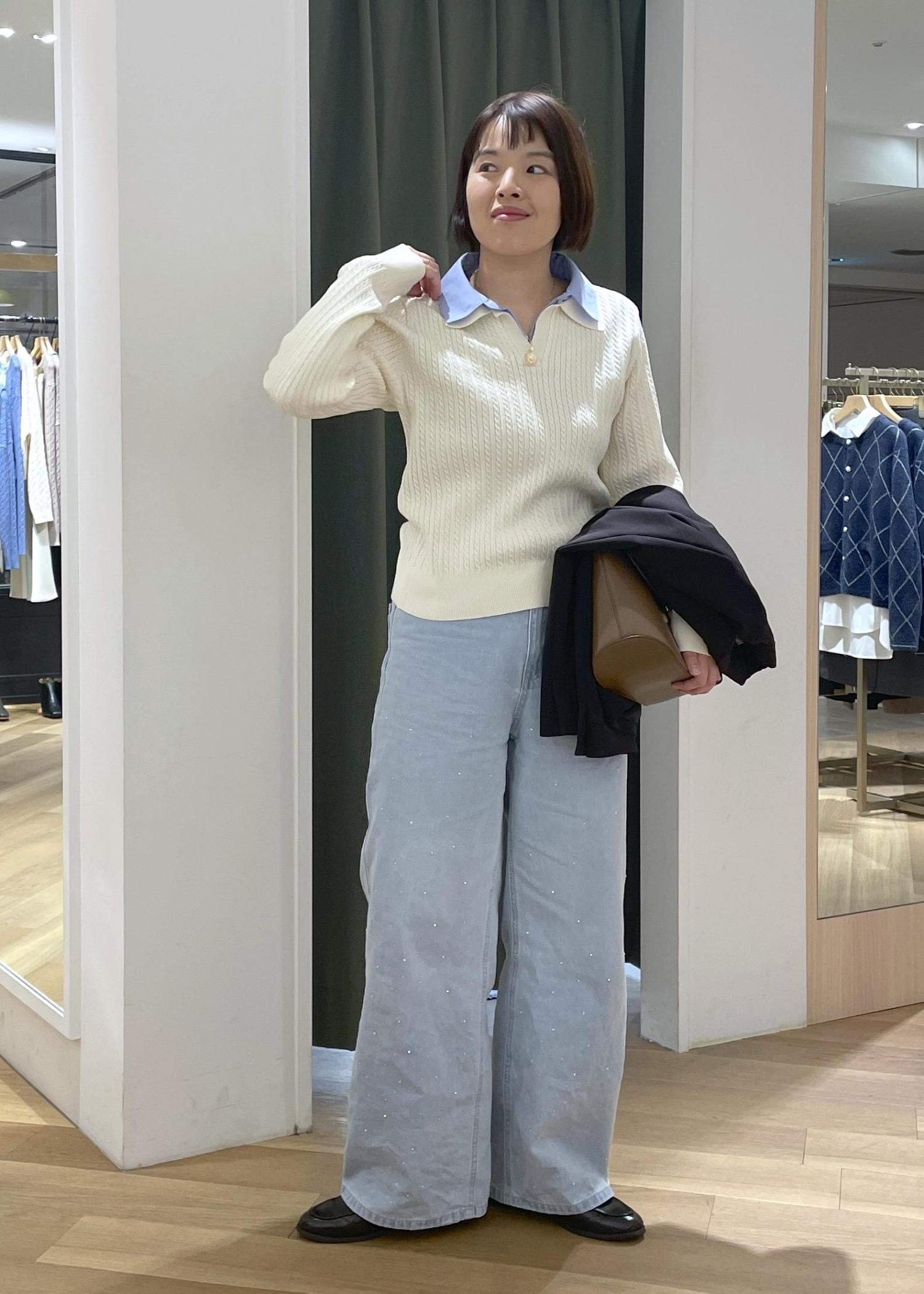 2BUY10%OFFROPÉ PICNICキラキラビジューデニムブルー / 40¥5,244レビュービジュー使いがいつものデニムスタイルをアップデートしてくれる、主役になるデニムです。細かなビジューなので、そこまで派手過ぎずコーディネートにも取り入れやすいです。シルエットは脚のラインを拾わないワイドシルエットです。少しルーズに履きたかったので、40サイズを着用しています。ウエストや腰回りはゆとりがあり、着丈はフラットシューズだと少し地面に擦りそうな長さです。