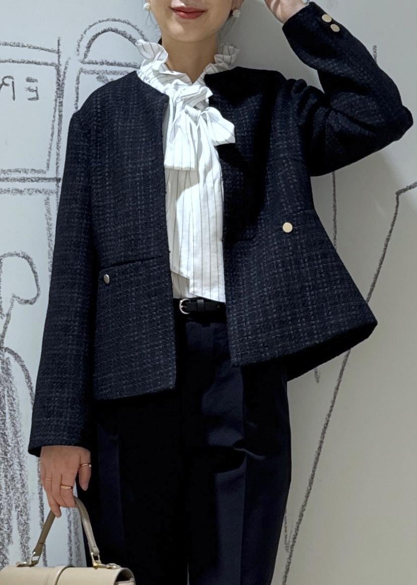 予約ROPÉ PICNIC【WEB限定カラー】ツイードフレアジャケット/セレモニー対応・リンクコーデネイビー / M¥10,989レビュー厚みと硬さがあまりないので梅雨時期まで長く着られるジャケットです。さり気ないペプラムデザインが女性らしく上品。マットな金ボタンが主張し過ぎることなく程よいアクセントに。着丈は腰周りが隠れる丈感です。