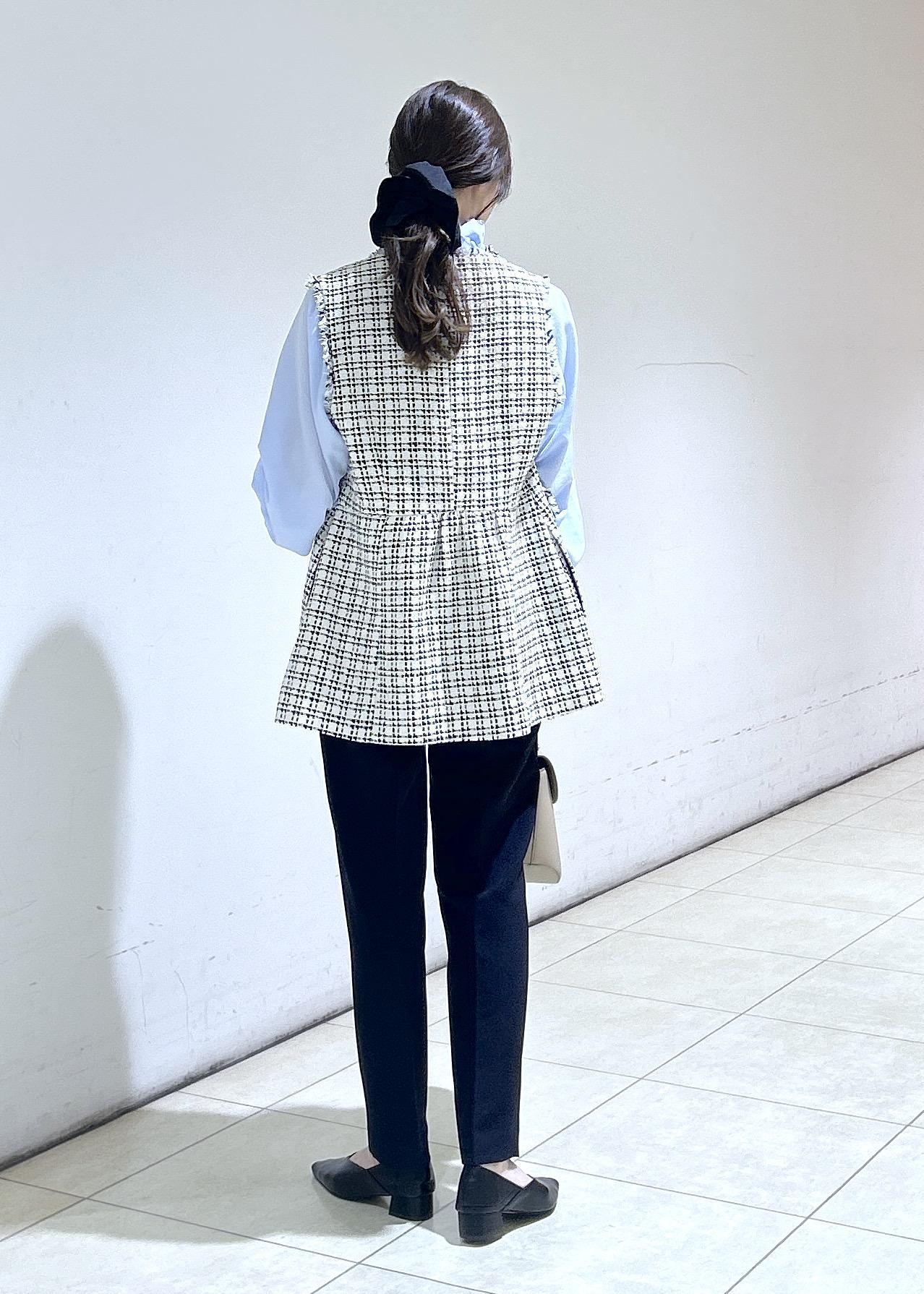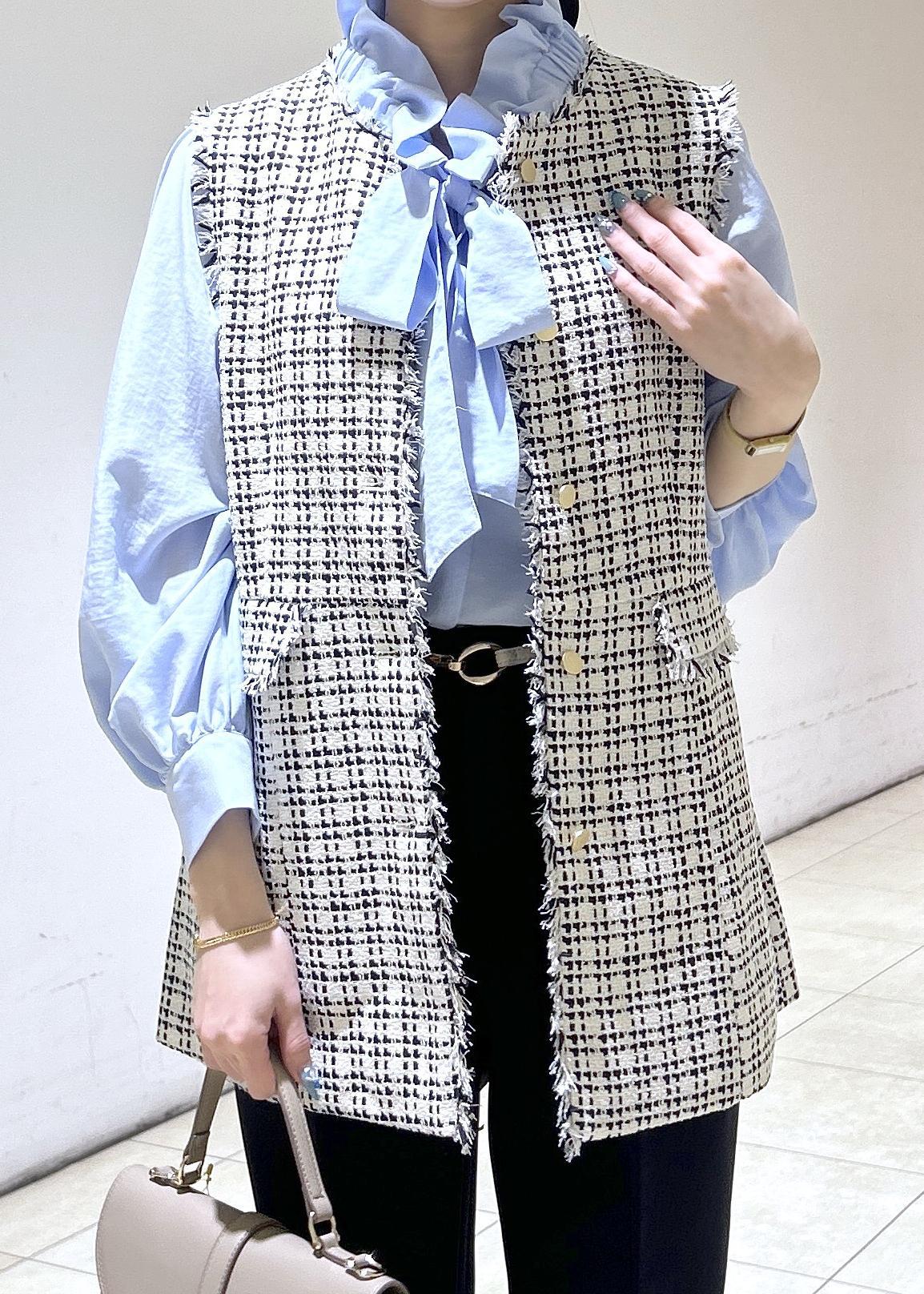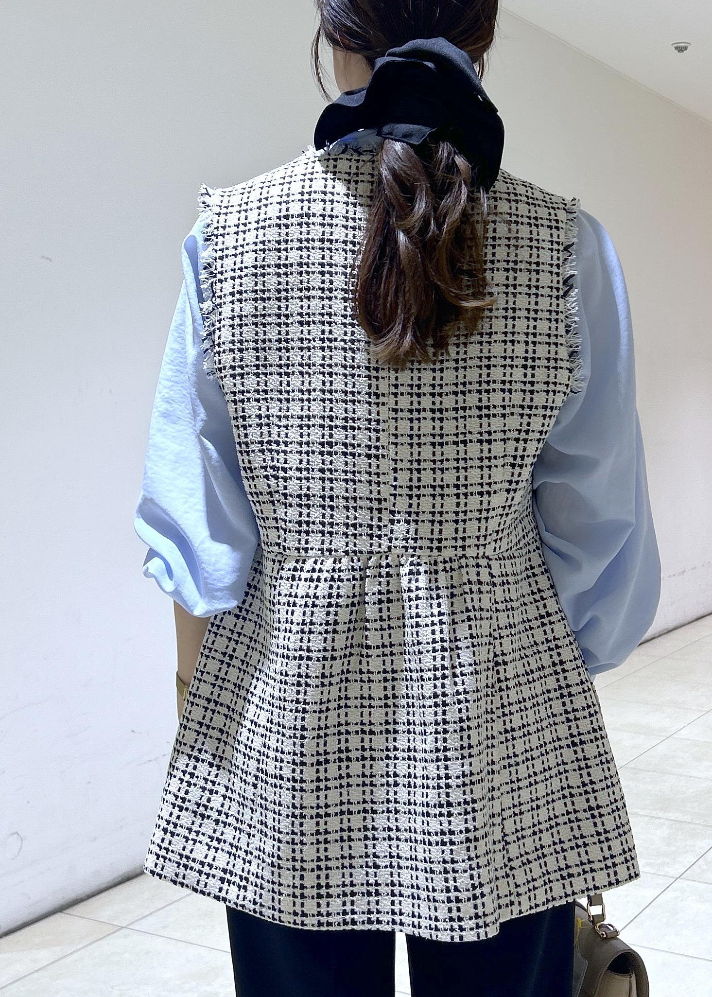 予約ROPÉ PICNIC【WEB限定カラー】ツイード金ボタンジレベスト/セレモニー対応・リンクコーデブラック系 / F¥8,998レビュー身長157センチでお尻が隠れるくらいの丈になります。