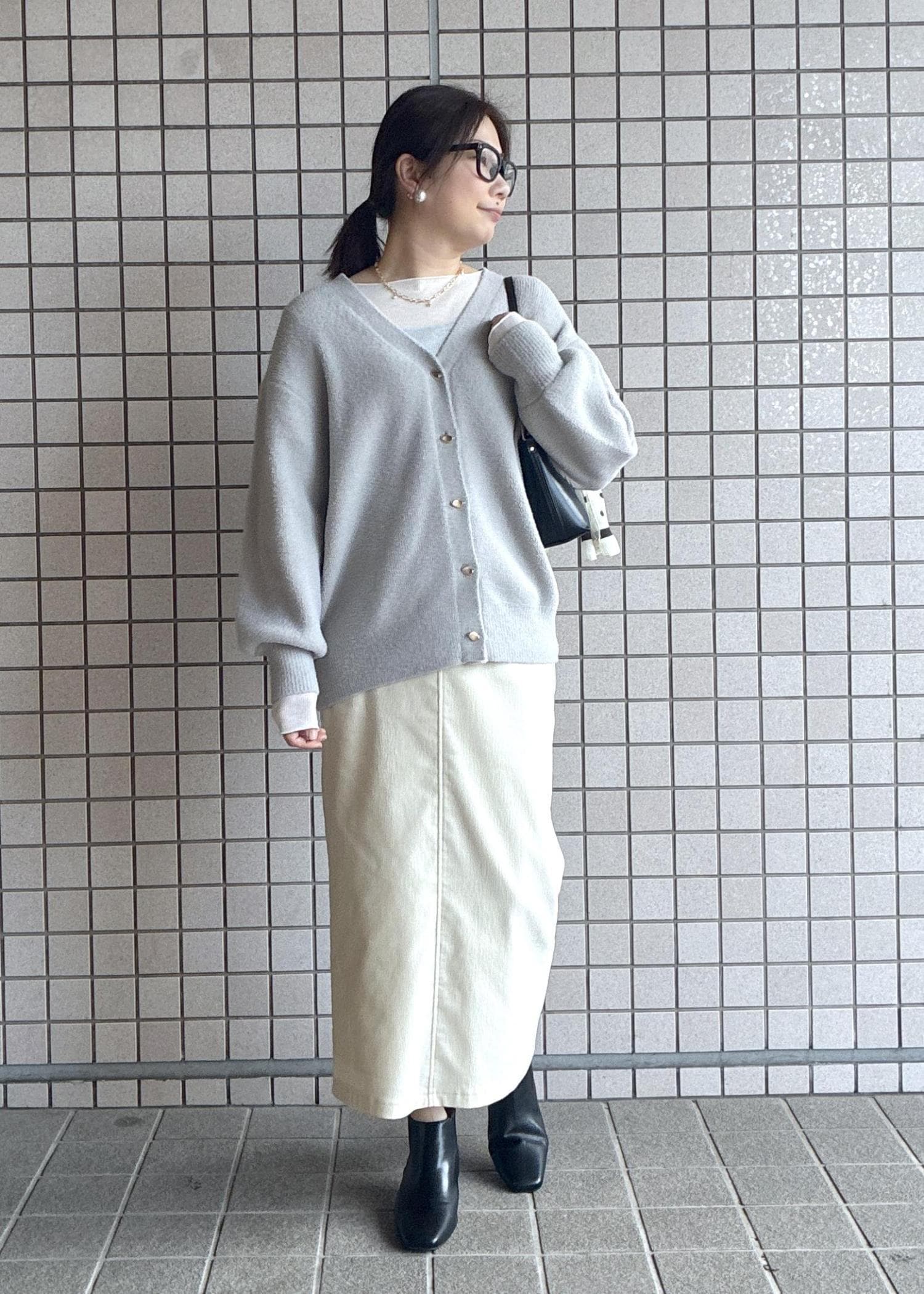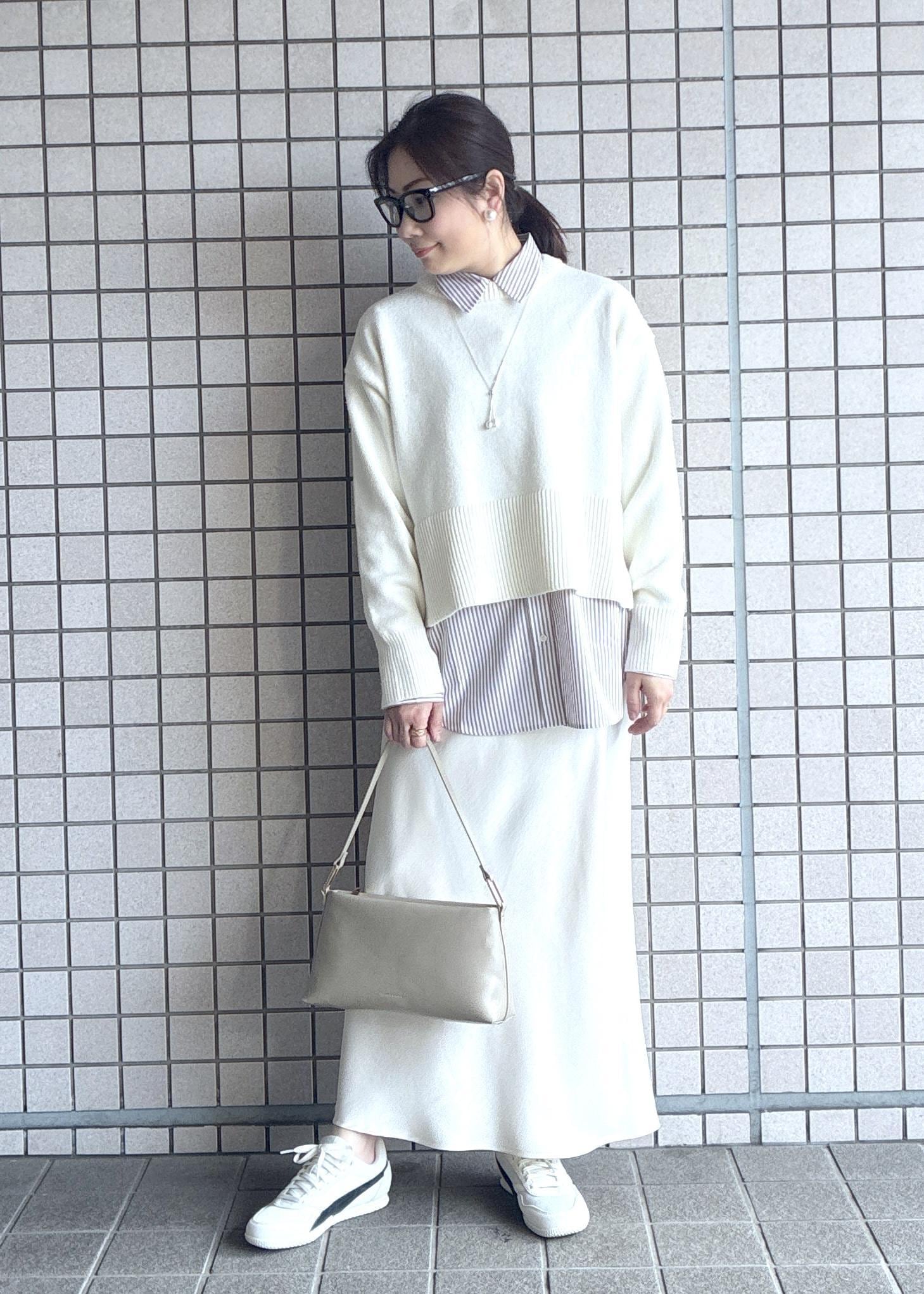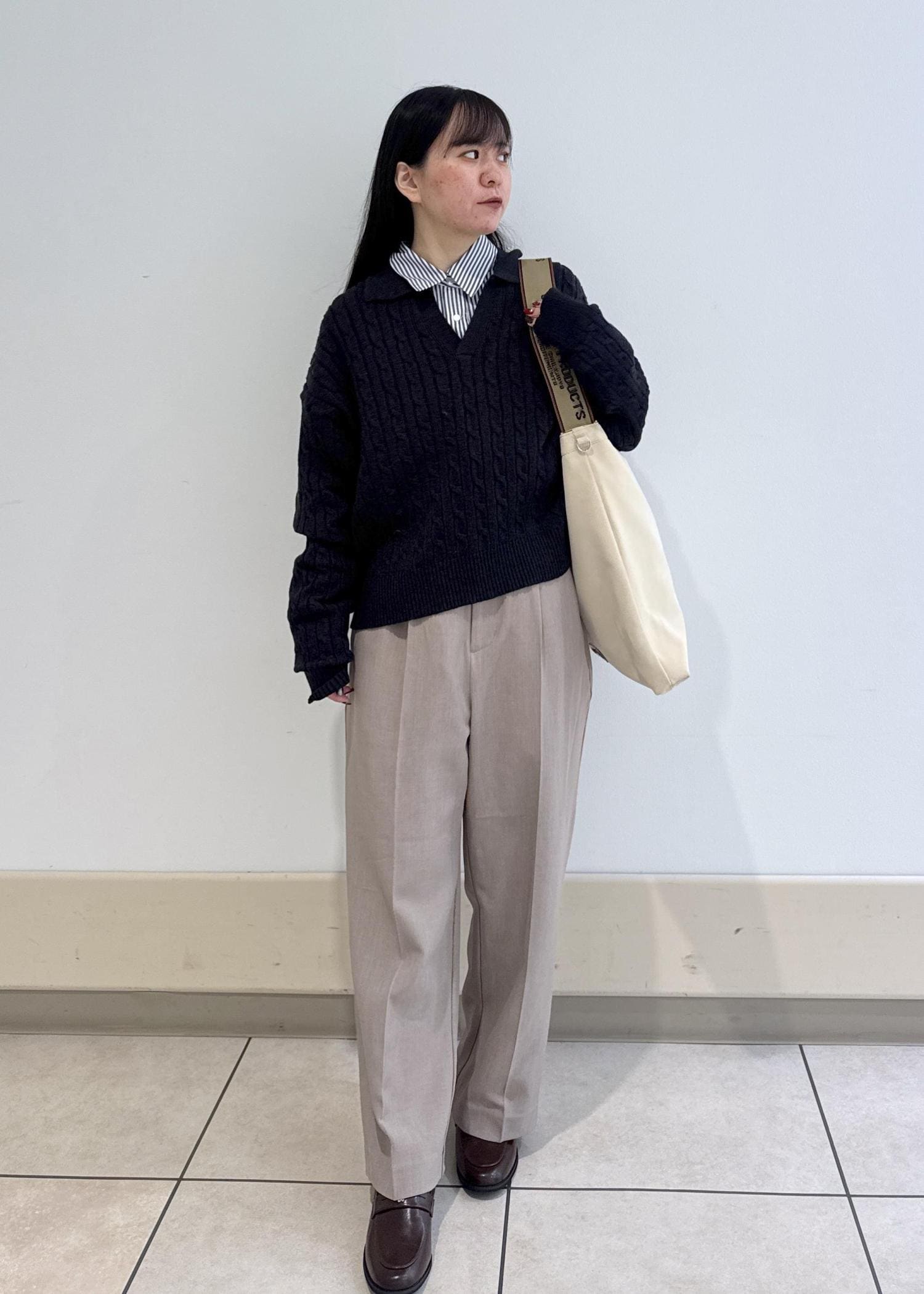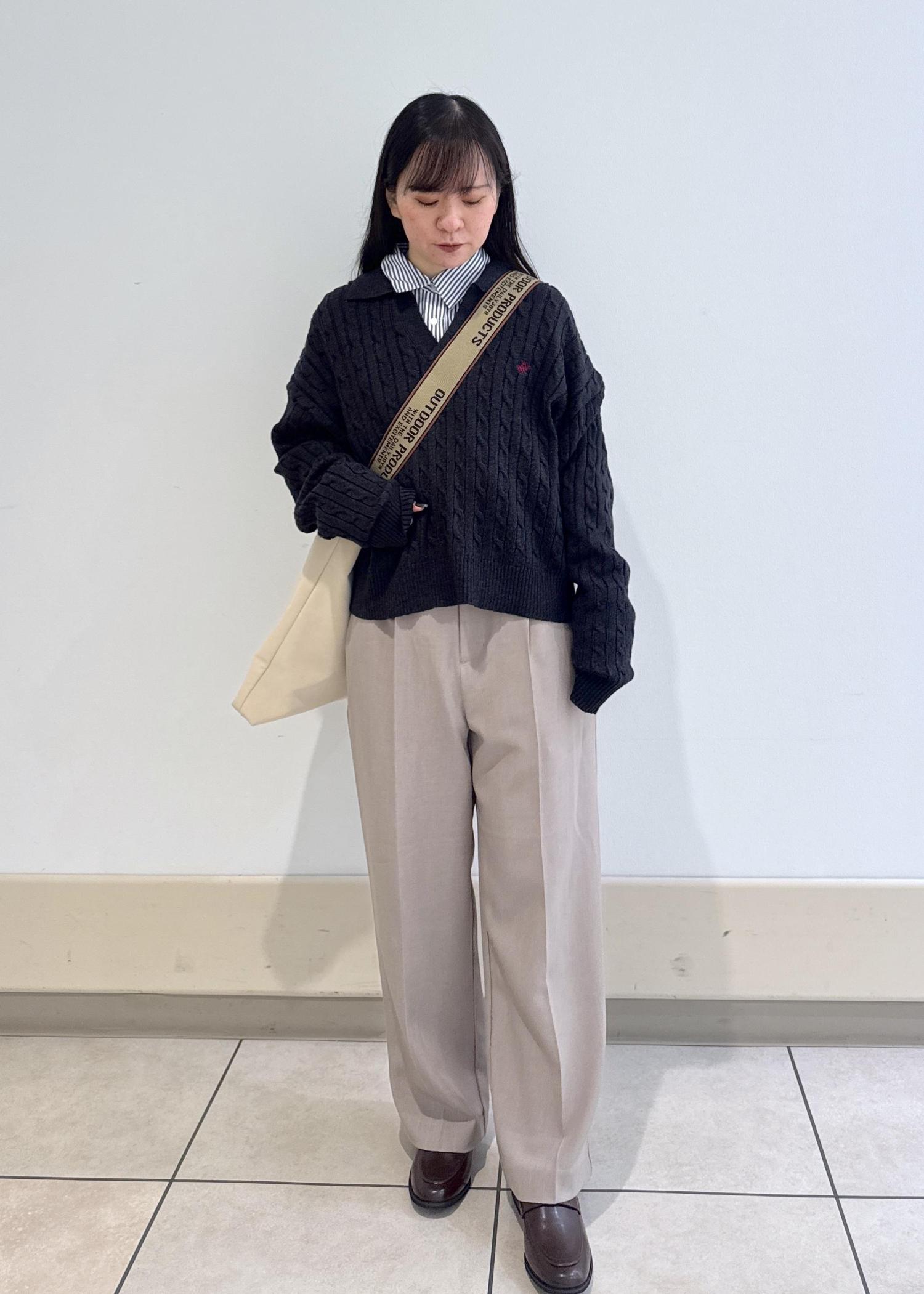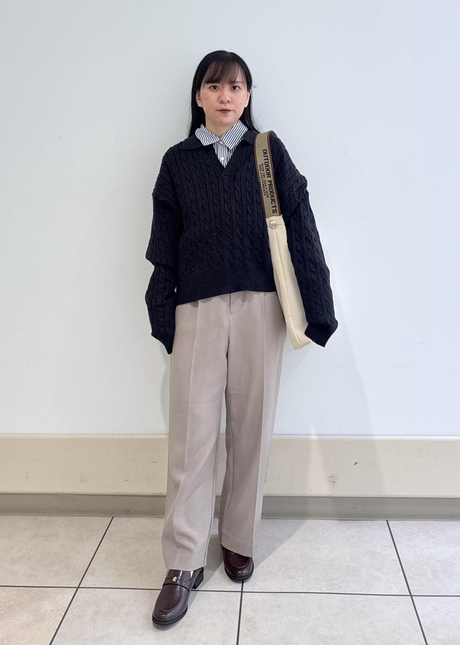 POLOのスキッパーニットとシャツを重ねて着用し、こなれ感を出しました!