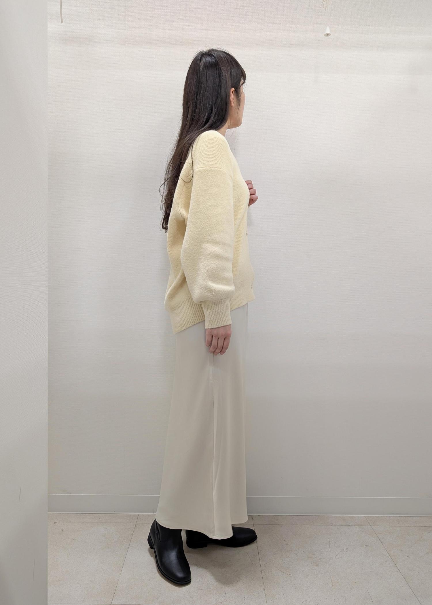 私は肩幅広めの骨格ウェーブで長め丈でゆったりシルエットが苦手ですが、こちらは柔らかくボリュームが出過ぎないニットなので、肩幅が更に広く見えたりせずスッキリ着られました。 -