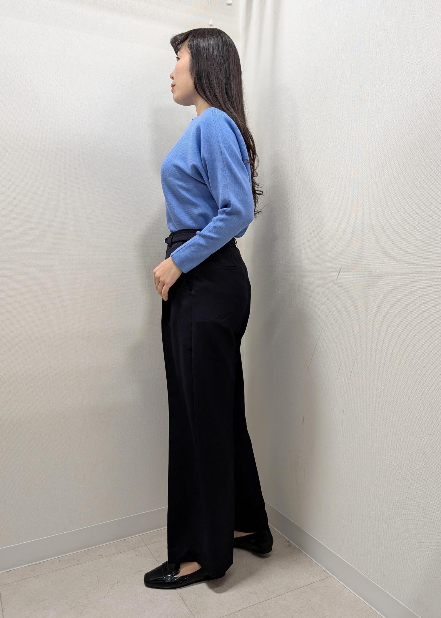 私は骨格ウェーブでヒップが大きいのでLサイズを着用していますが、ウエストの内側にウエストのサイズ調節できるベルトが付いているのでヒップに合わせるとウエストが緩いというウェーブさんの悩みも解決してくれるパンツです。