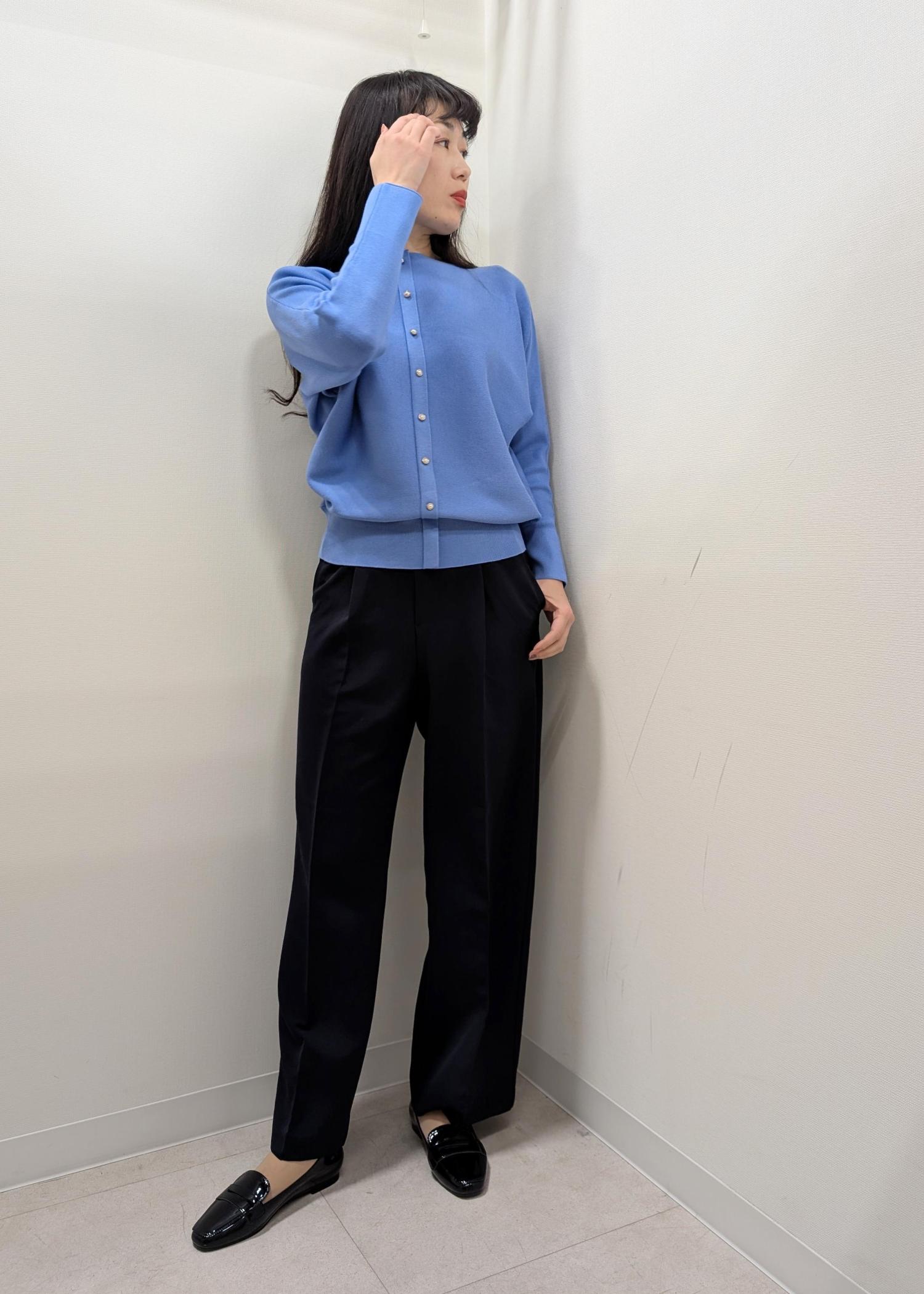 ボタンを前にしてカーディガン風にも着られるのでコーディネートをする時間がない時にもおすすめです(^^)