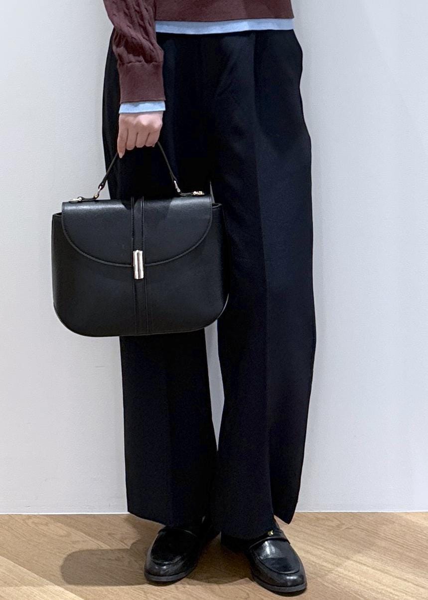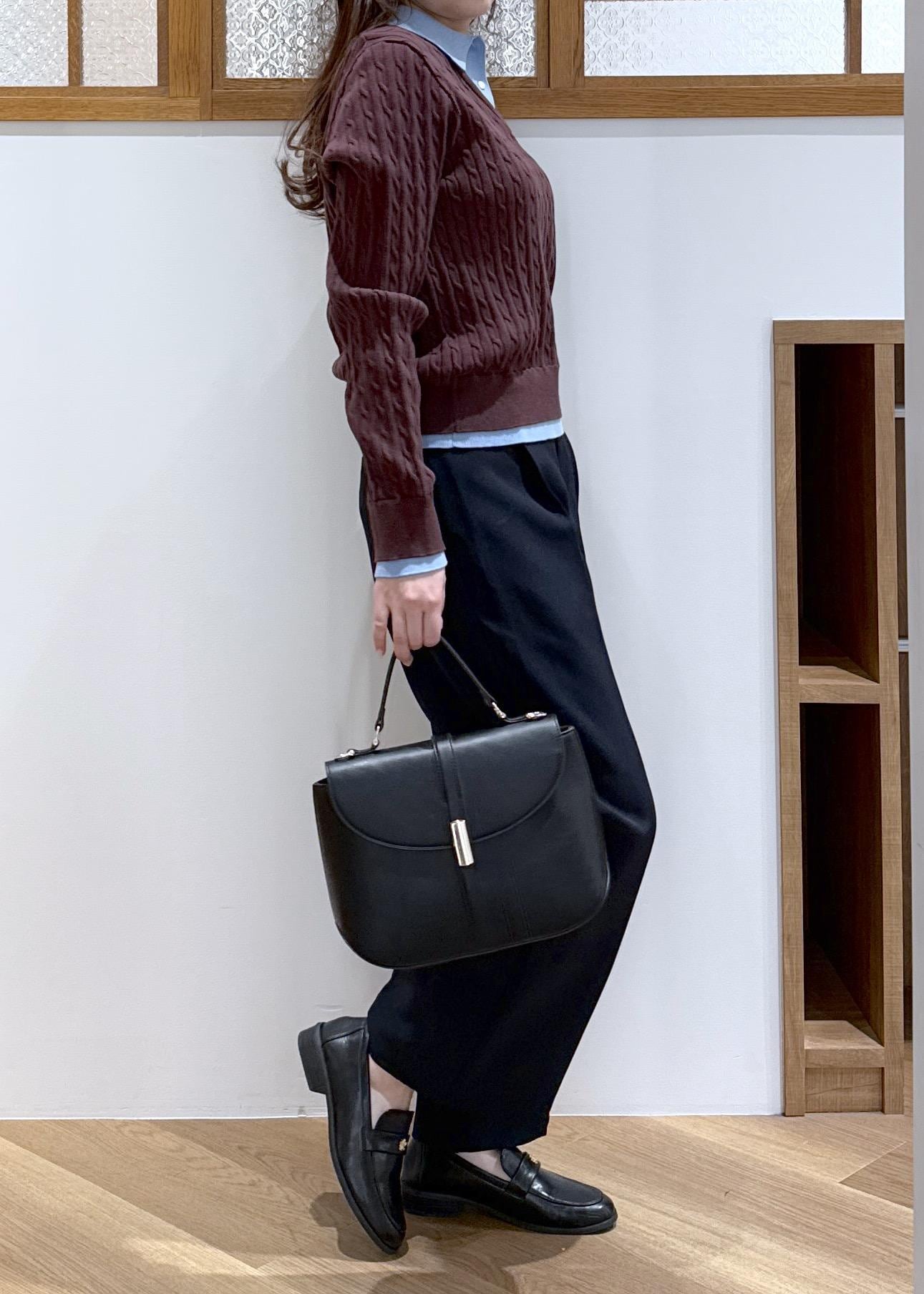 小物はブラックで合わせて、統一感を出しています。